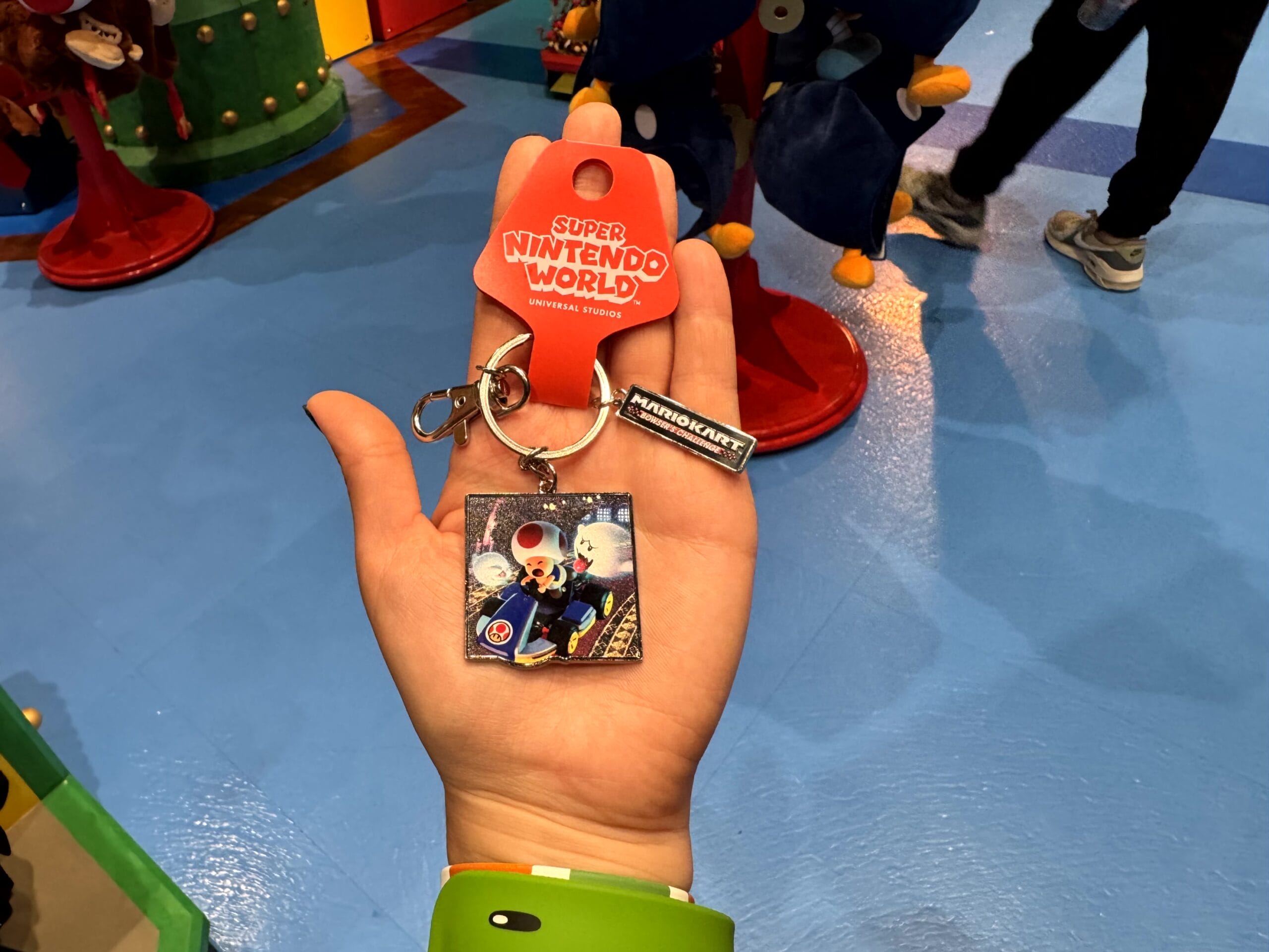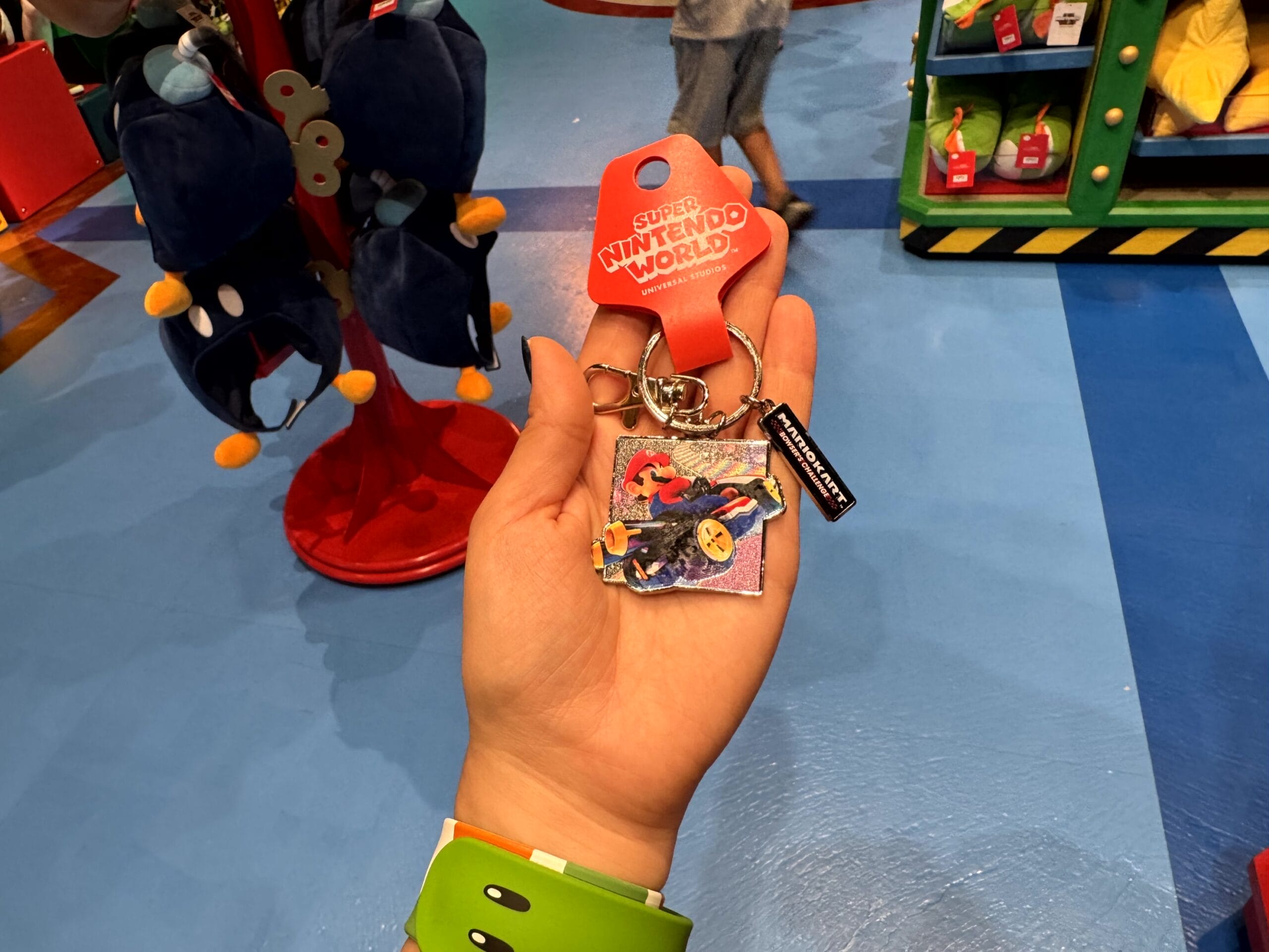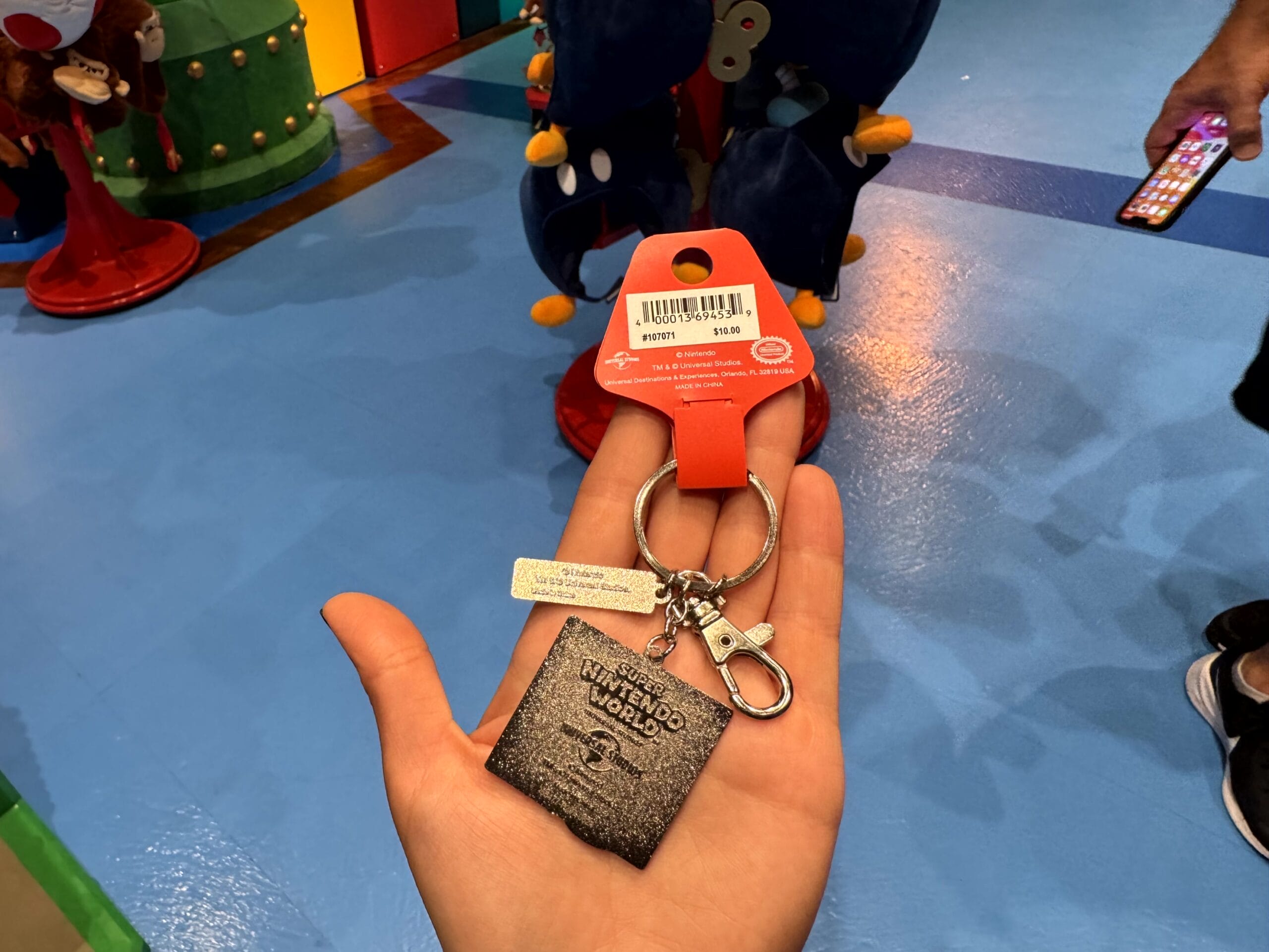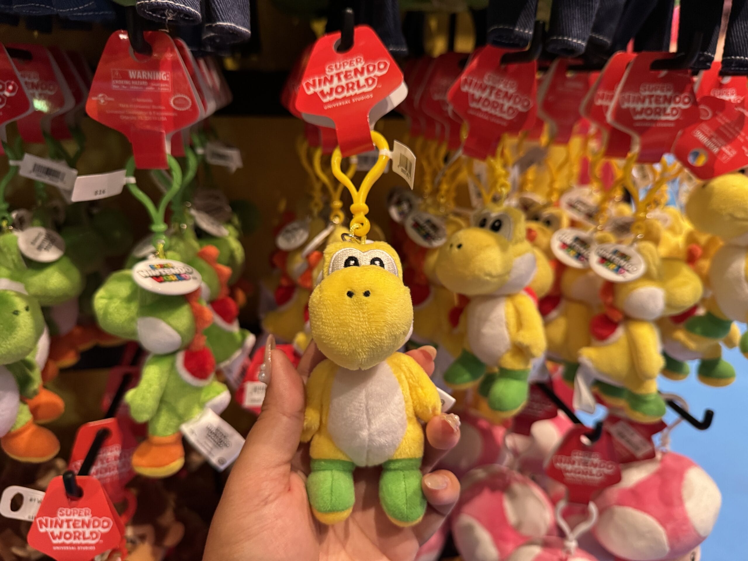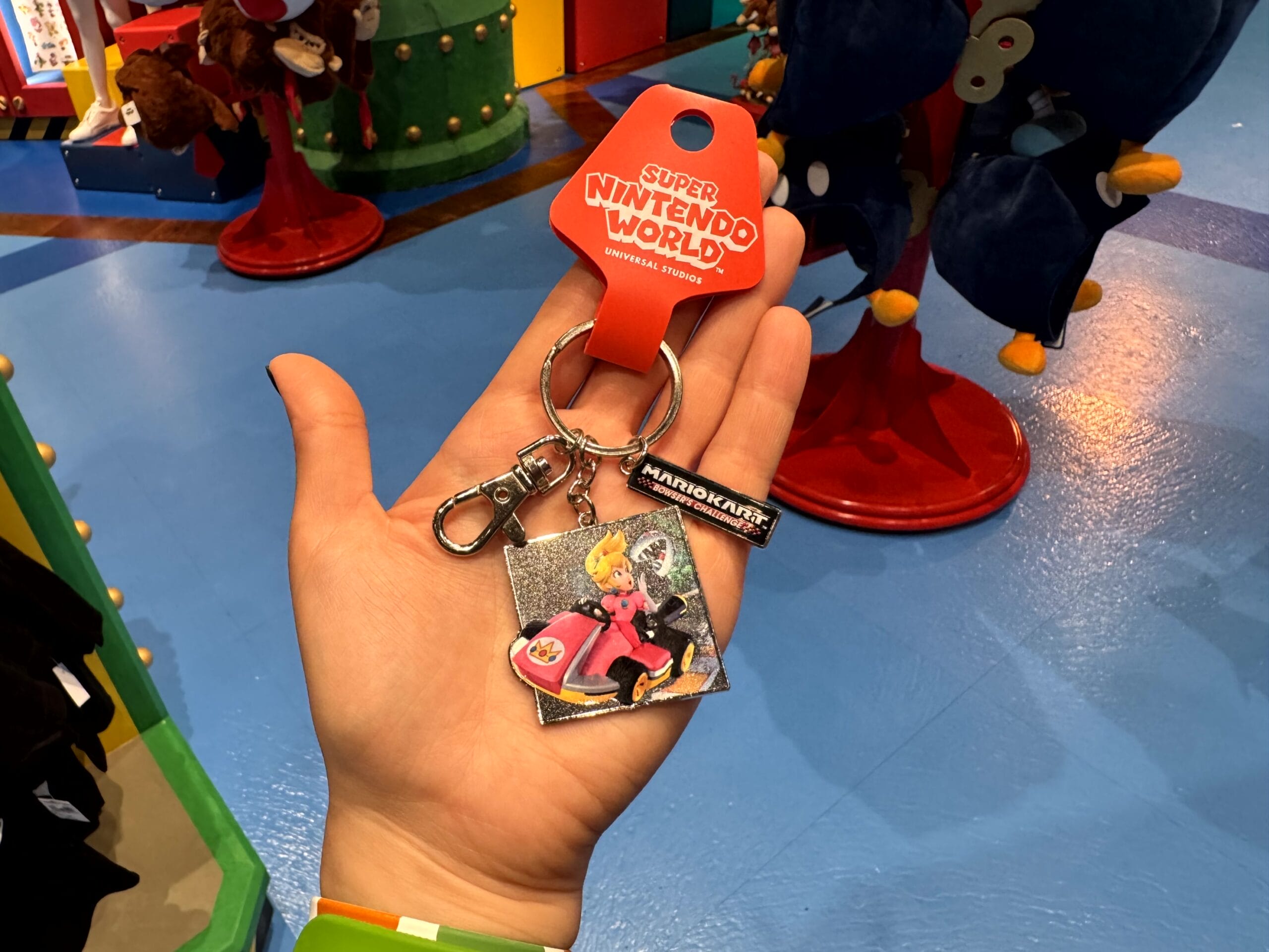 Another keychain has a Chef Toad charm, mushroom charm, Fire Flower charm, and Super Star charm.