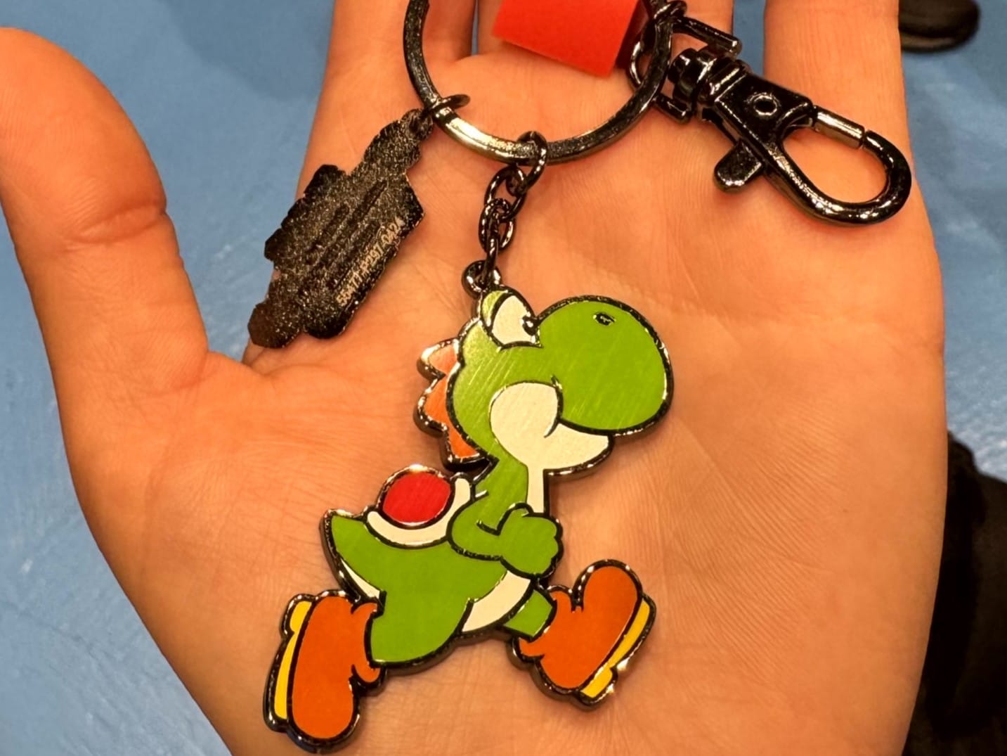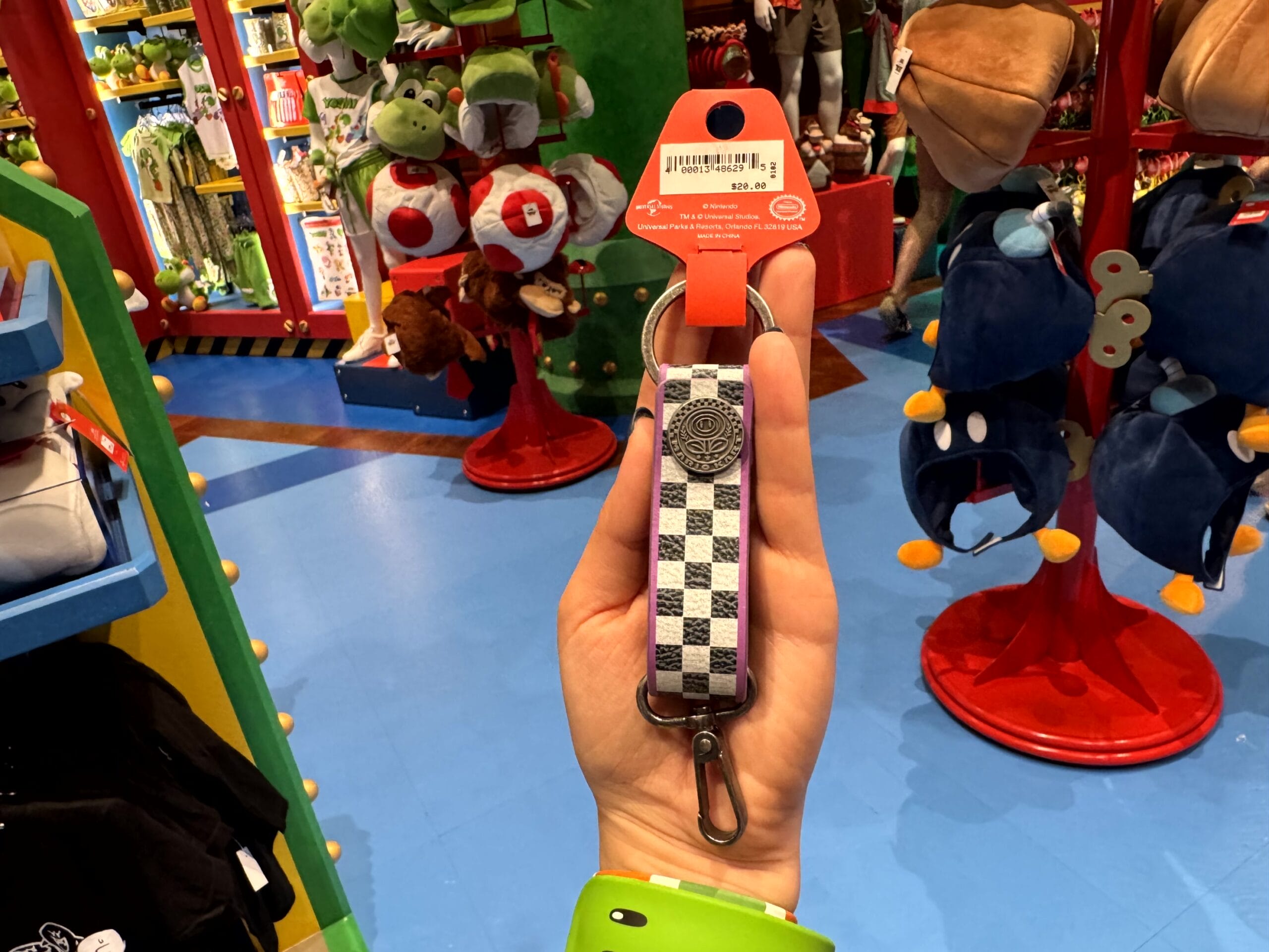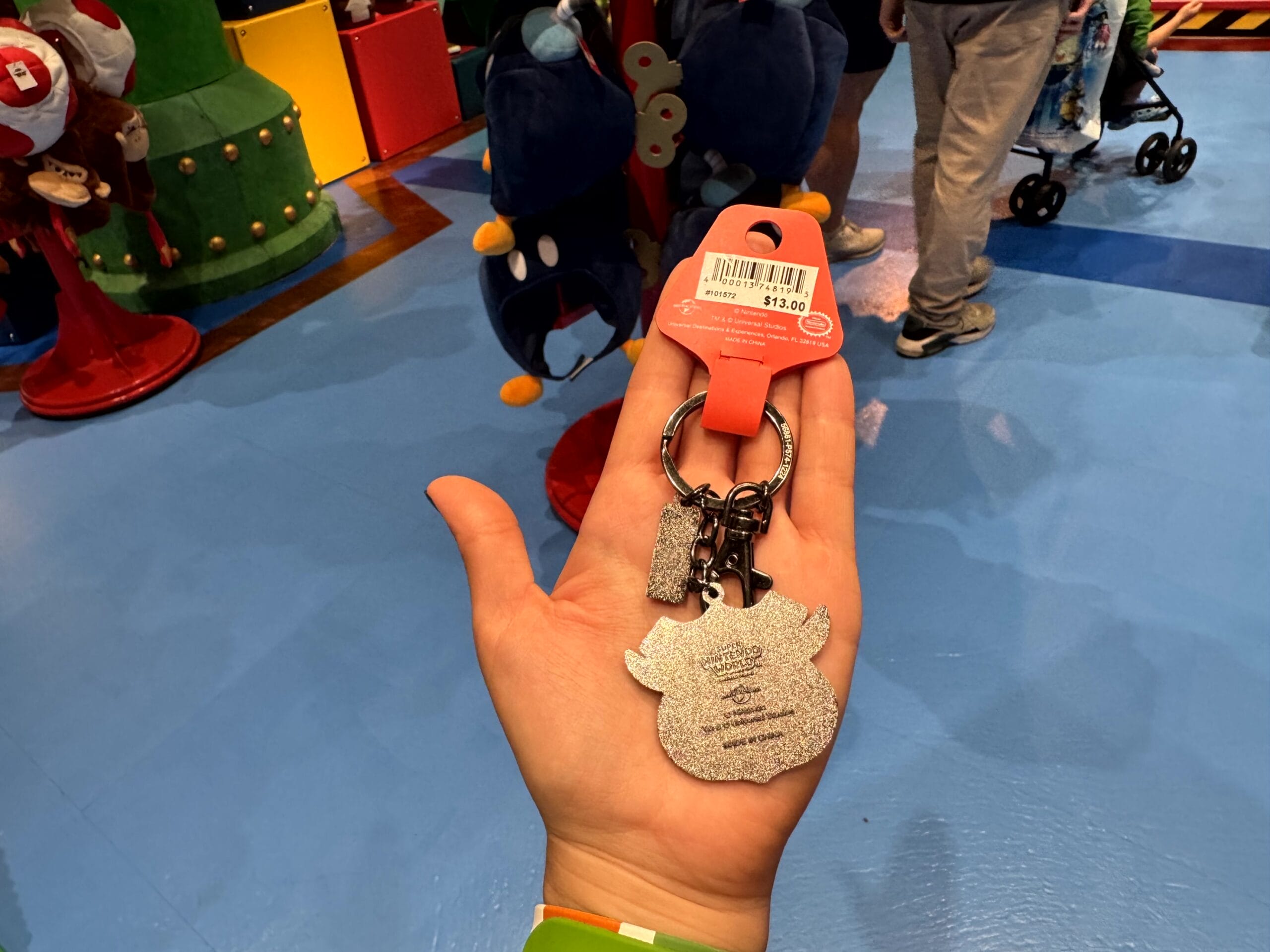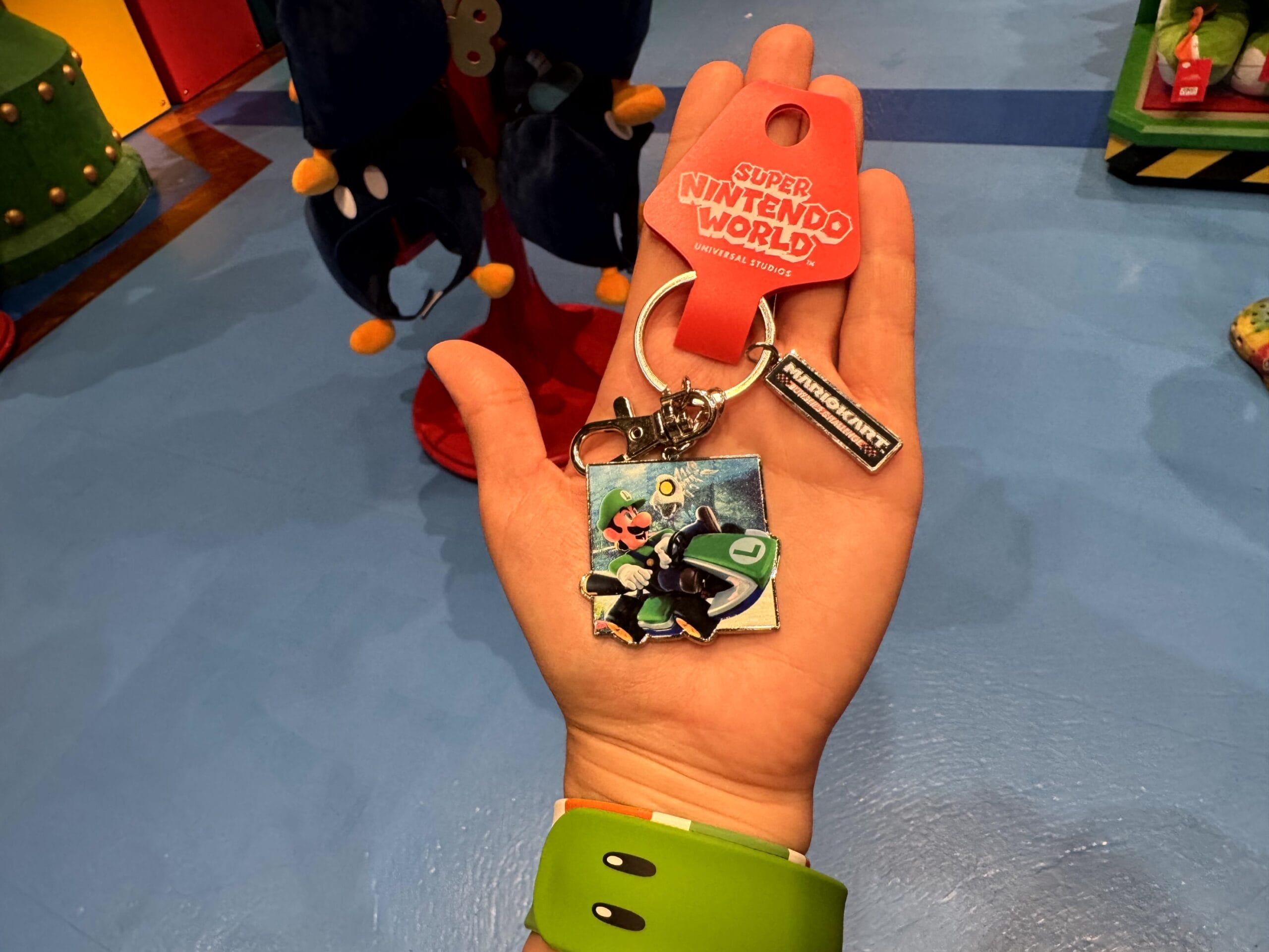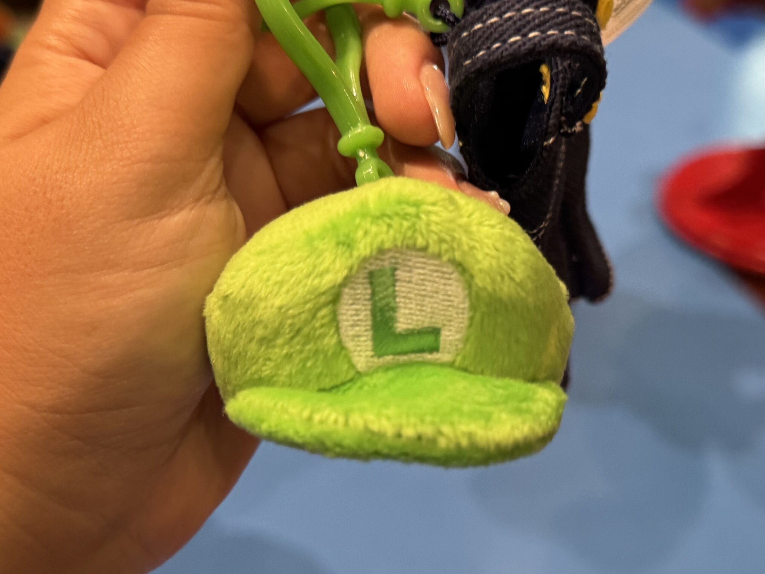 Another keychain has a Chef Toad charm, mushroom charm, Fire Flower charm, and Super Star charm.