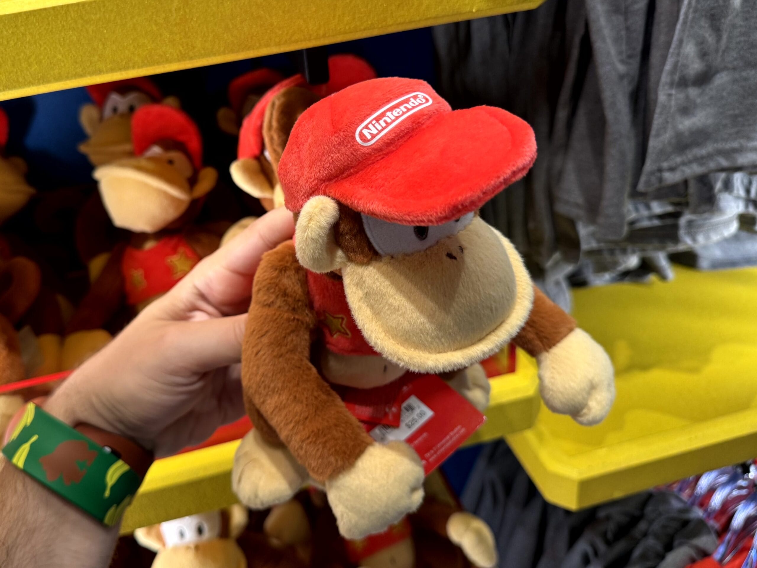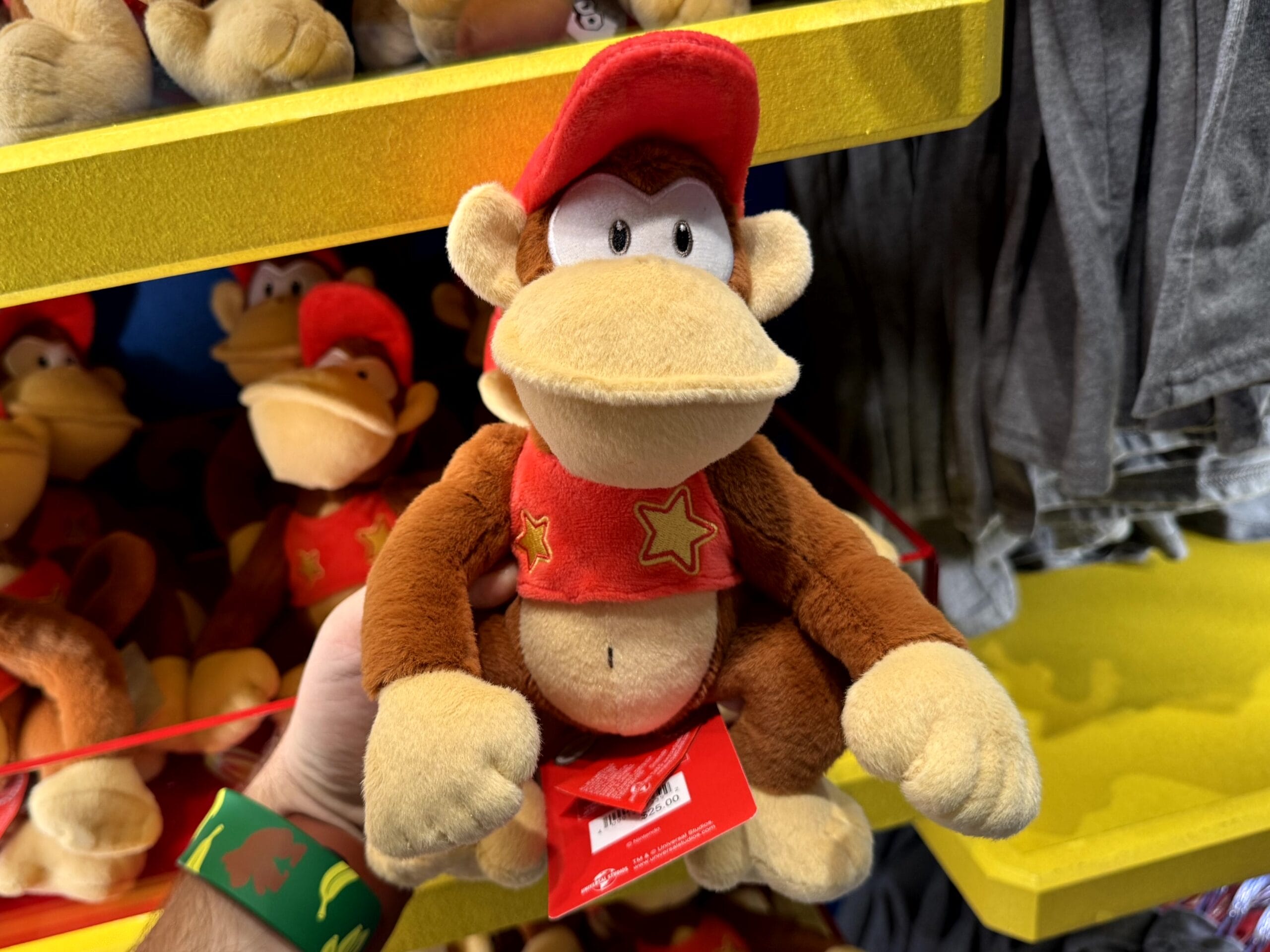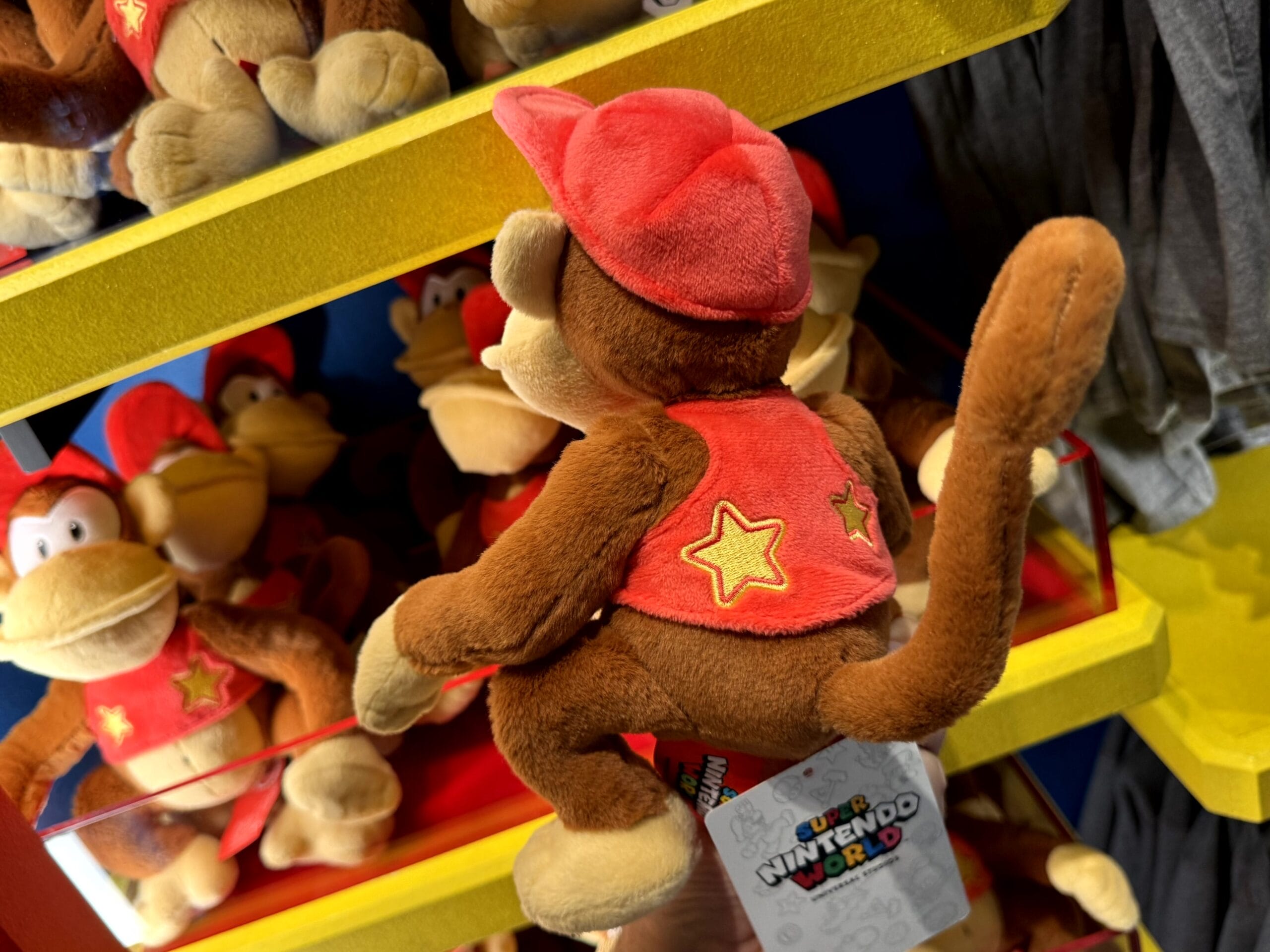 The Diddy Kong plush has him in a red tank top with golden stars and a red Nintendo ball cap.