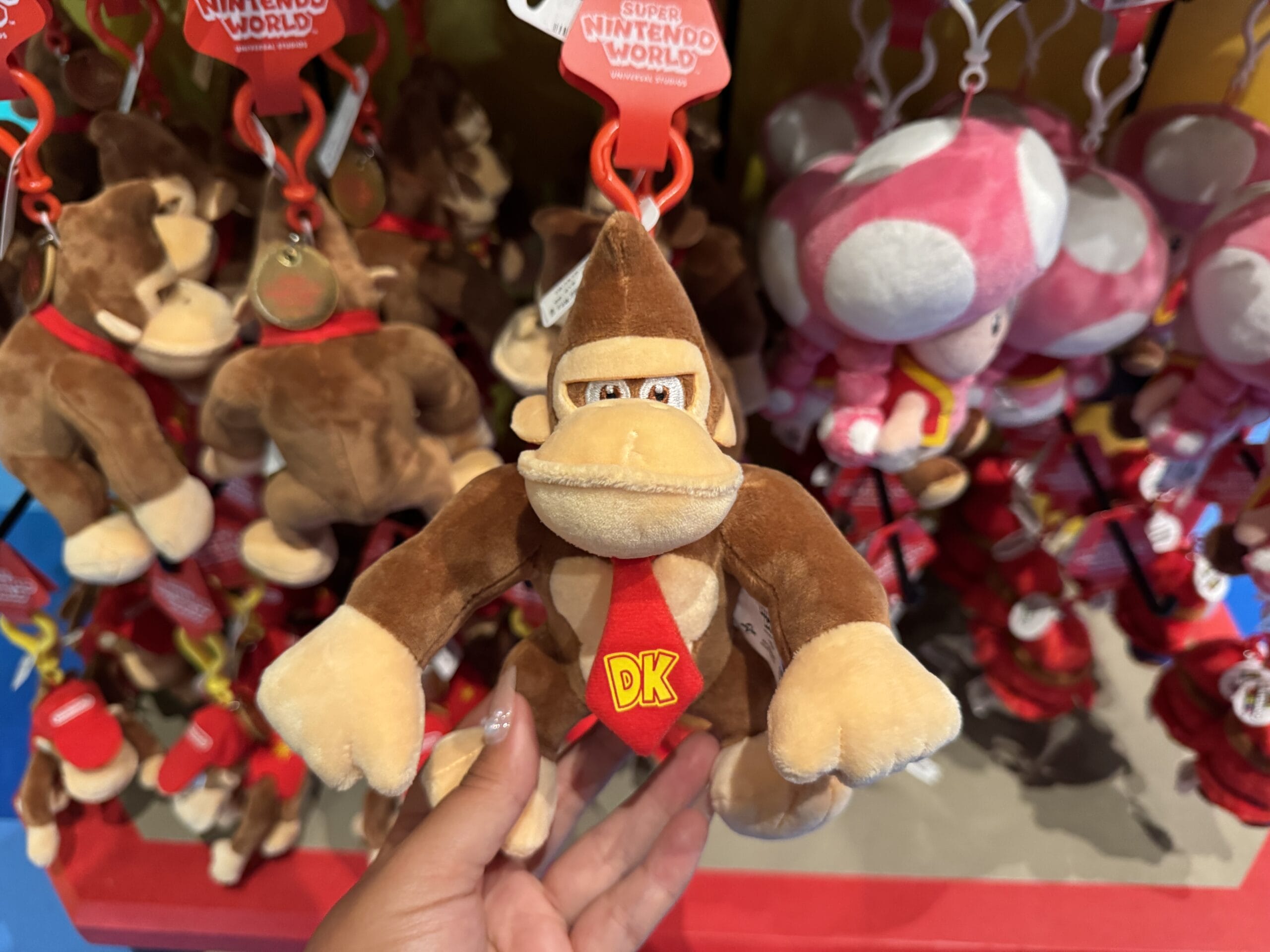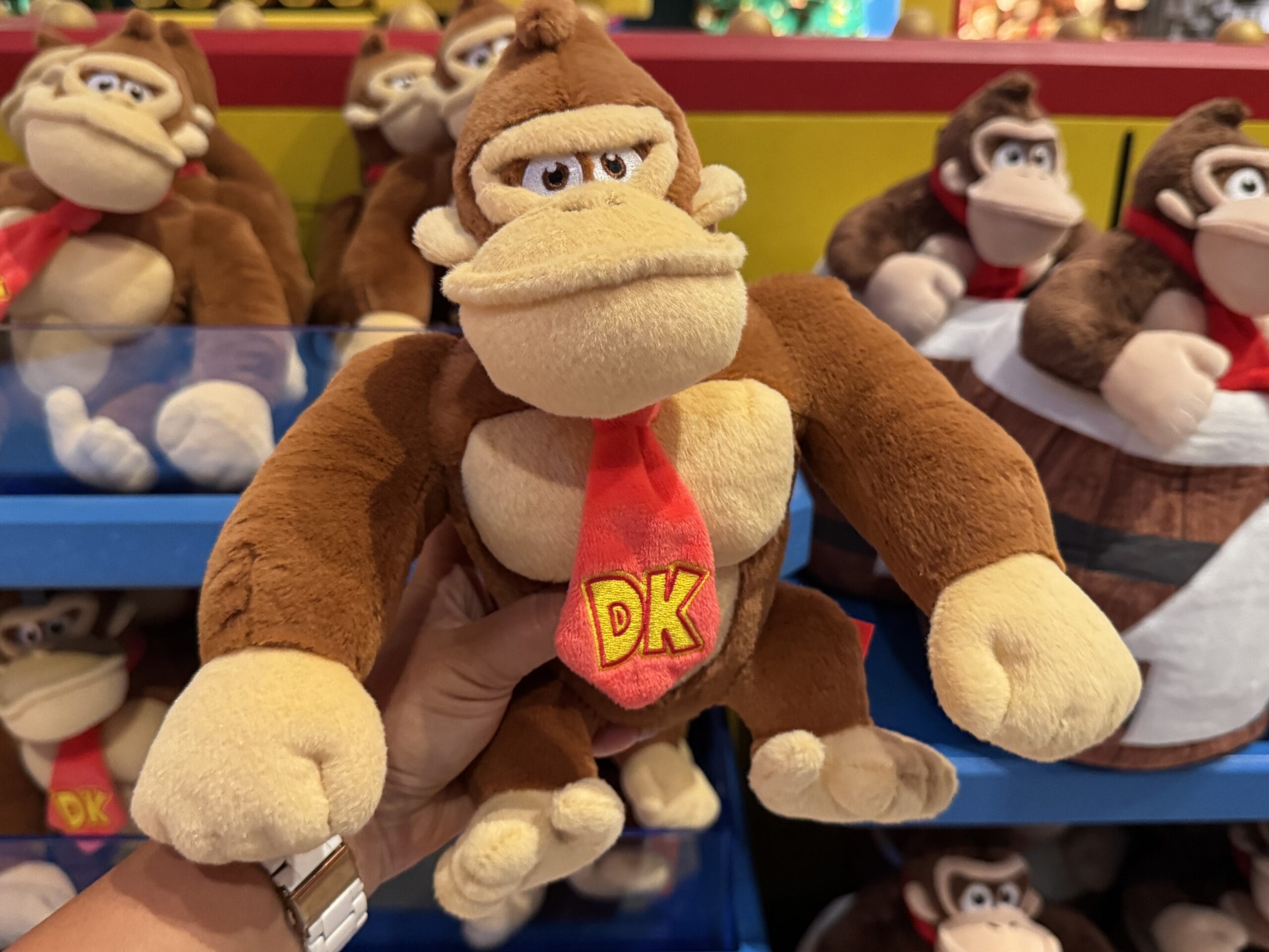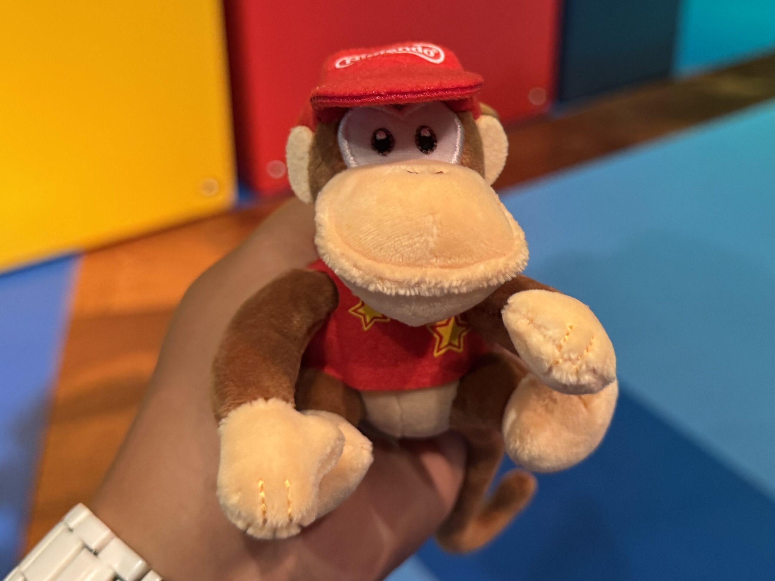 The Diddy Kong plush has him in a red tank top with golden stars and a red Nintendo ball cap.