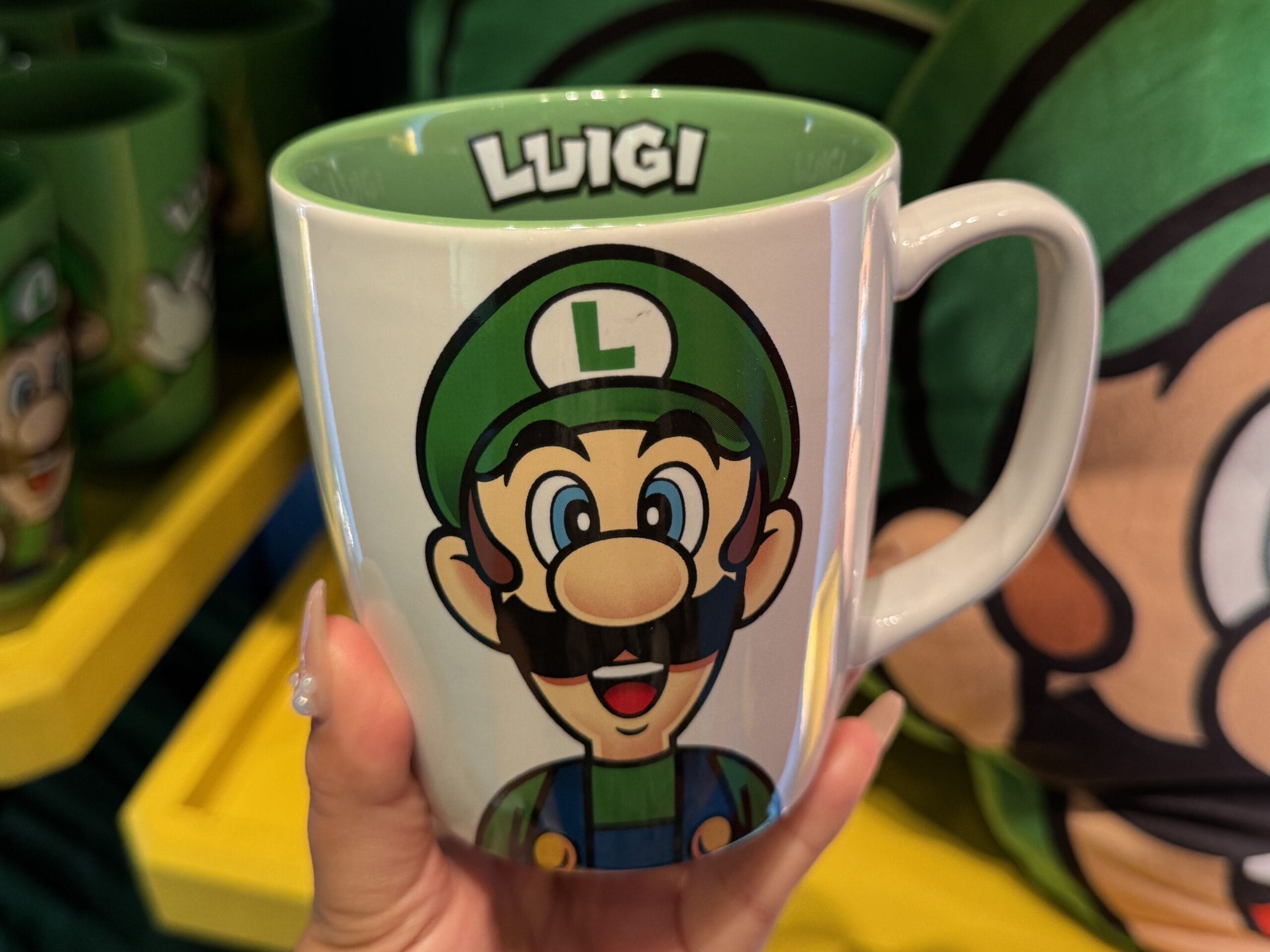 This cup is blue with a close up of Toad on one side. He’s happily frolicking on the reverse, under his name.