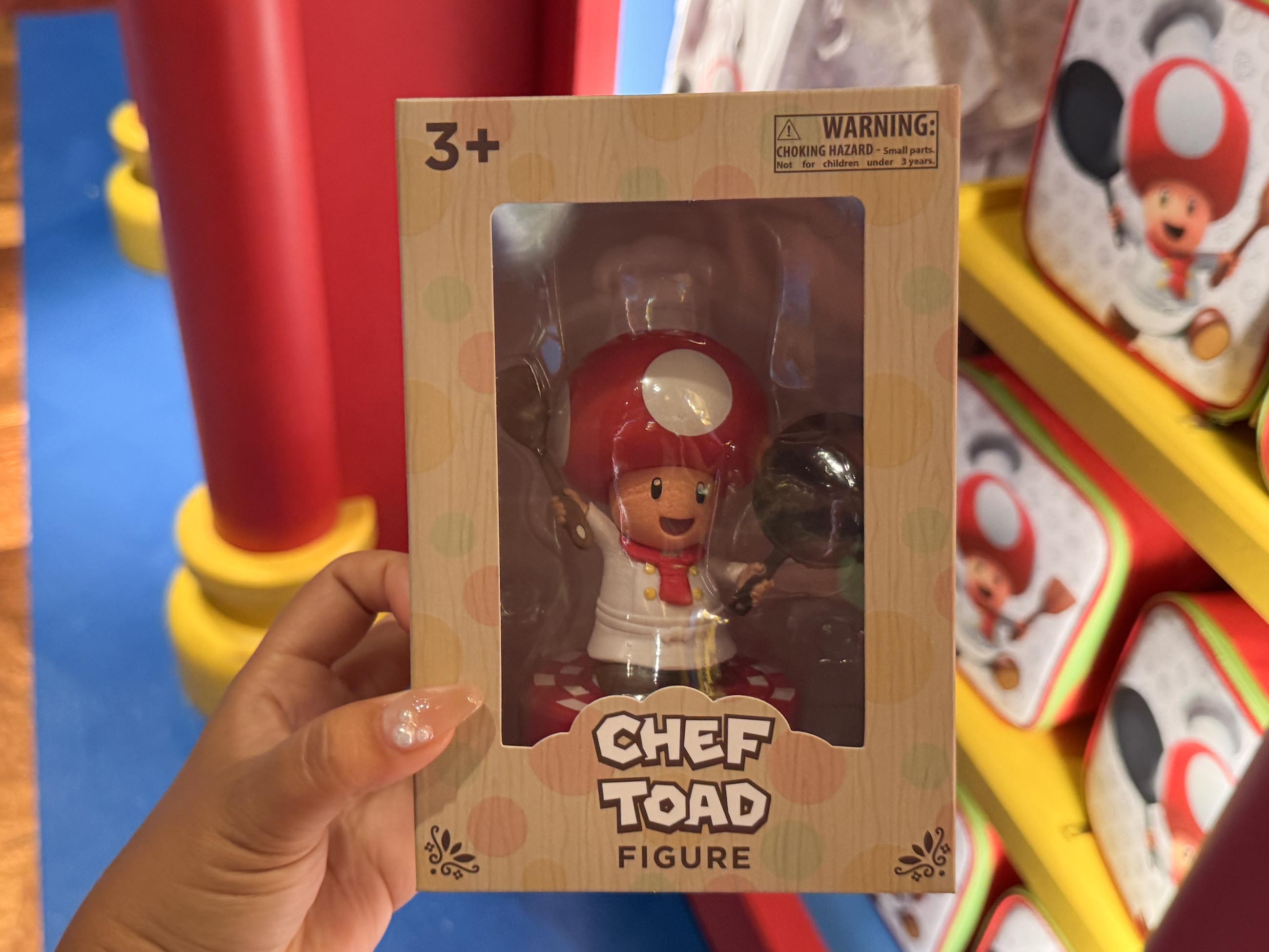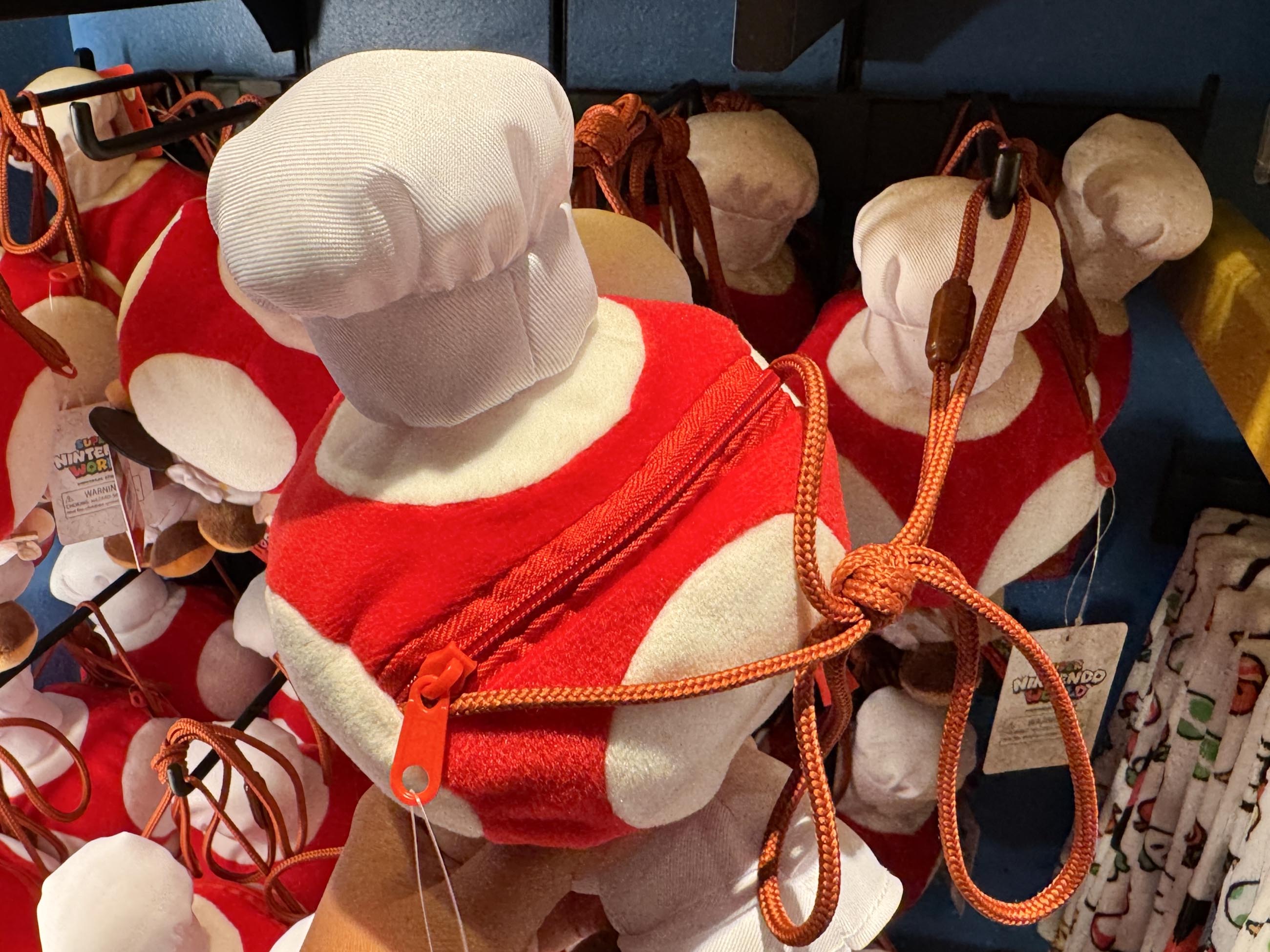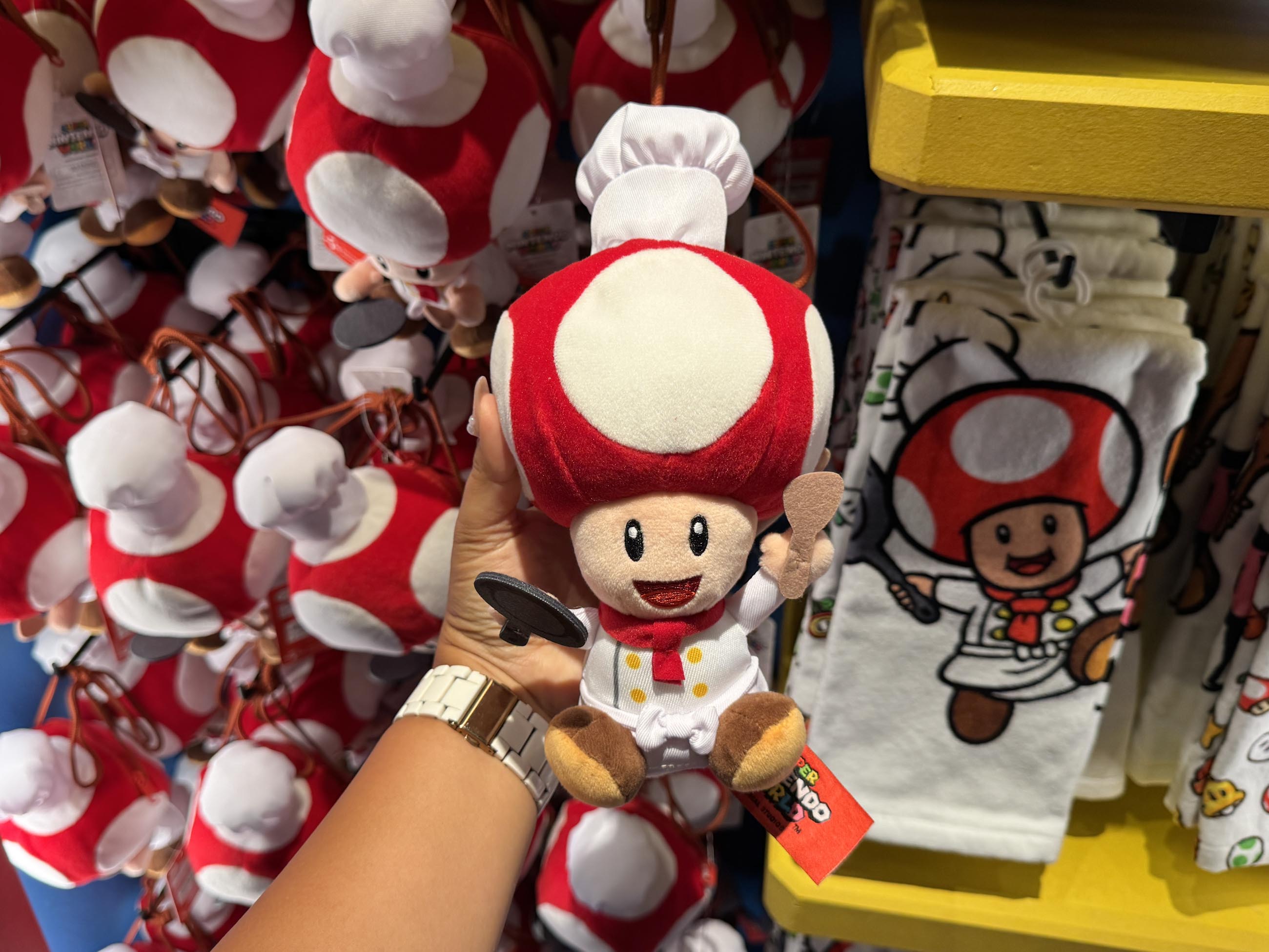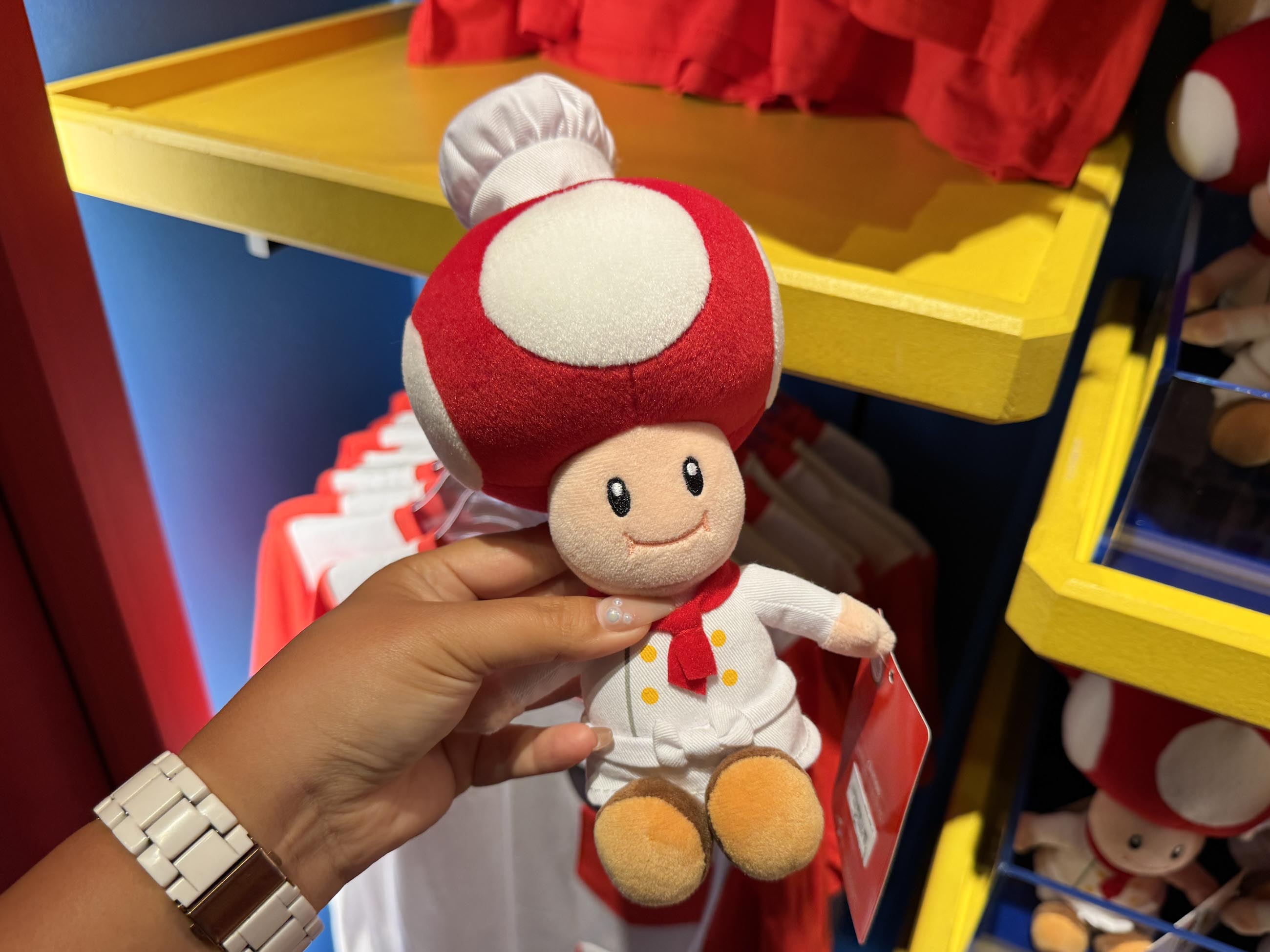 The Chef Toad plush is wearing his hat and coat but doesn’t carry any cutlery.