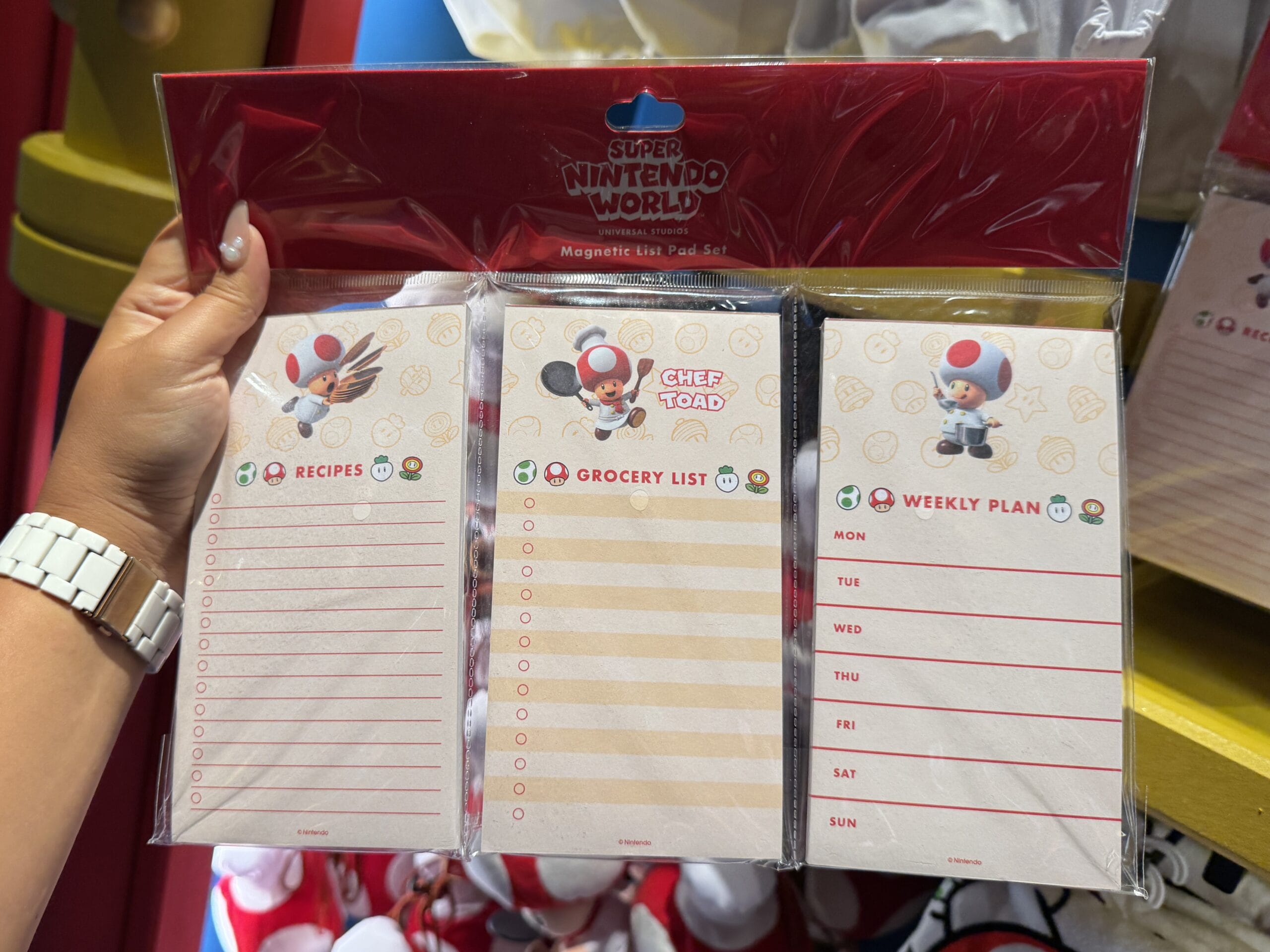 Chef Toad can also help you meal plan. This set includes three magnetic notepads, each with a different image of Chef Toad. They are labeled for recipes, grocery lists, and weekly plans.