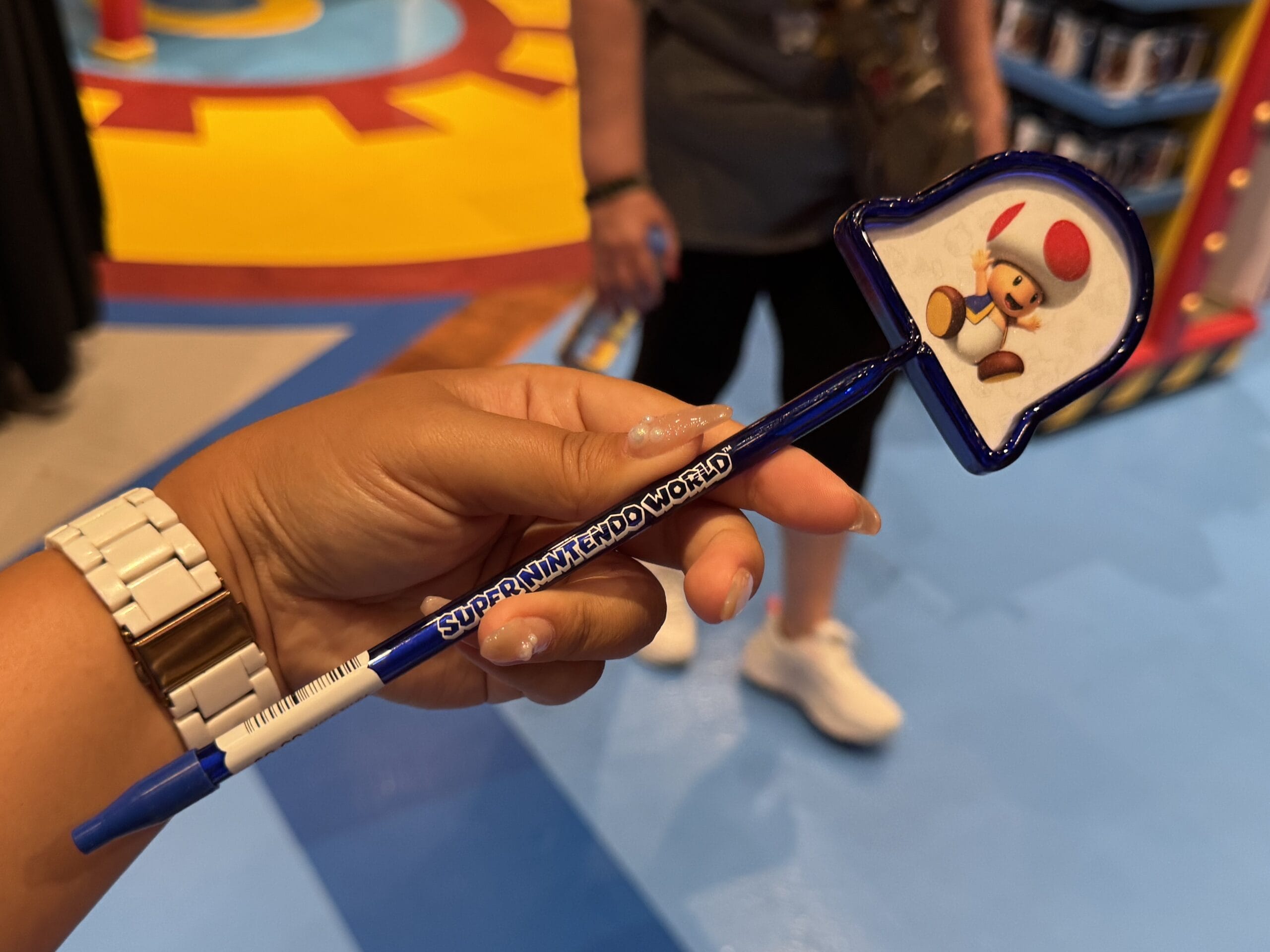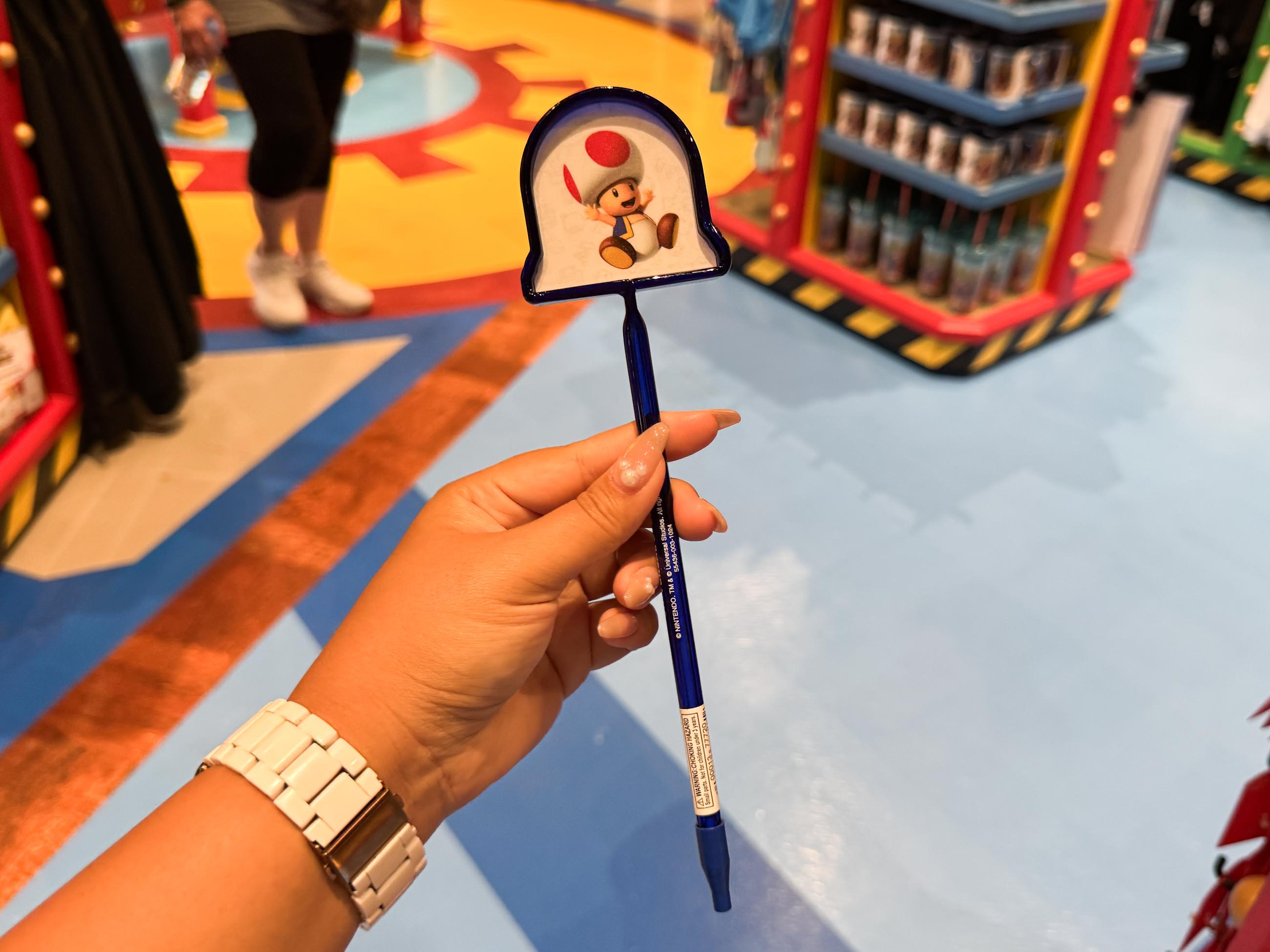 The pen is dark blue with a bell-shaped image of Toad on top.