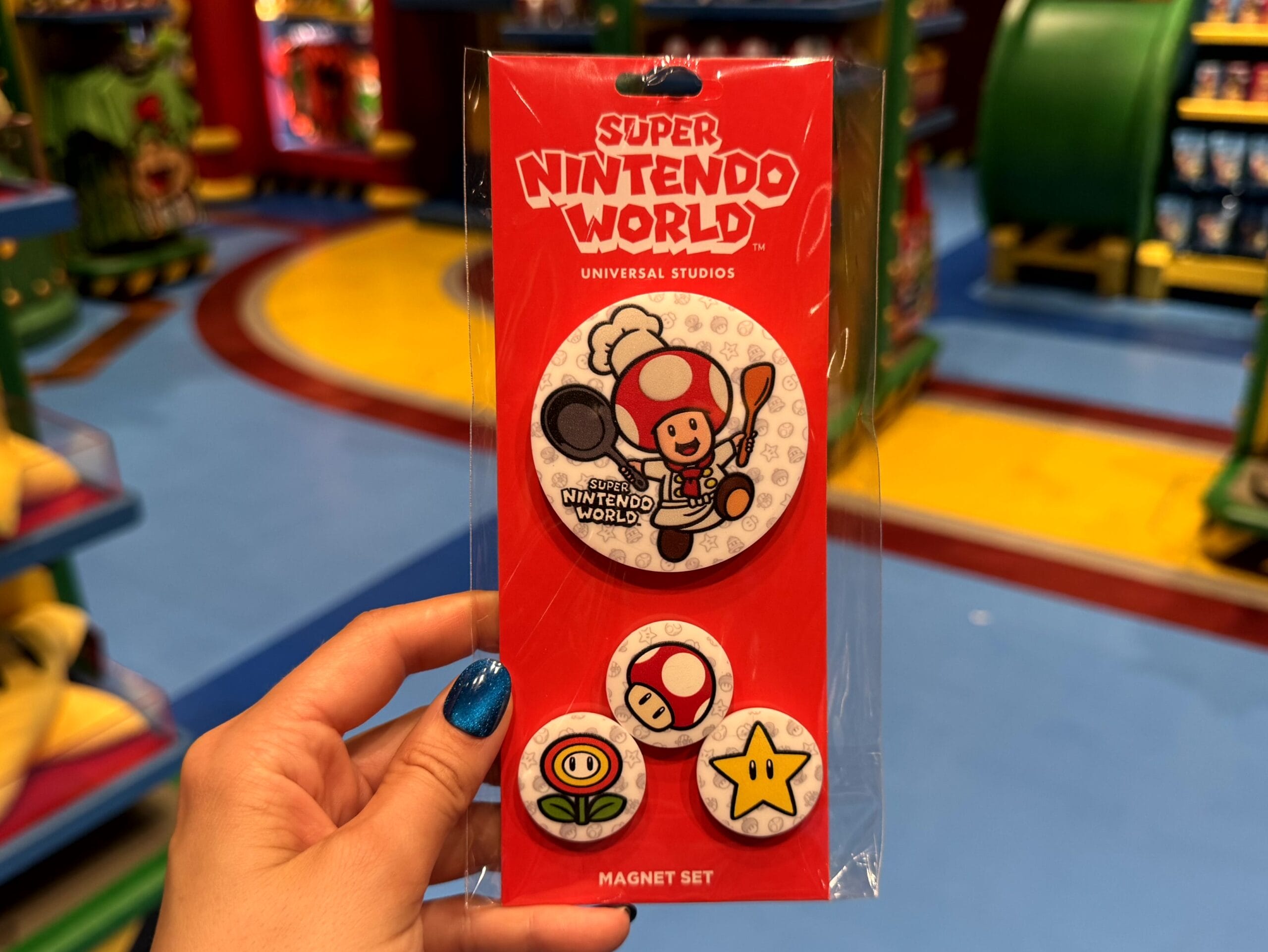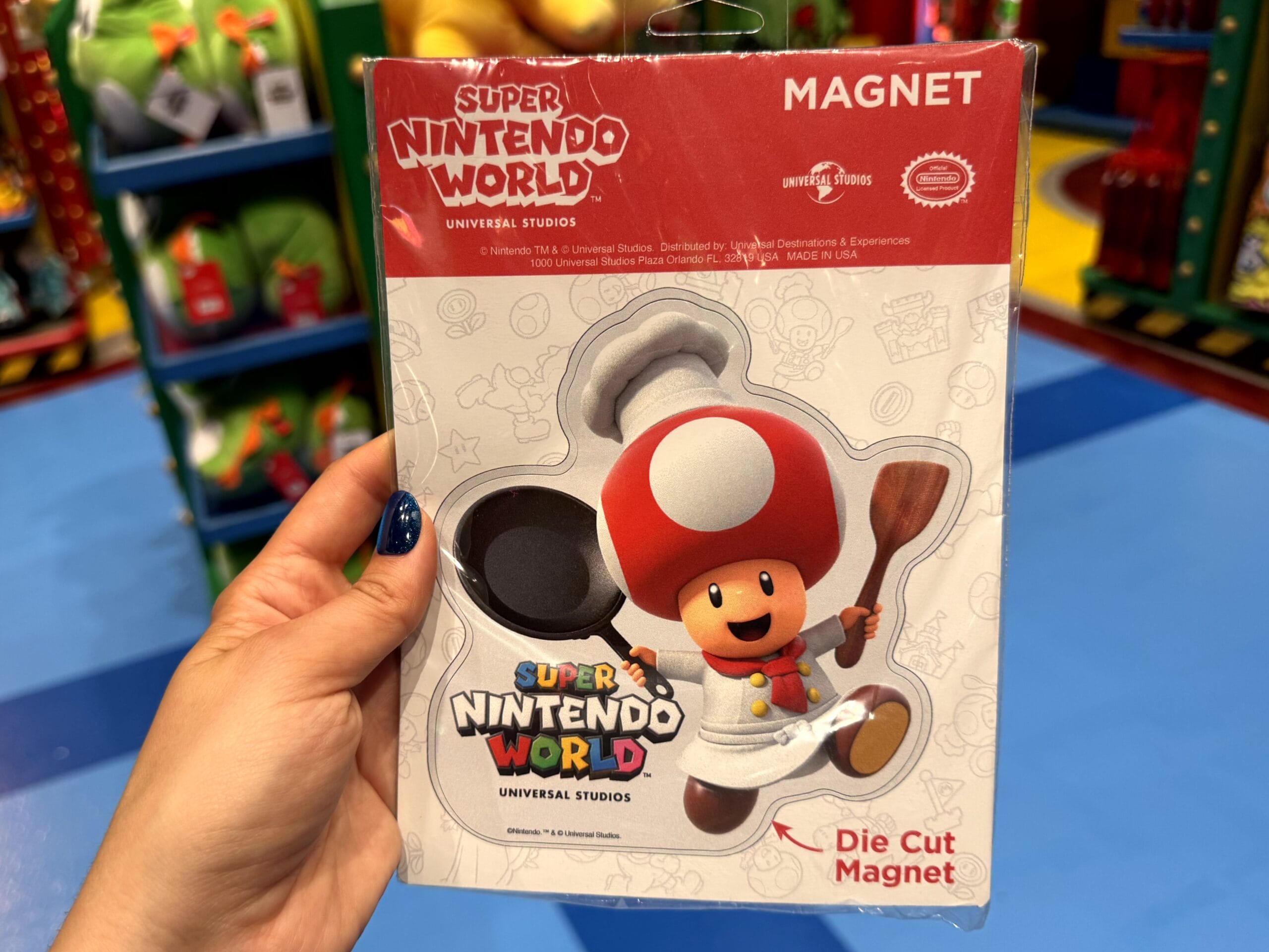 The magnet features Chef Toad with his pan and spoon, alongside the Super Nintendo World logo.