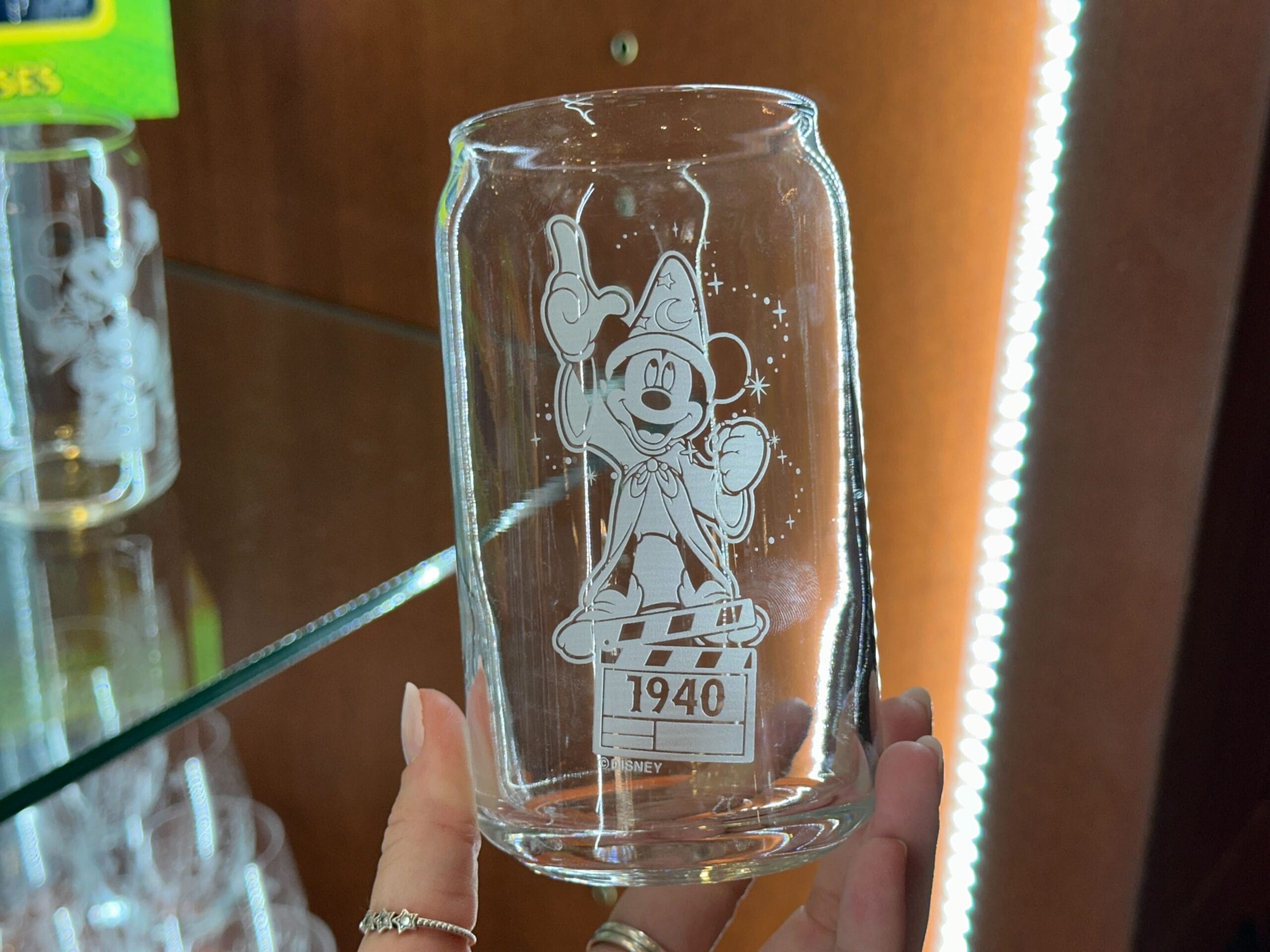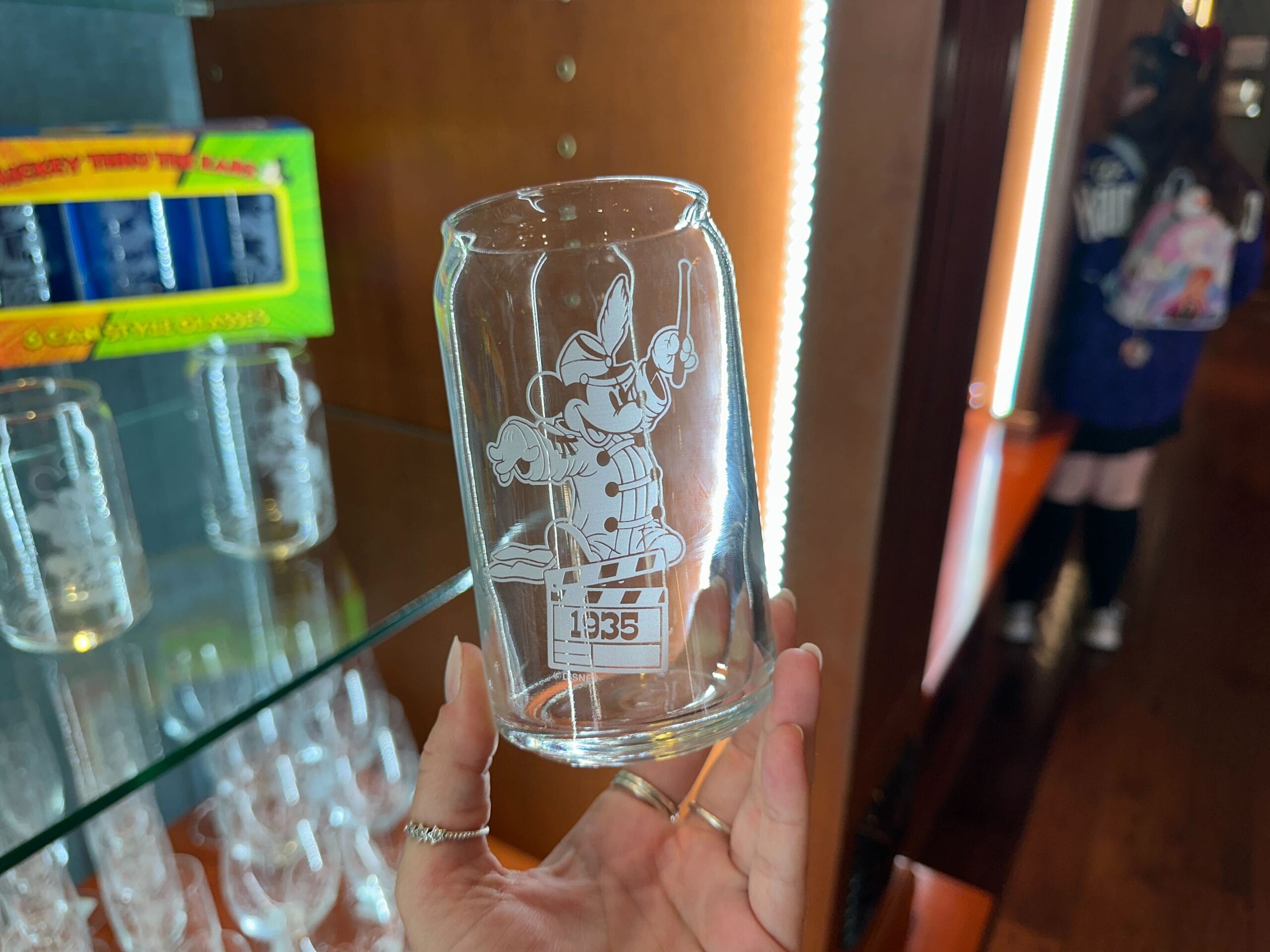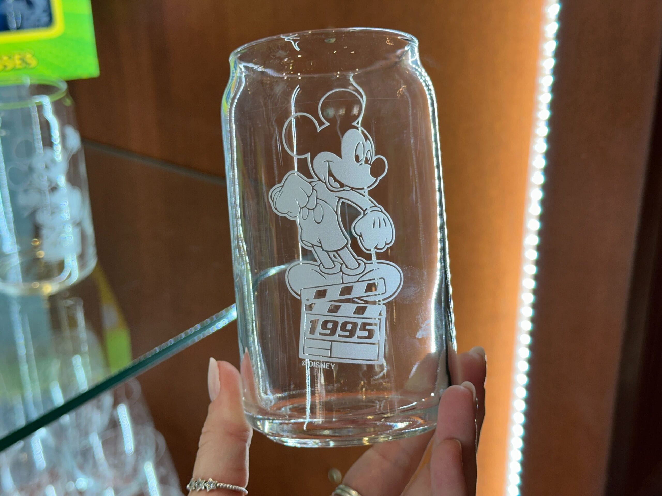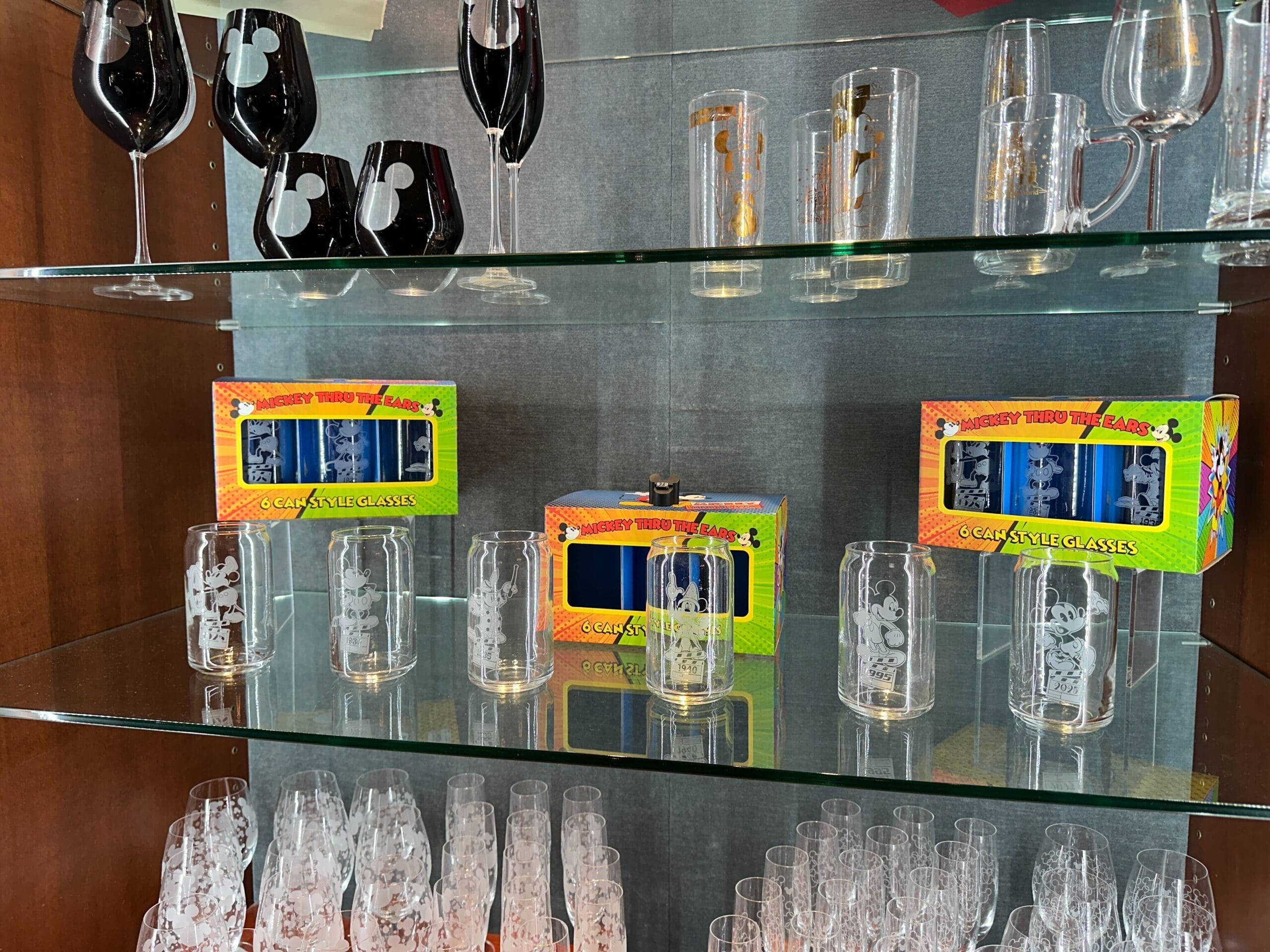 A set of six can-style glass tumblers is now available at Walt Disney World. All six glasses are inspired by Mickey Mouse designs through the “ears.”