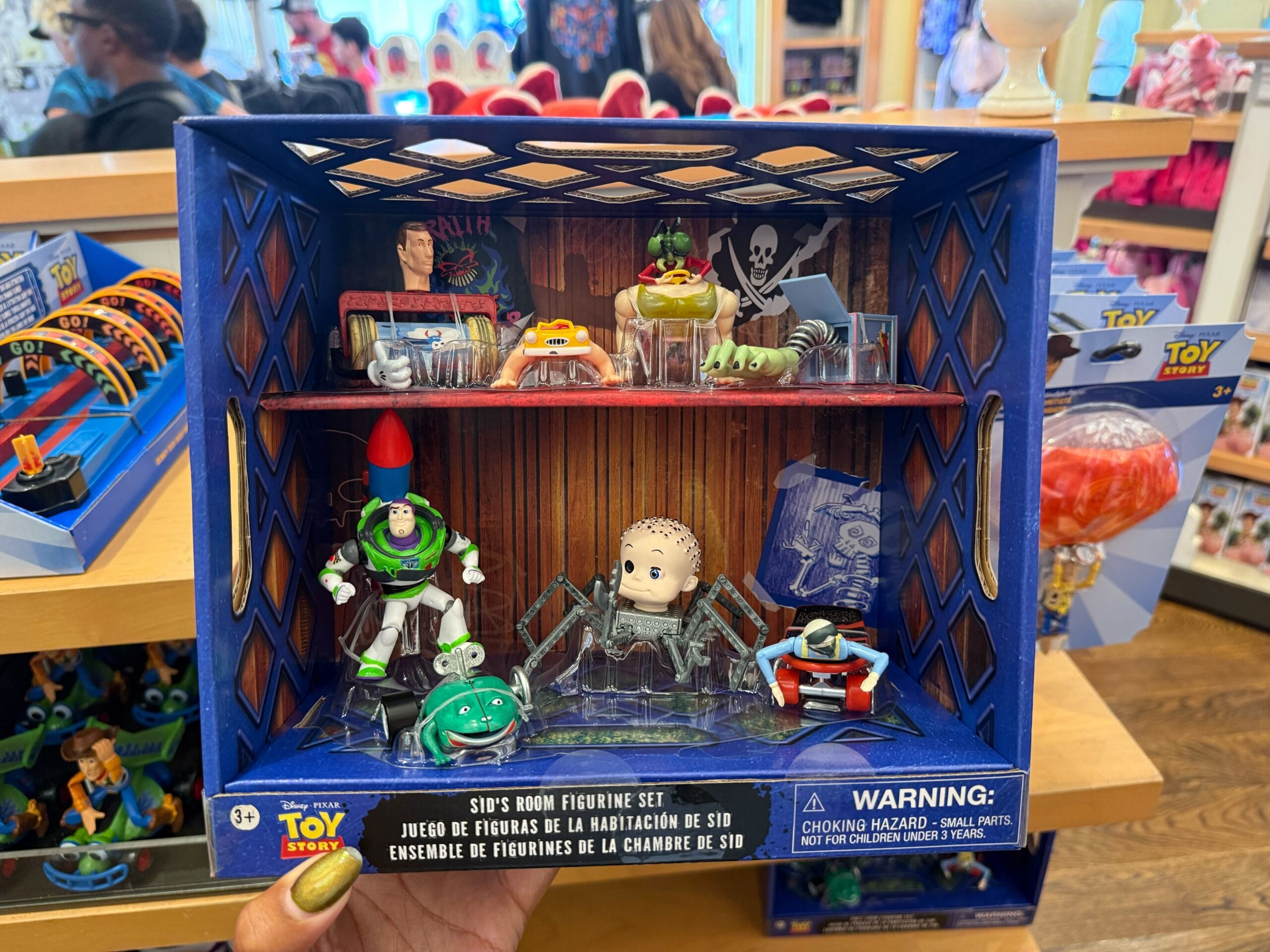 A figurine set featuring toys from Sid’s room in Toy Story is available in Knick’s Knacks. These toys have been manipulated and disfigured by Sid.