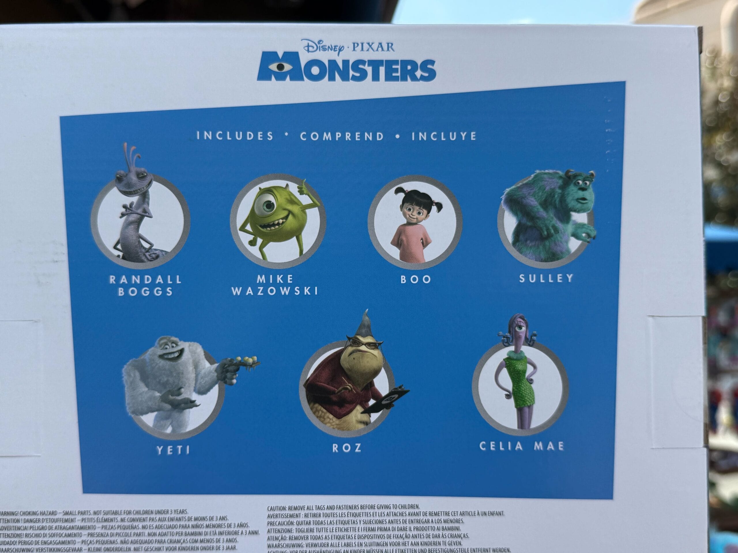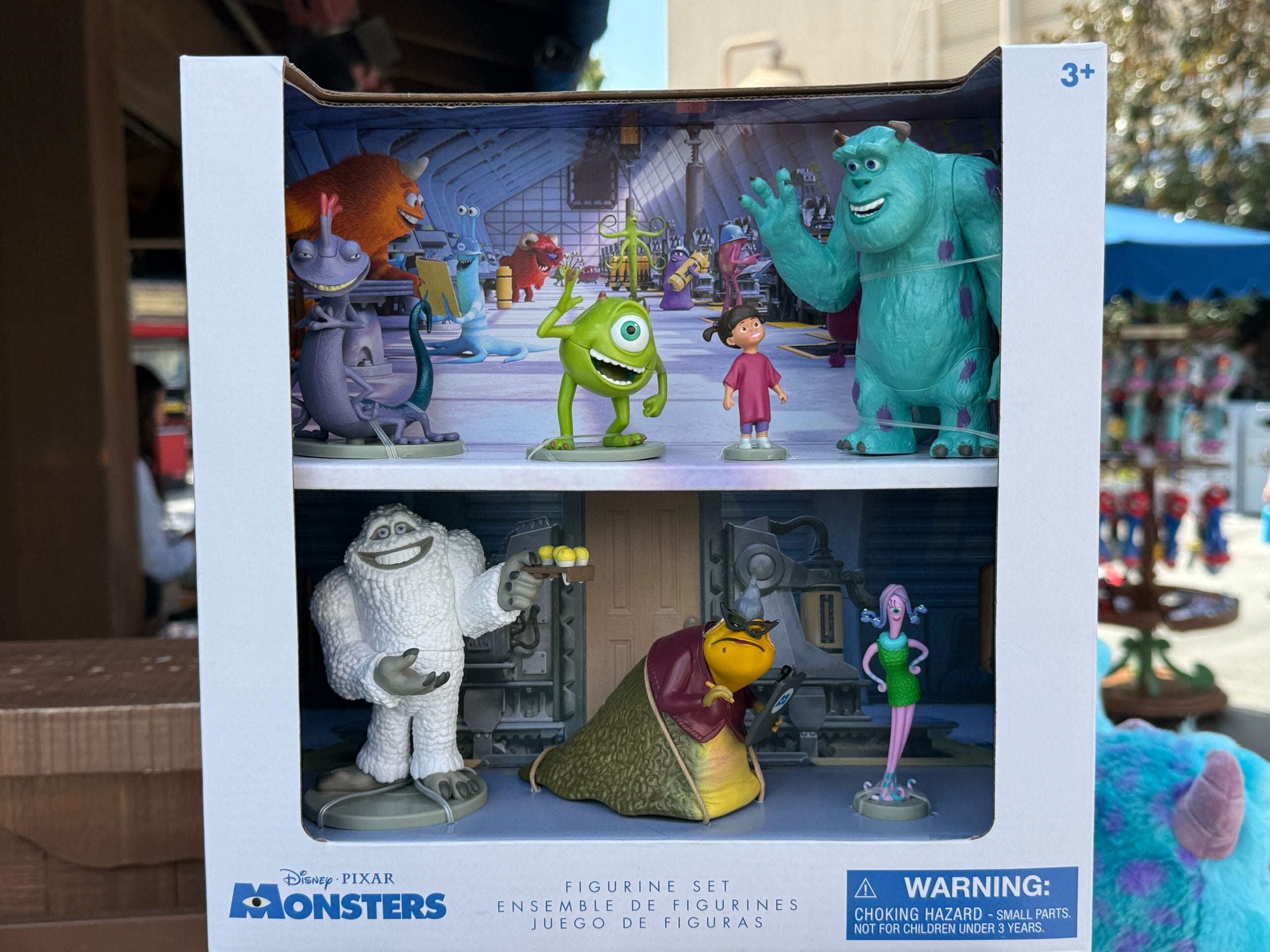 Disneyland has new merchandise featuring Monsters, Inc. and Toy Story. Items include figurine sets and a baby onesie.