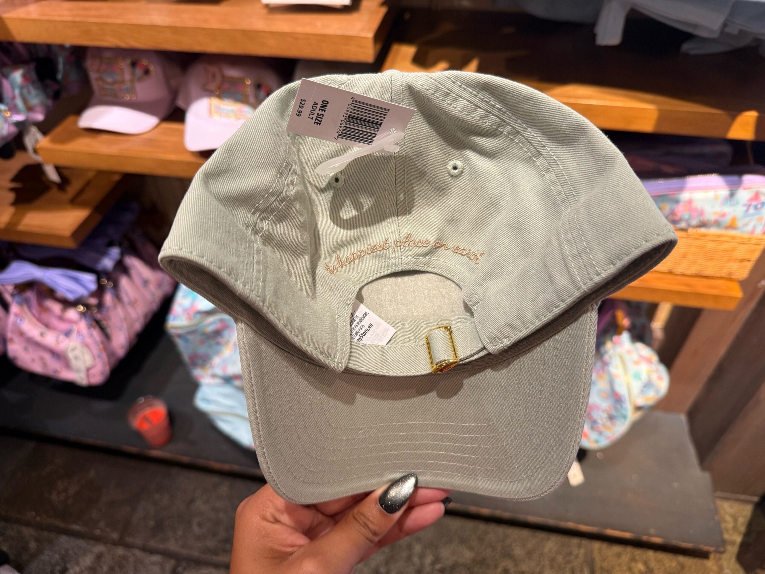 New Disneyland merchandise available at the resort includes a baseball jersey, “My Happy Place” keychain, and ball caps.