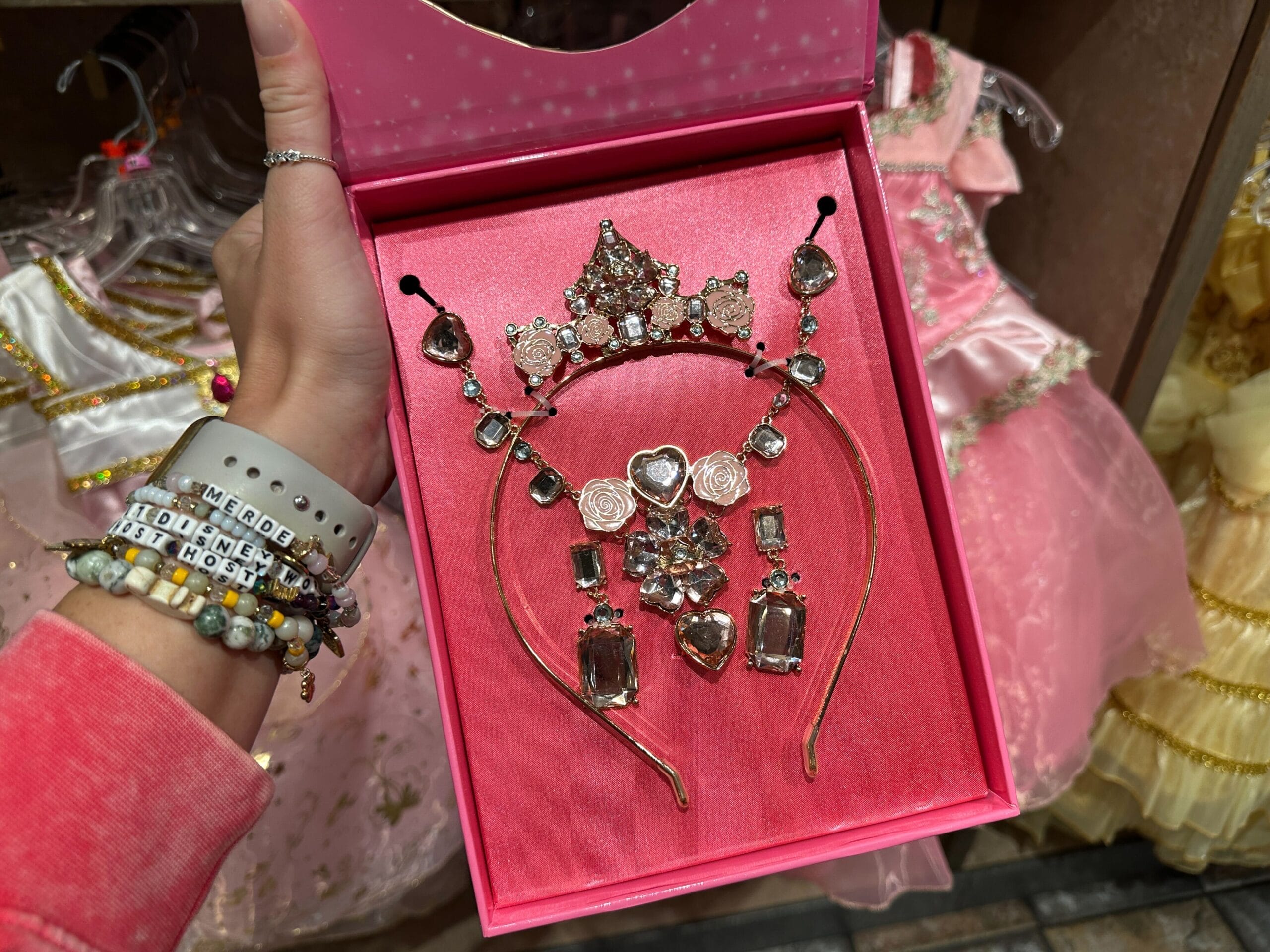 The last set is Cinderella-themed. A replica of her iconic headband comes with earrings and a necklace.