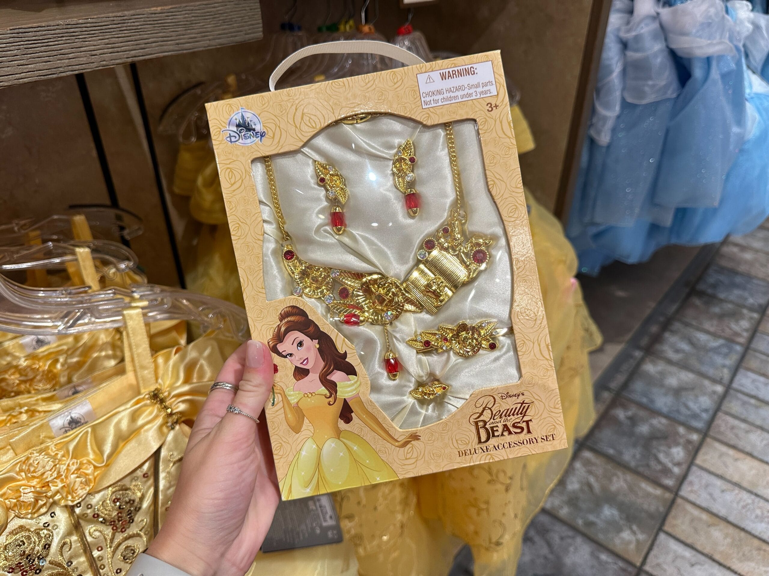 The next is a Belle-themed set. Colors of gold and rich ruby faux gems make up the accessories.