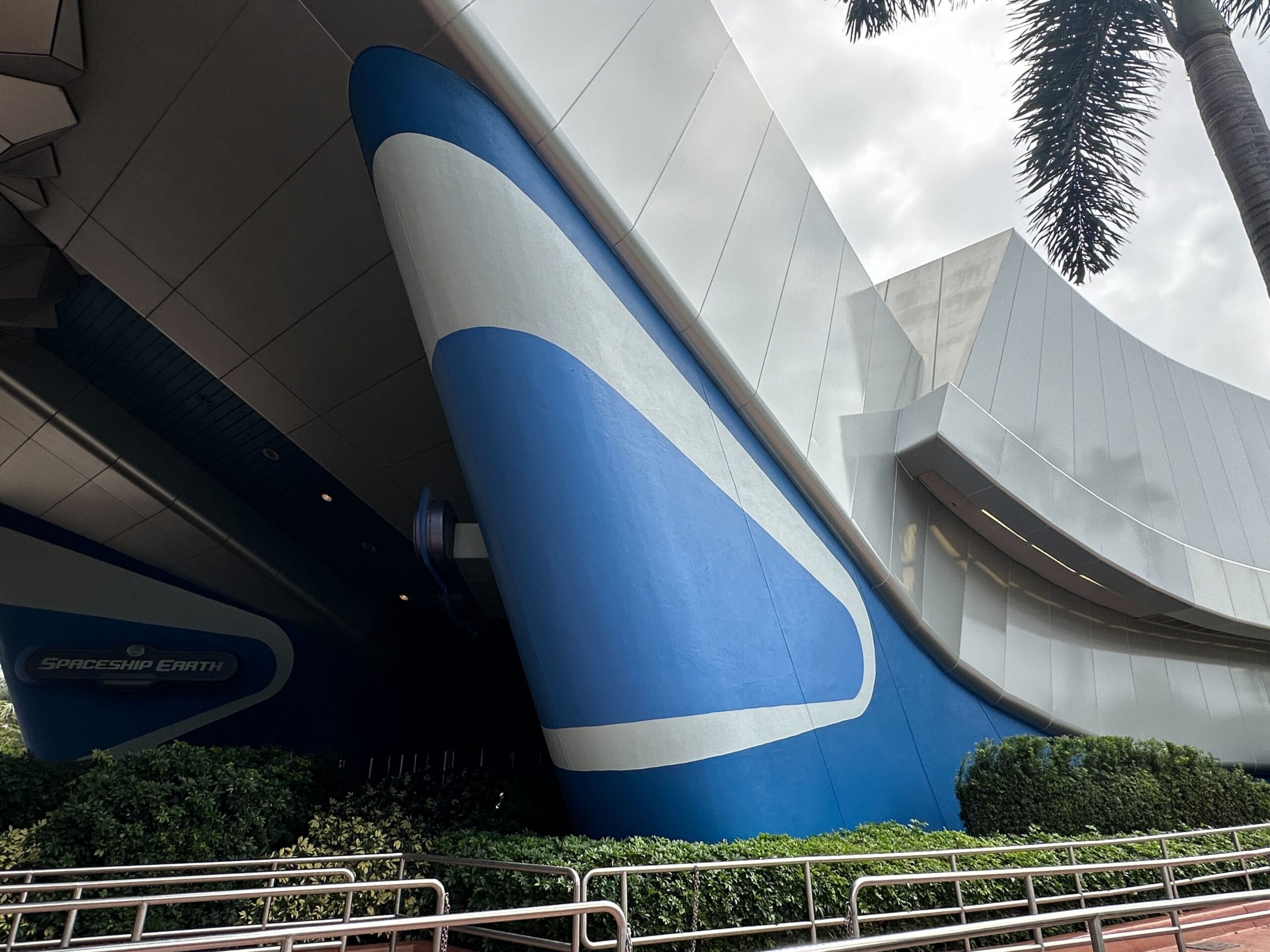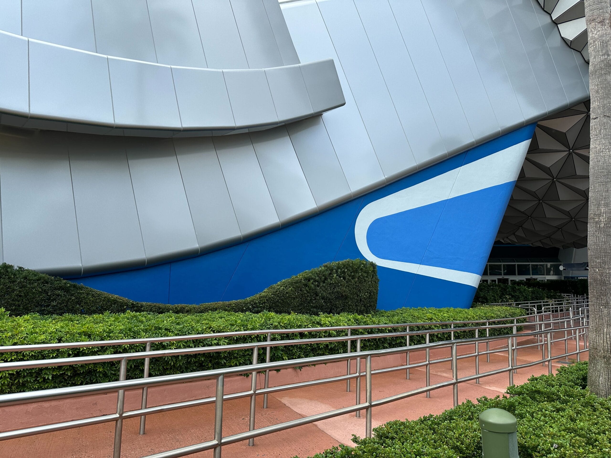 Crews repainted the blue walls framing the entryway for Spaceship Earth. The design hasn’t changed, but the paint looks brighter than before. The light-colored segments also appear to be even lighter than they were previously.