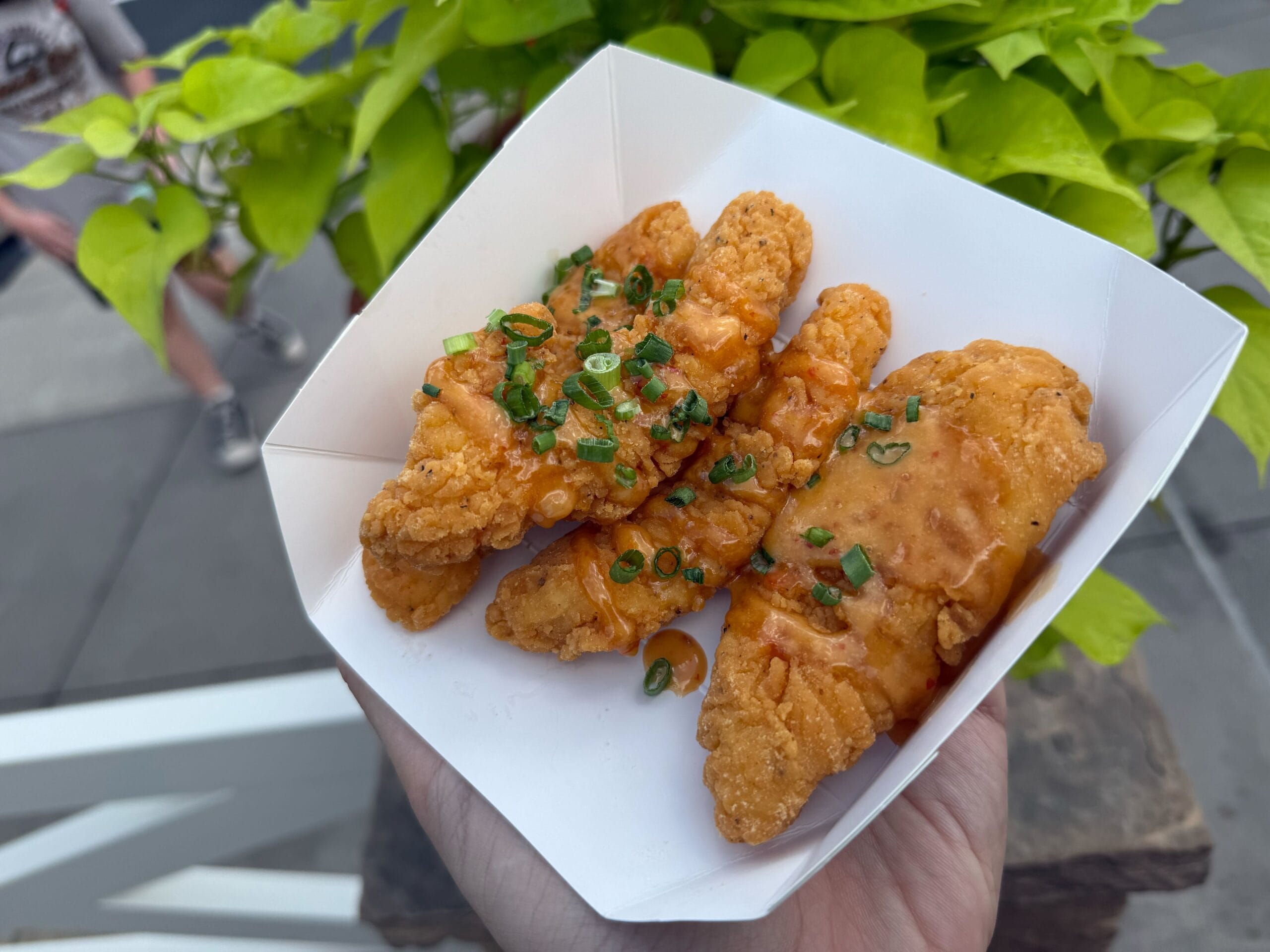 Spicy Aïoli Chicken Strips are one of thirteen new saucy chicken strip flavors available across Walt Disney World Resort (and we’re trying them all). Check out our review below.