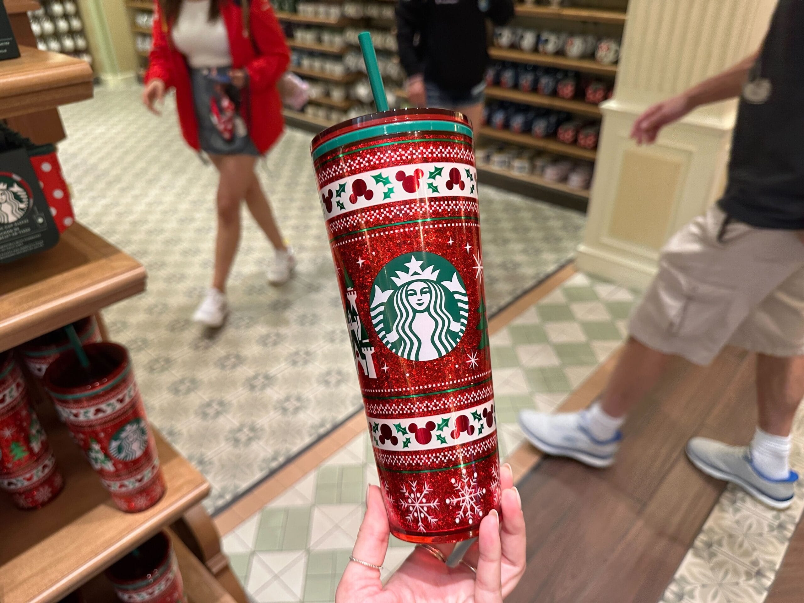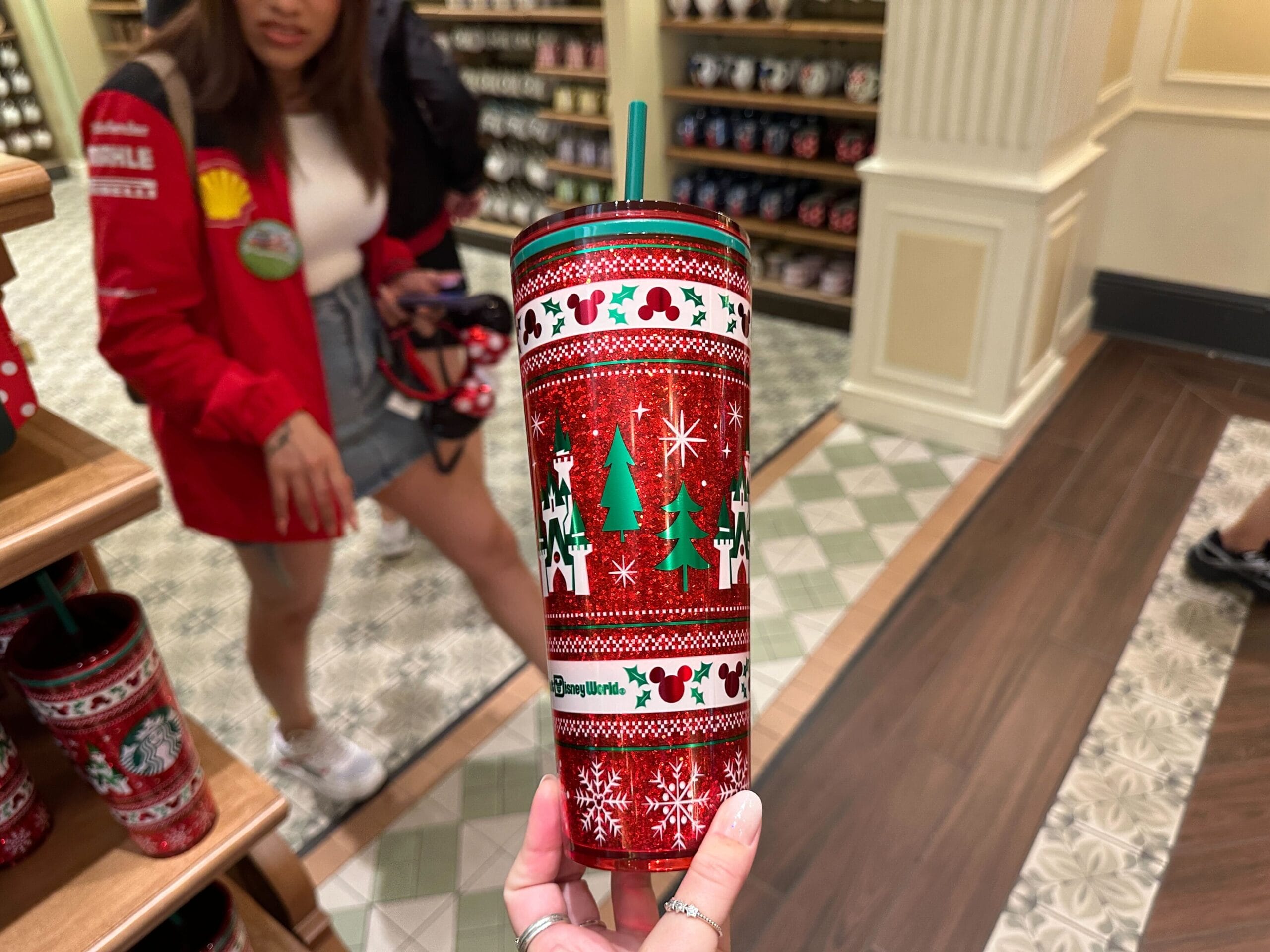 Get in the Christmas spirit with the Starbucks and Disney World holiday collection. It includes a tumbler, cup sleeve, and surprise straw topper.