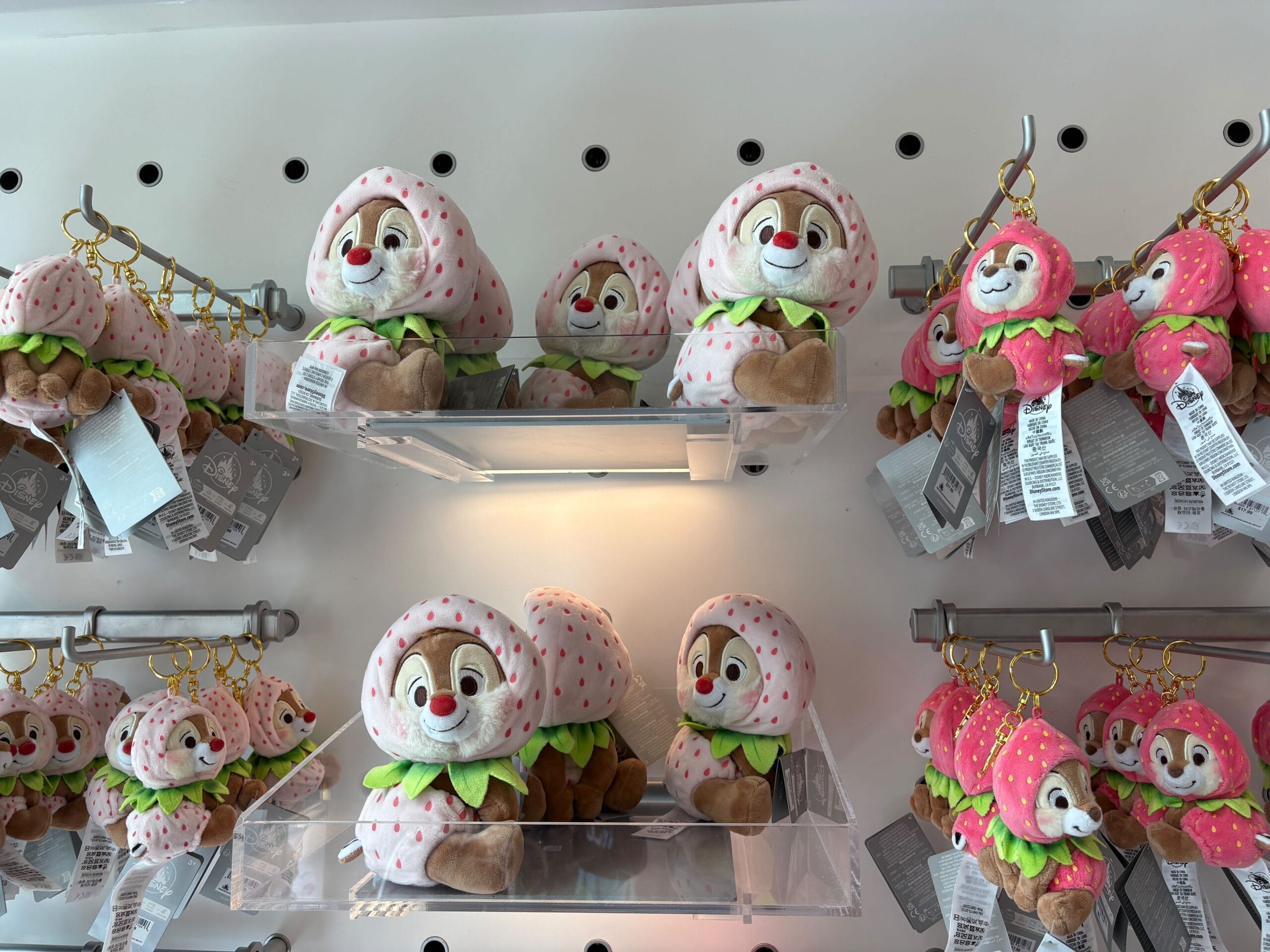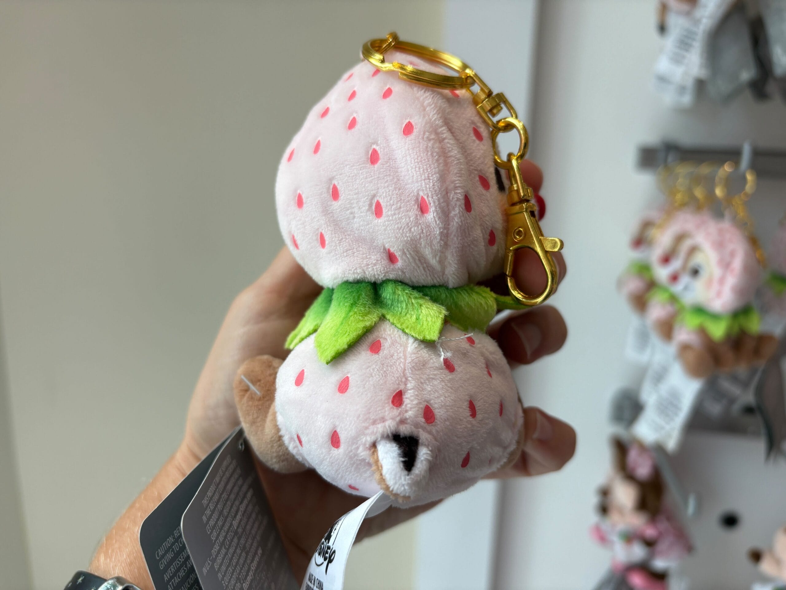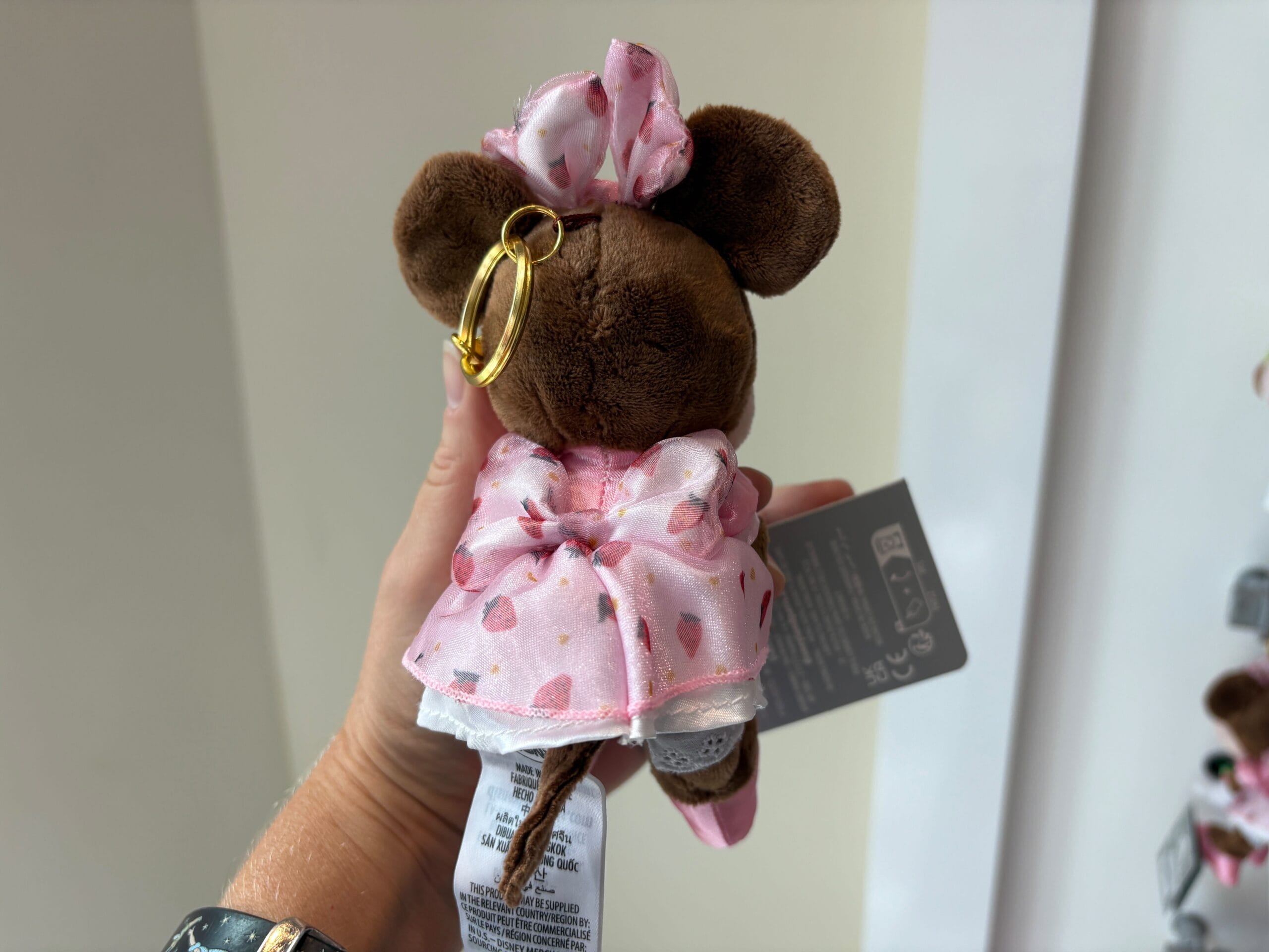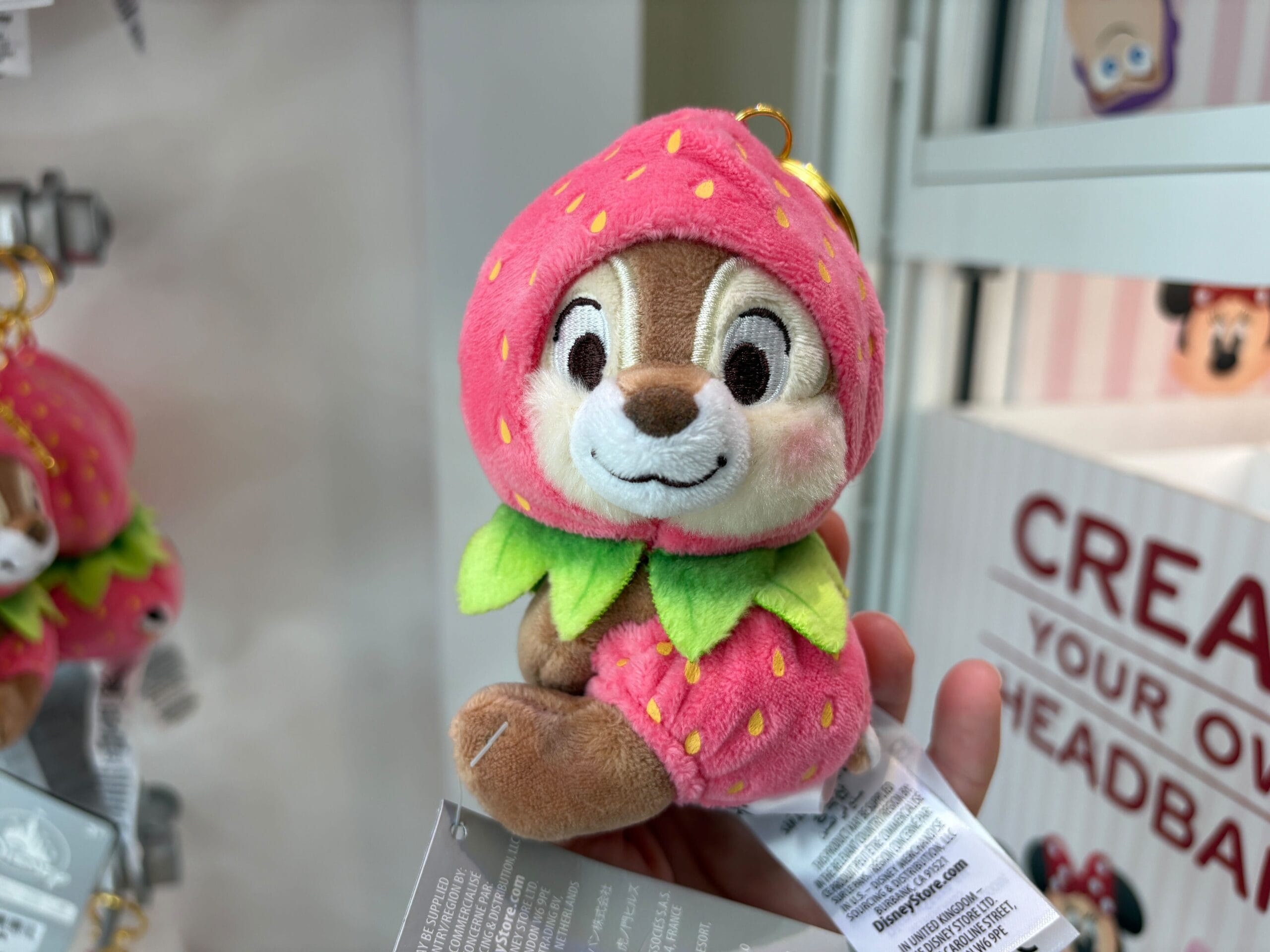 A collection of sweet strawberry-themed character plush and bag charms has arrived in Disney Springs.
