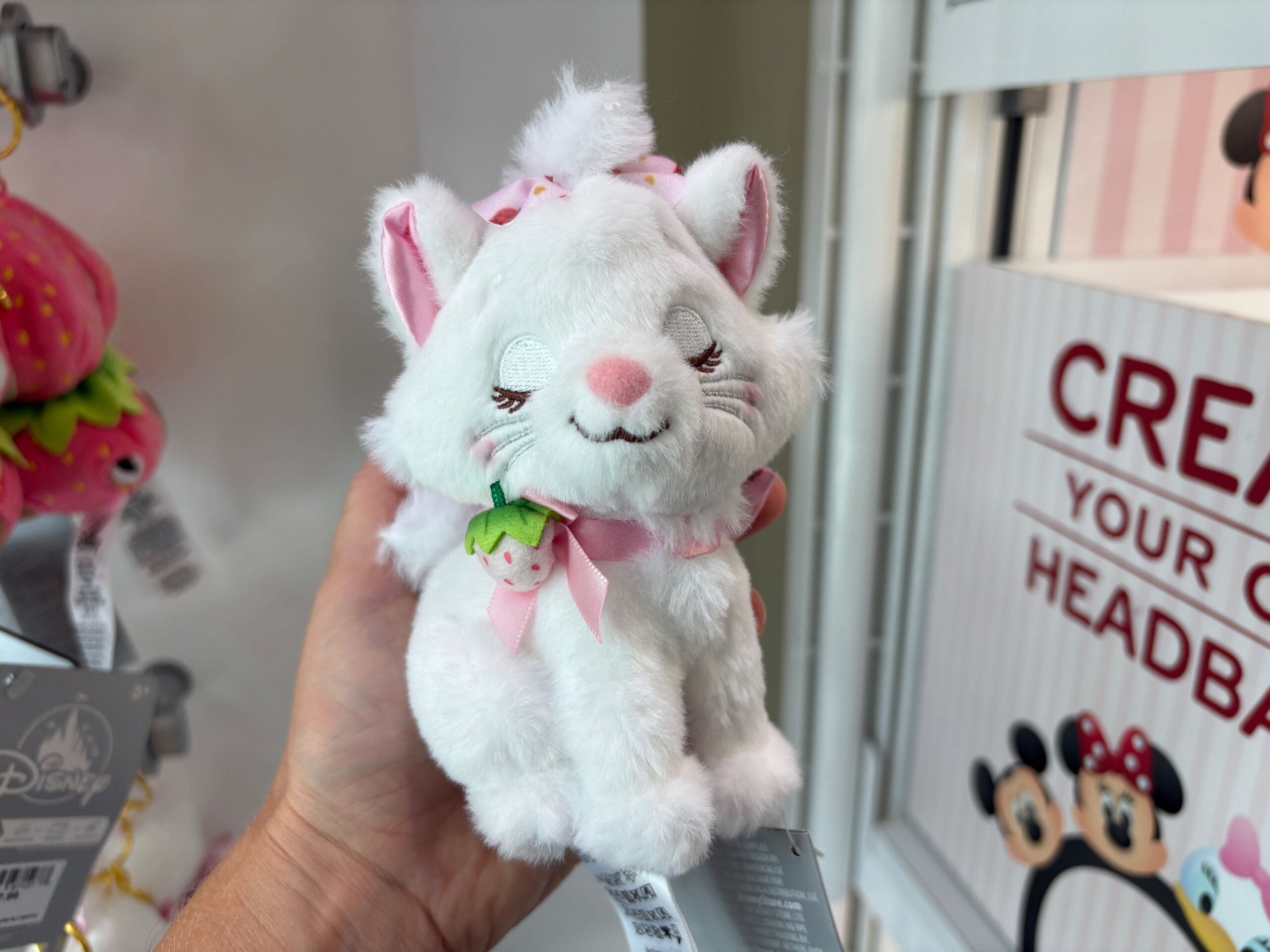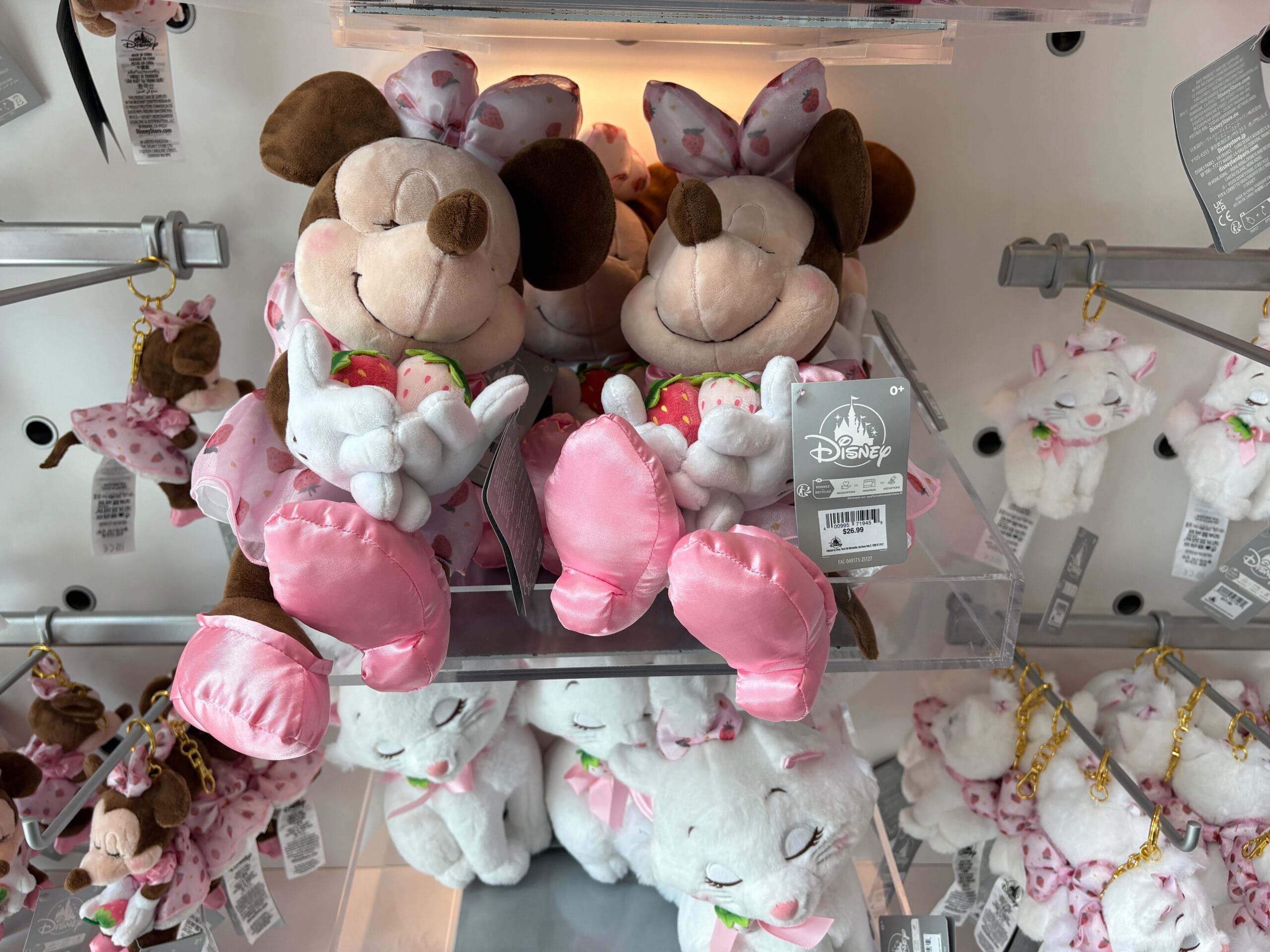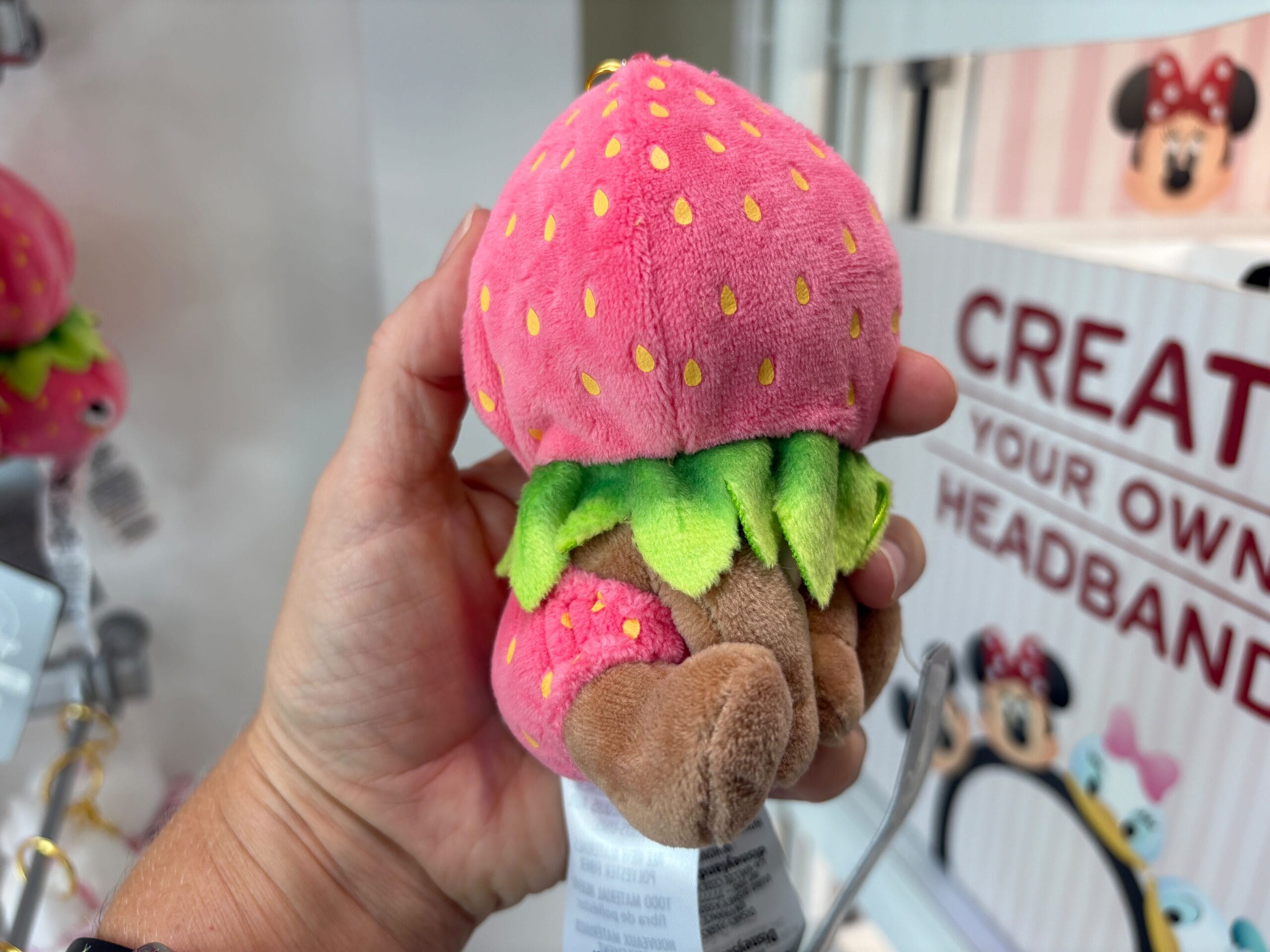 A collection of sweet strawberry-themed character plush and bag charms has arrived in Disney Springs.