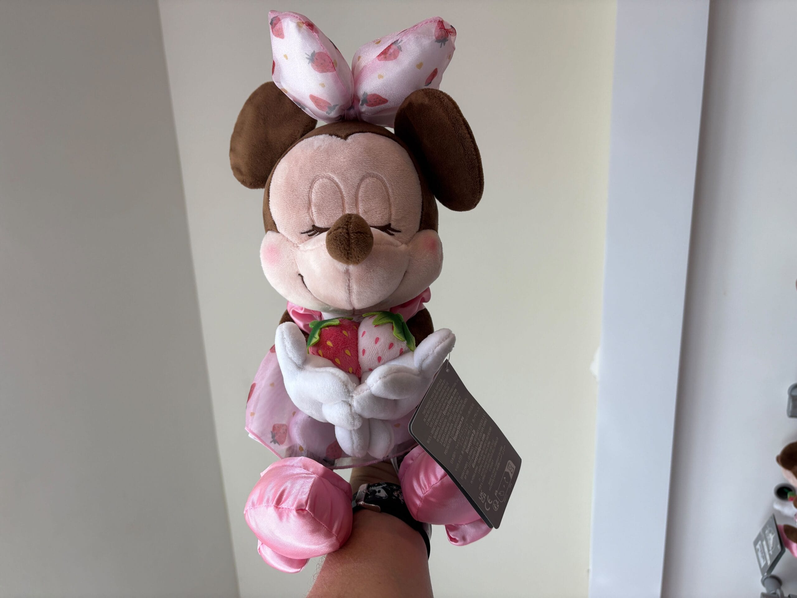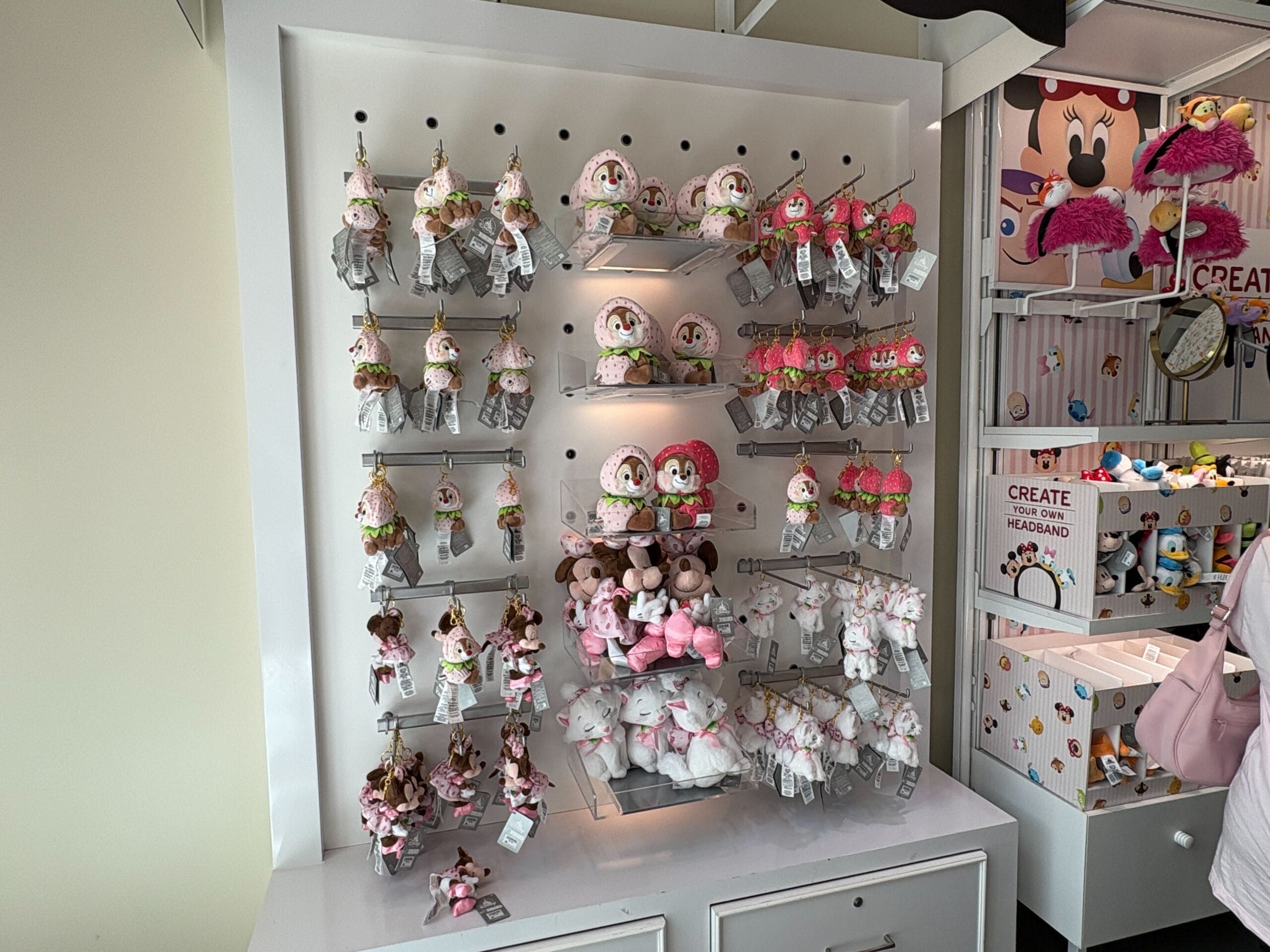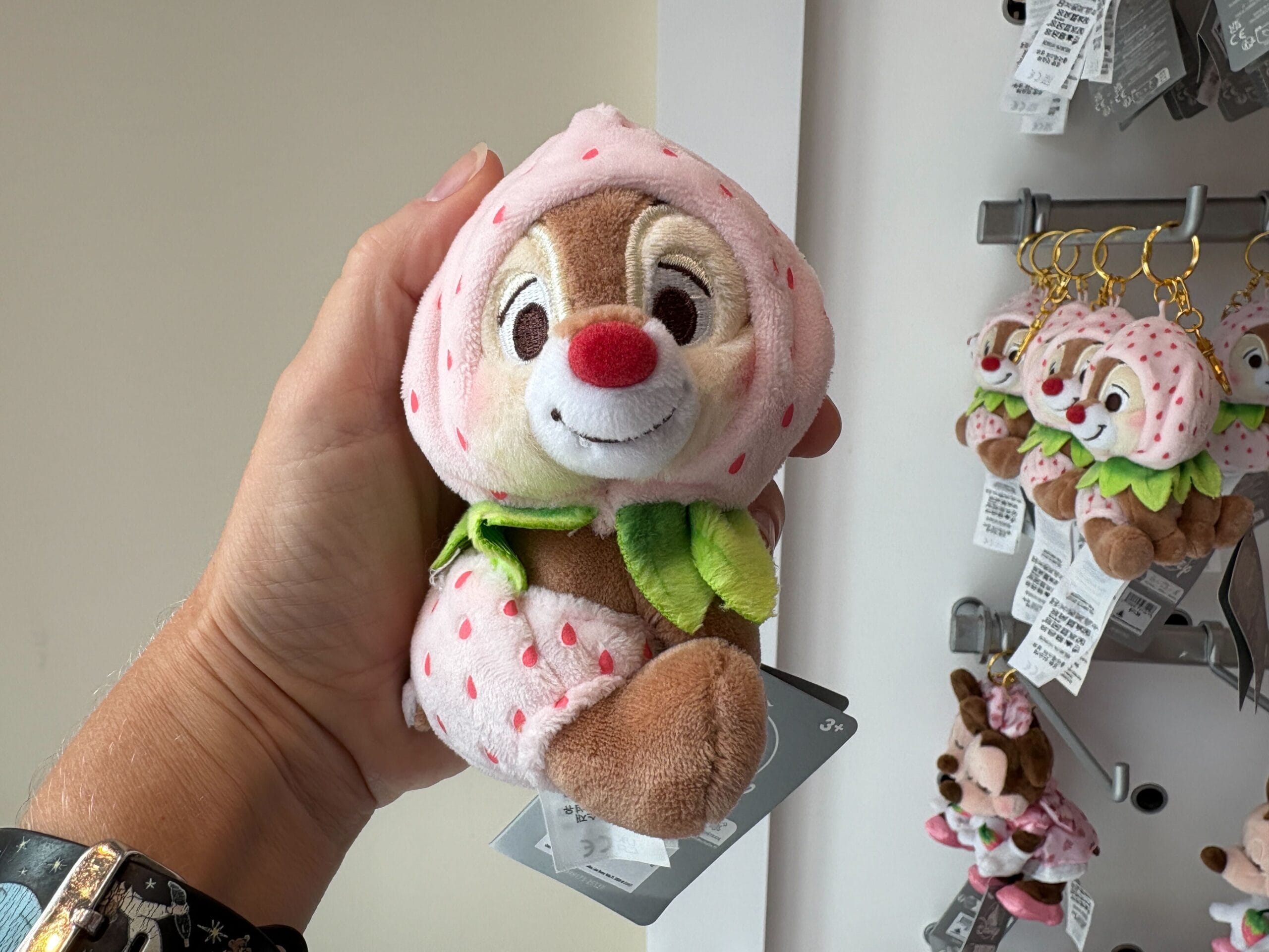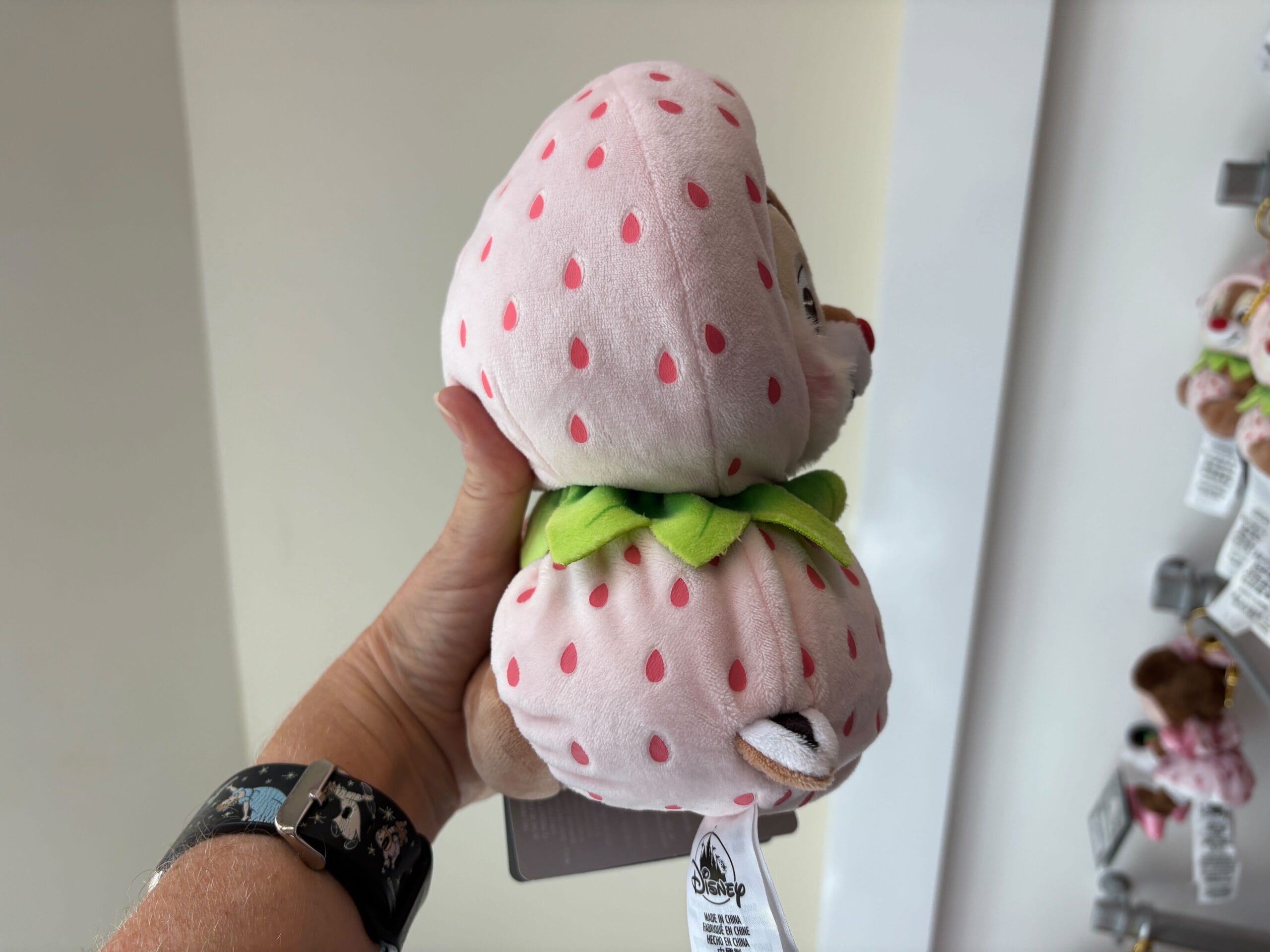 A collection of sweet strawberry-themed character plush and bag charms has arrived in Disney Springs.