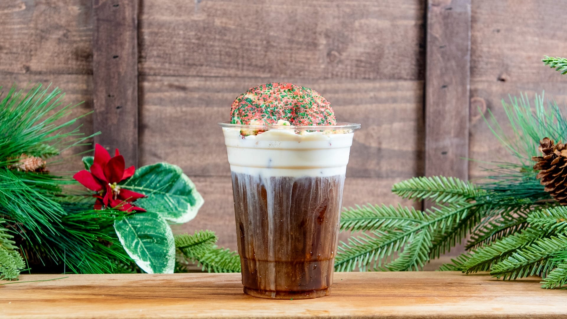 - Peppermint Cold Brew topped with vanilla foam and holiday sugar (Non-alcoholic)