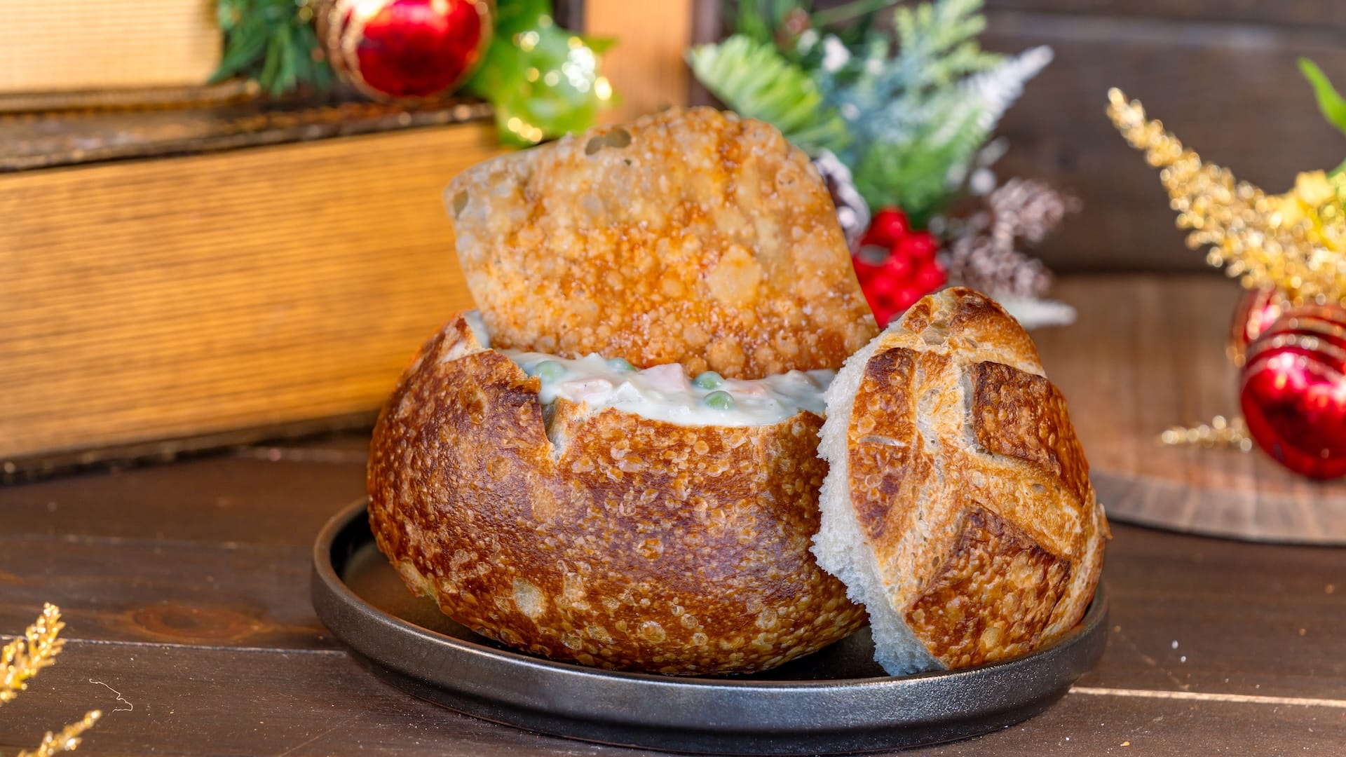 - Thanks-mas Sandwich: Oven-roasted turkey breast, stuffing, gravy, and cranberry sauce on rustic bread served with house-made chips (Available Nov. 14 through Jan. 7)
