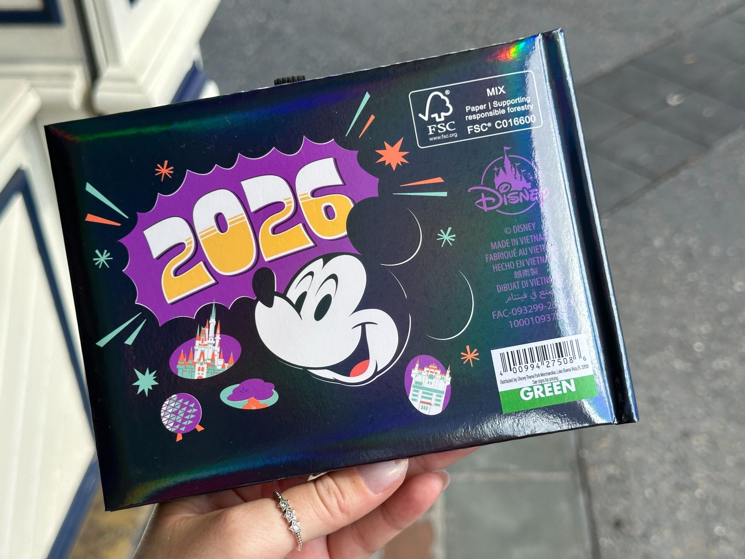 Mickey’s face is on the back cover with “2026” and the icons of each park: Cinderella Castle, Spaceship Earth, Tree of Life, and The Twilight Zone Tower of Terror.