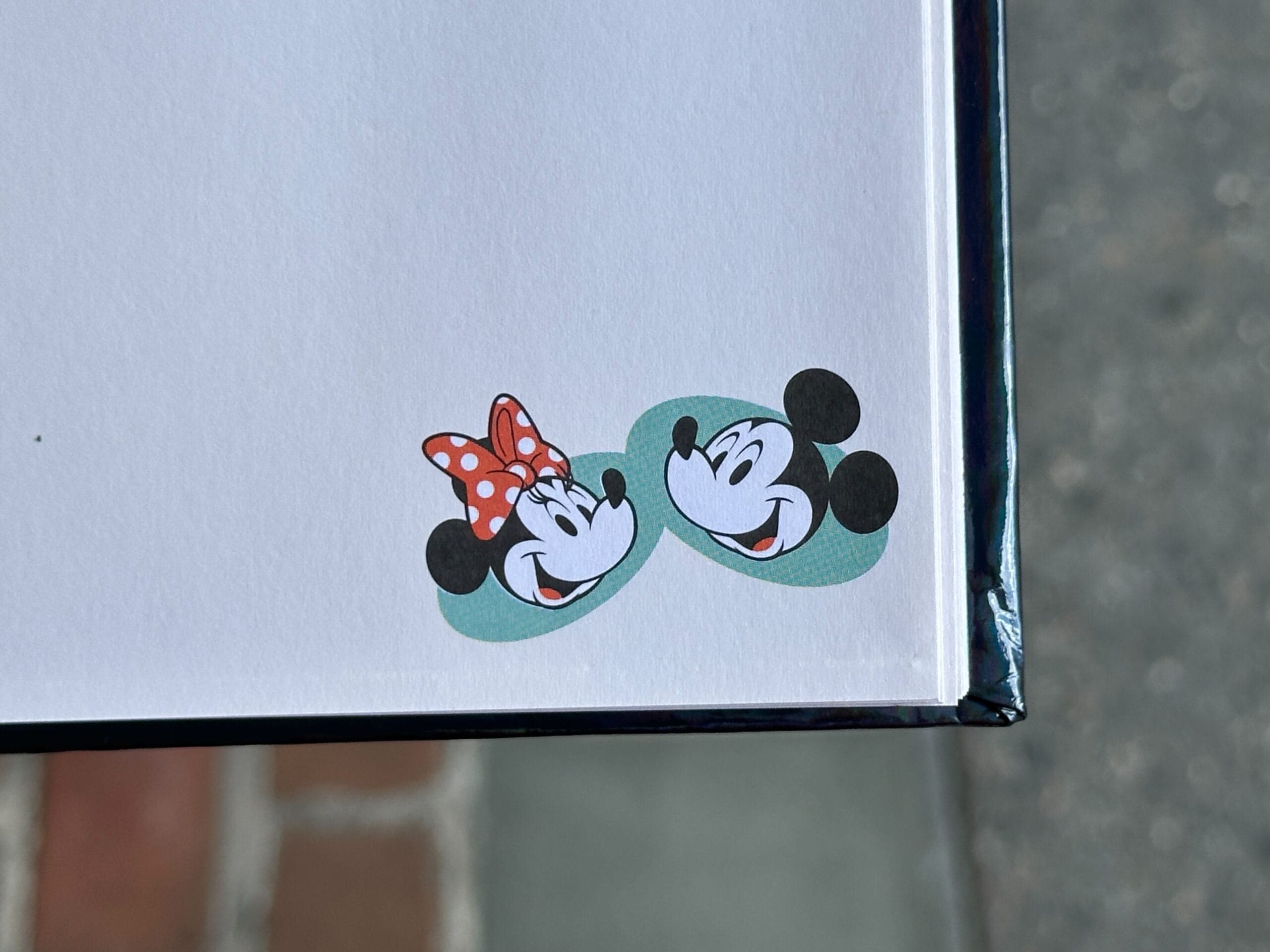On the inside cover is Mickey with a speech bubble that reads, “This book belongs to:” There are lines to write your name and contact information.