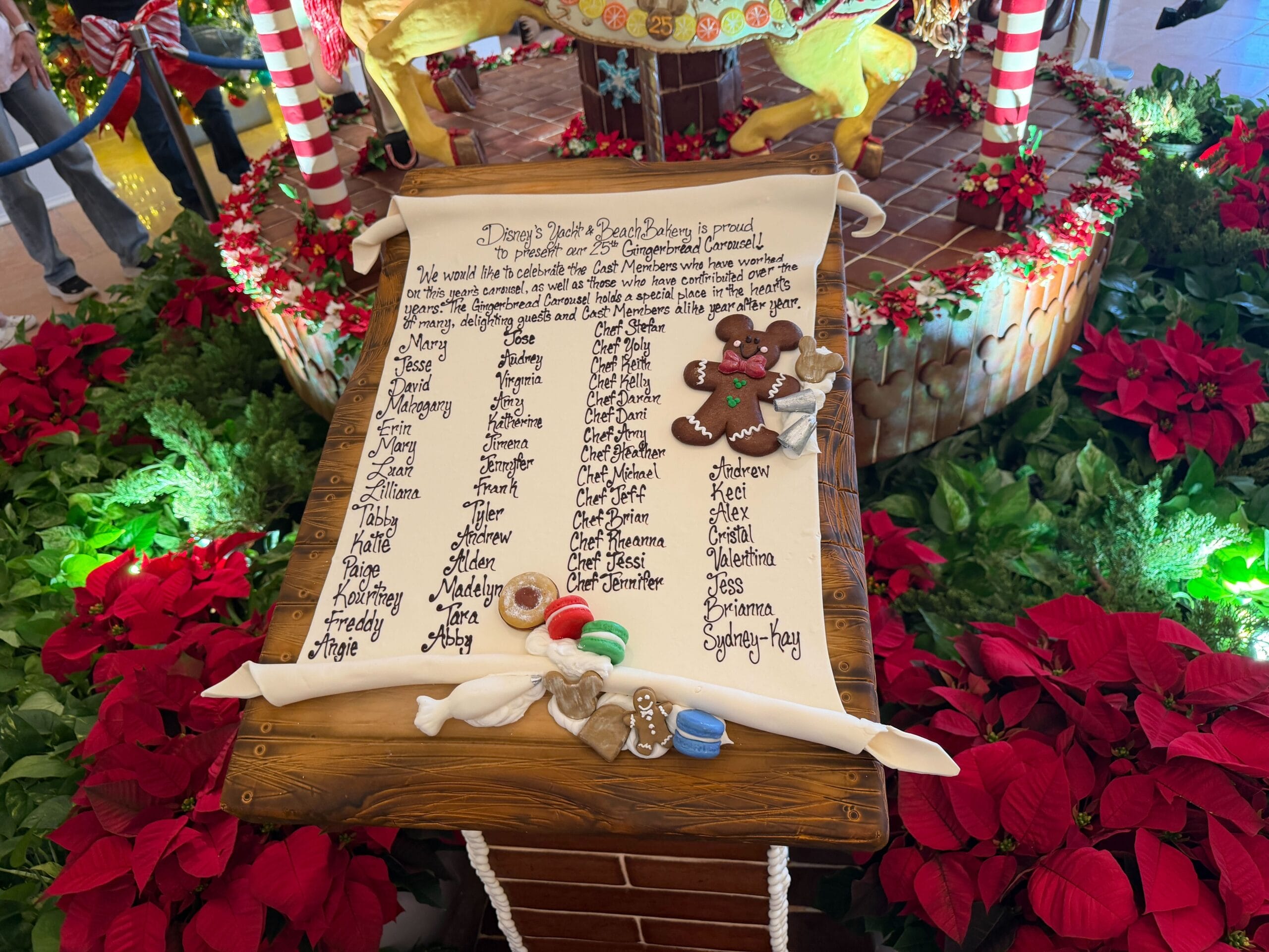 Another pedestal next to the carousel honors the Cast Members who worked on this year’s carousel and past displays.
