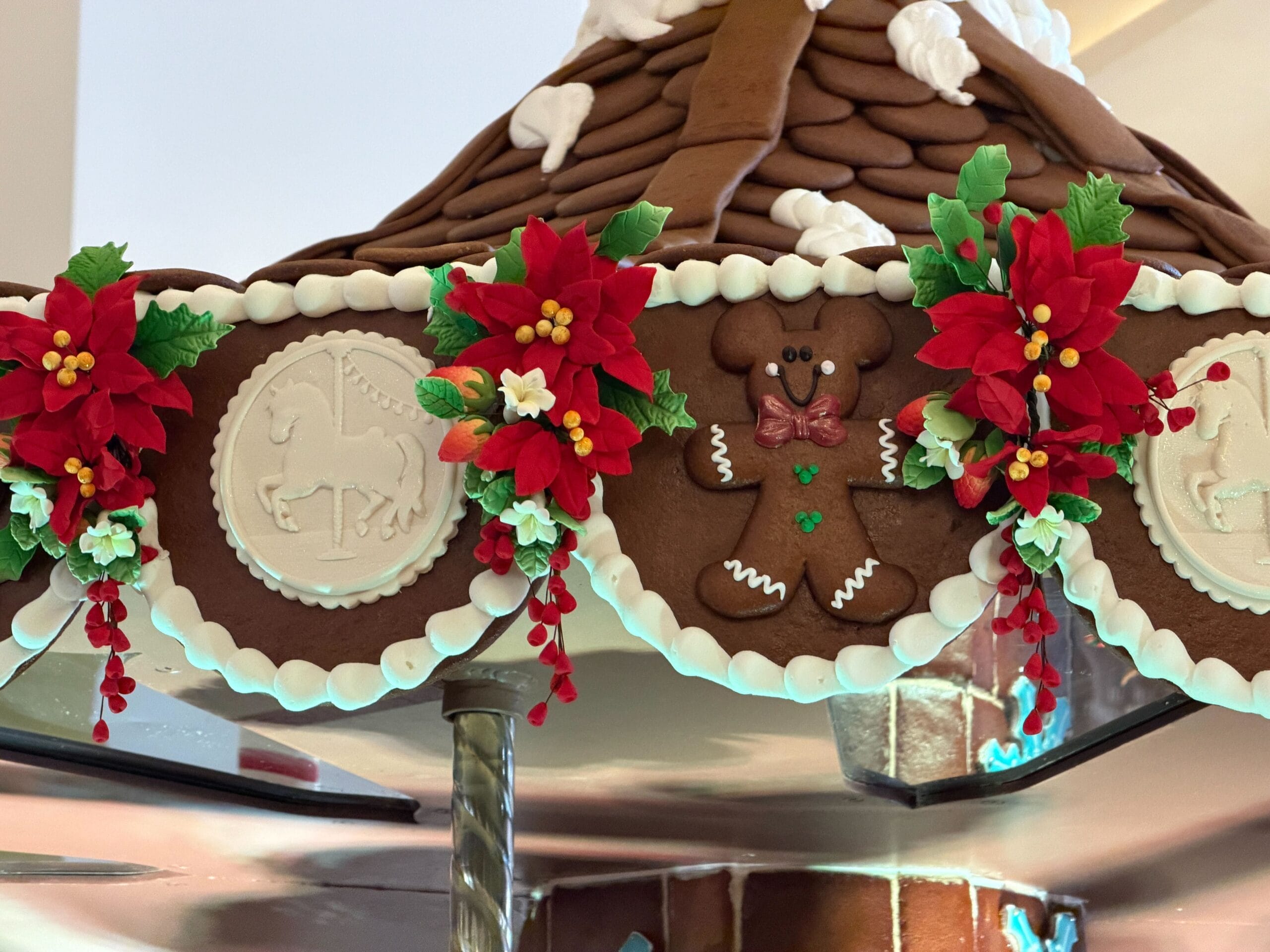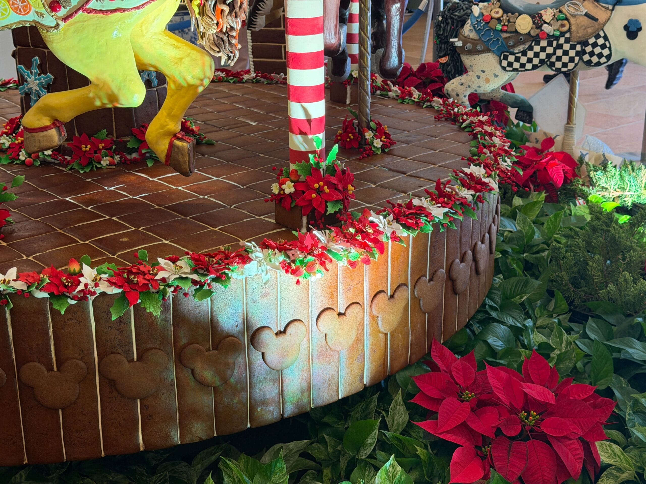 Lining the edge of the roof are Mickey gingerbread men and white carousel horse cookies. The latter are available for purchase at the treats counter (more on that below).
