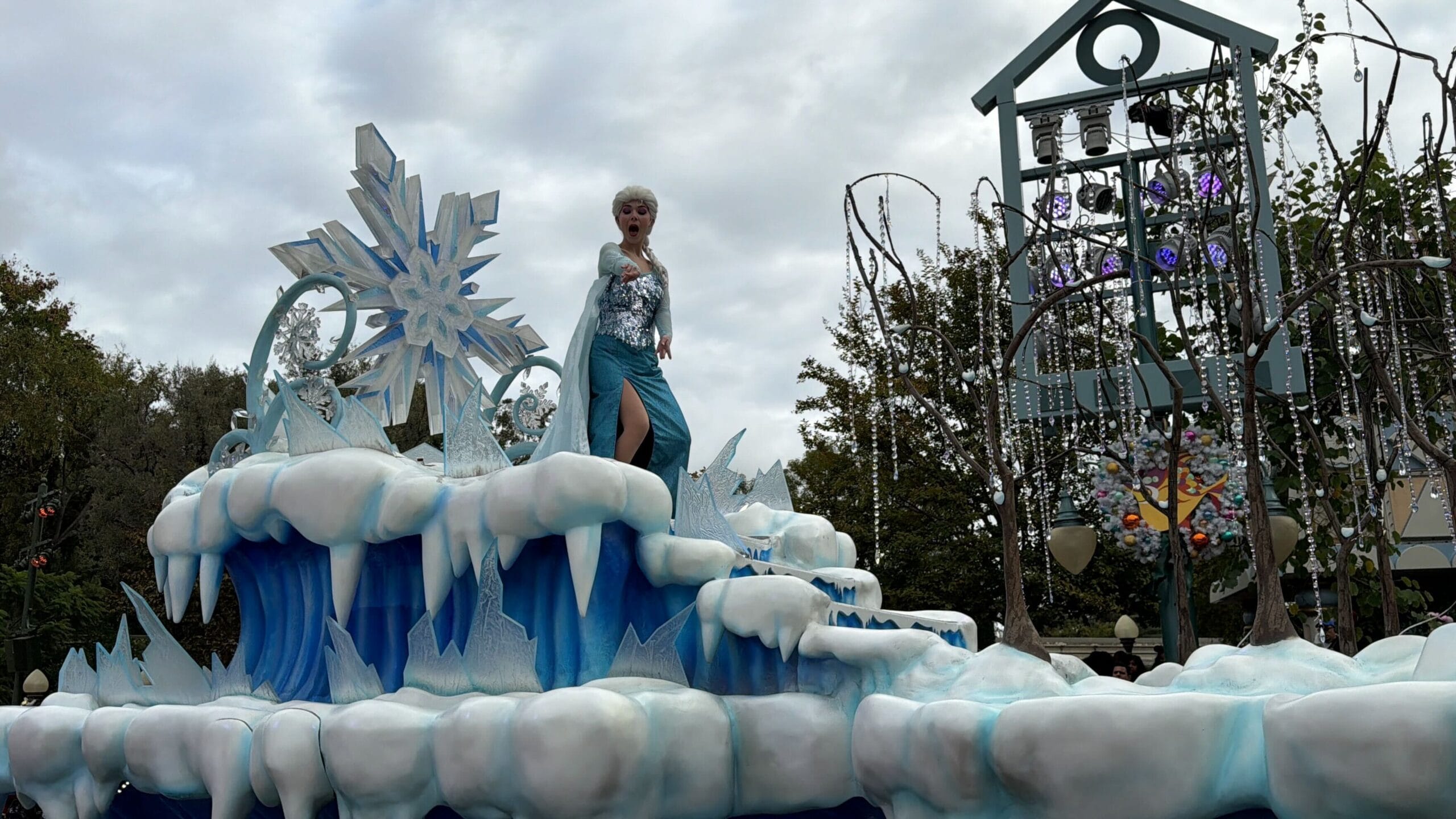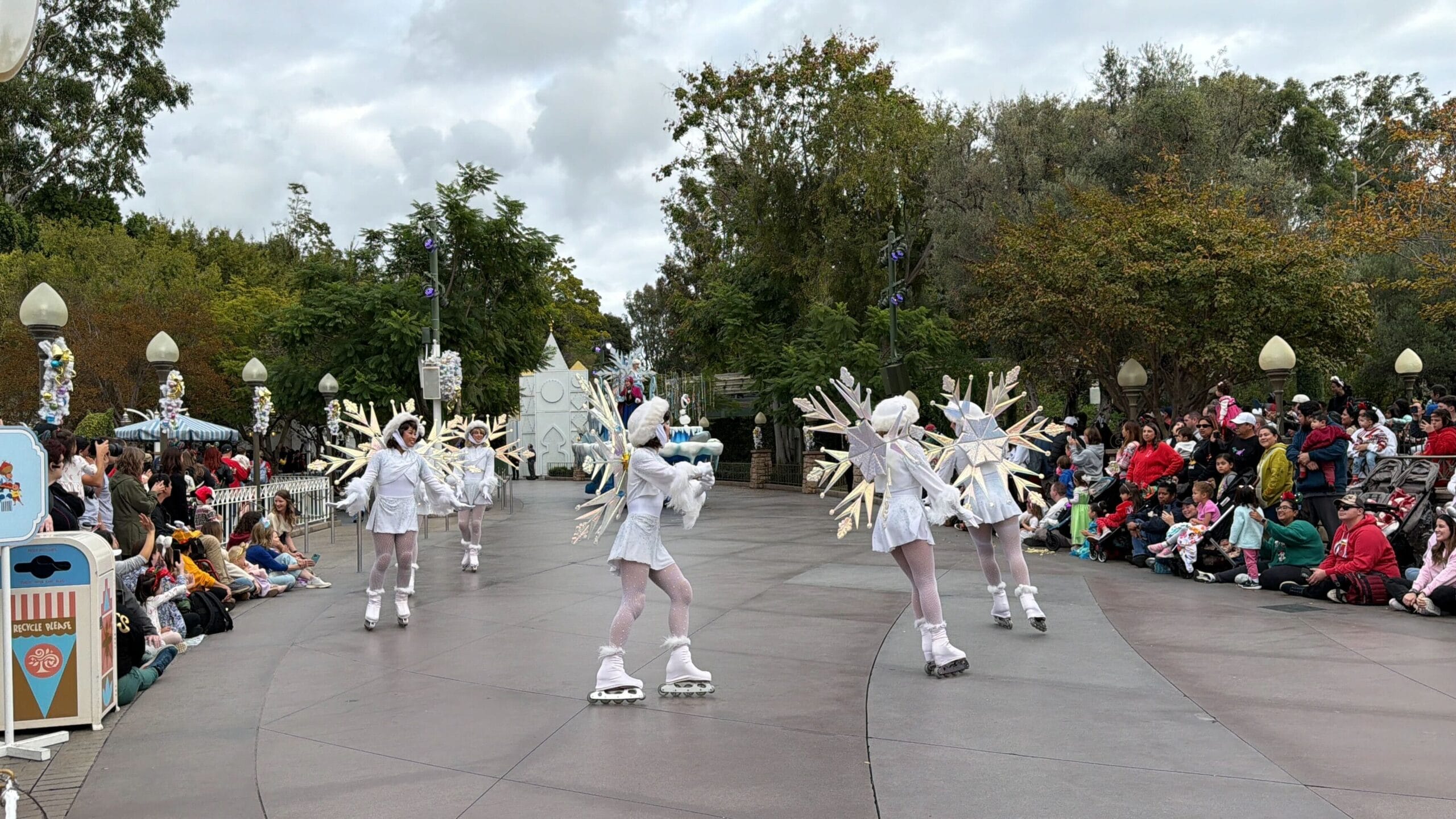 Following the tree are dancing snowflakes who perform their routine on Rollerblades. Fittingly, they precede the Frozen float.