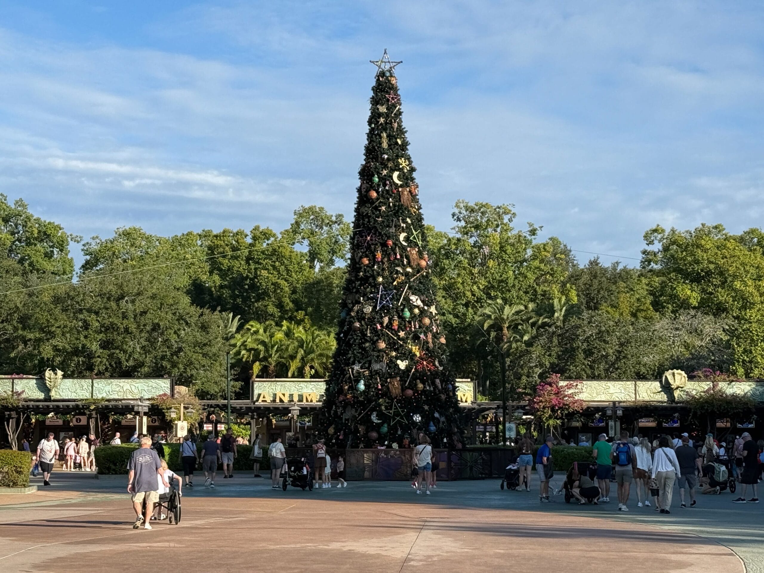 The Christmas tree at the entrance to Animal Kingdom is now in place for the 2025 holiday season.