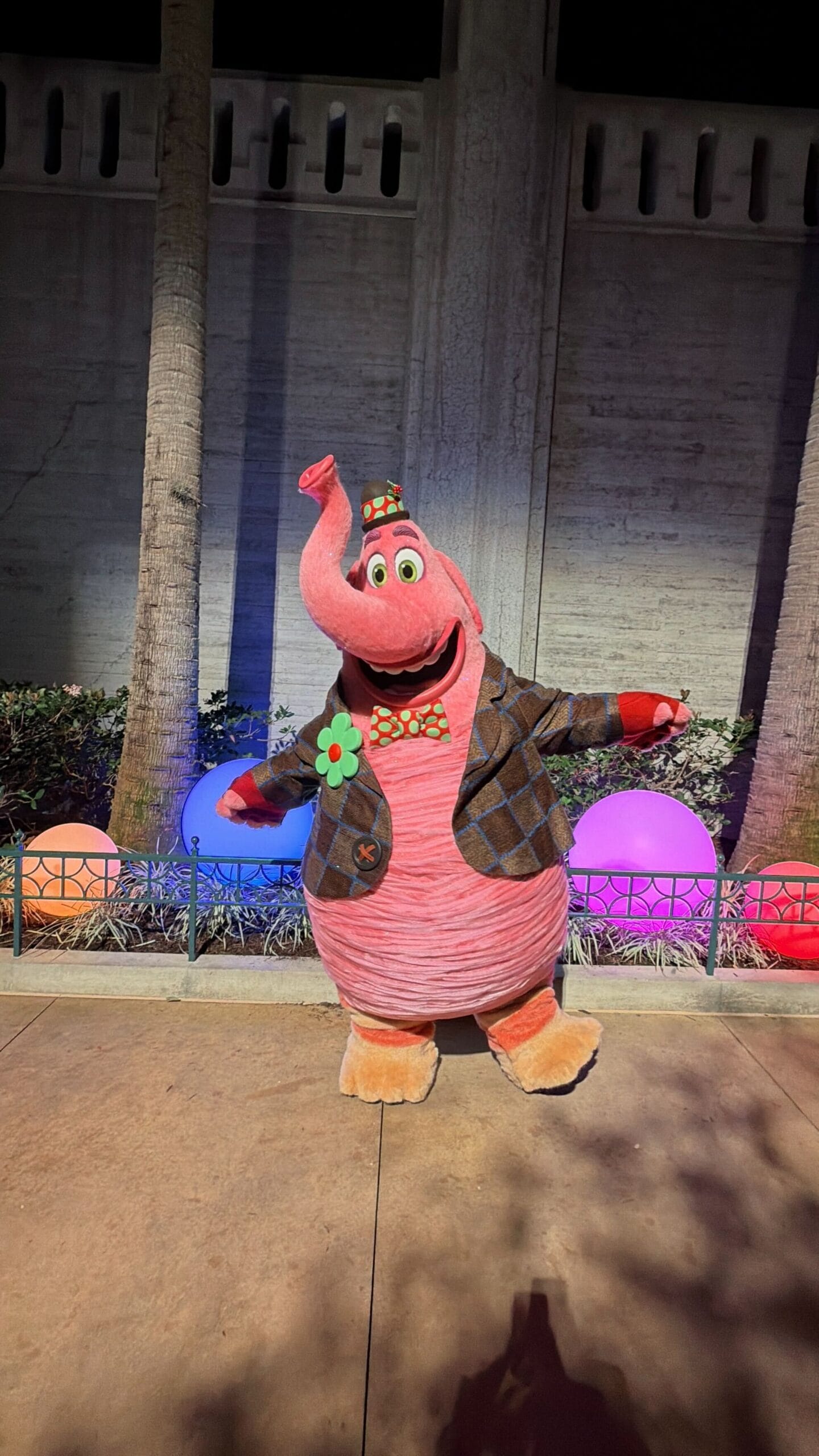 Bing Bong has been exclusively appearing at the Pixar Place Hotel at Disneyland Resort, but he’s making his first Florida parks appearance in Disney’s Hollywood Studios for Jollywood Nights.