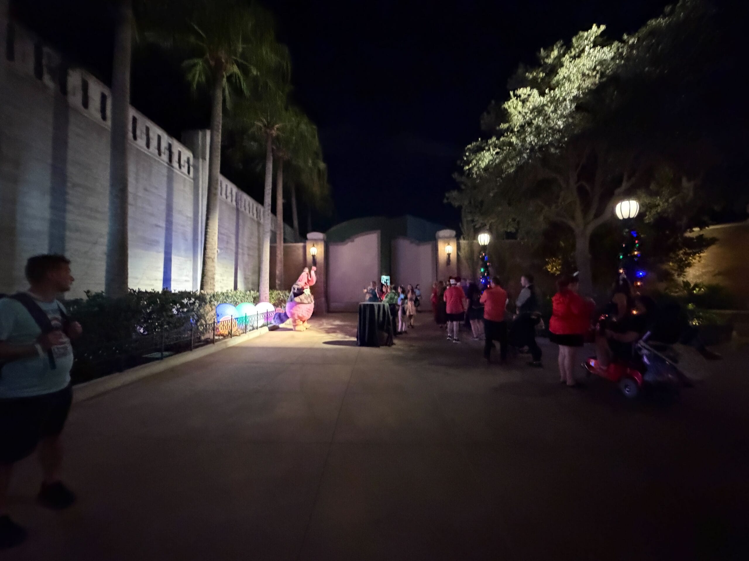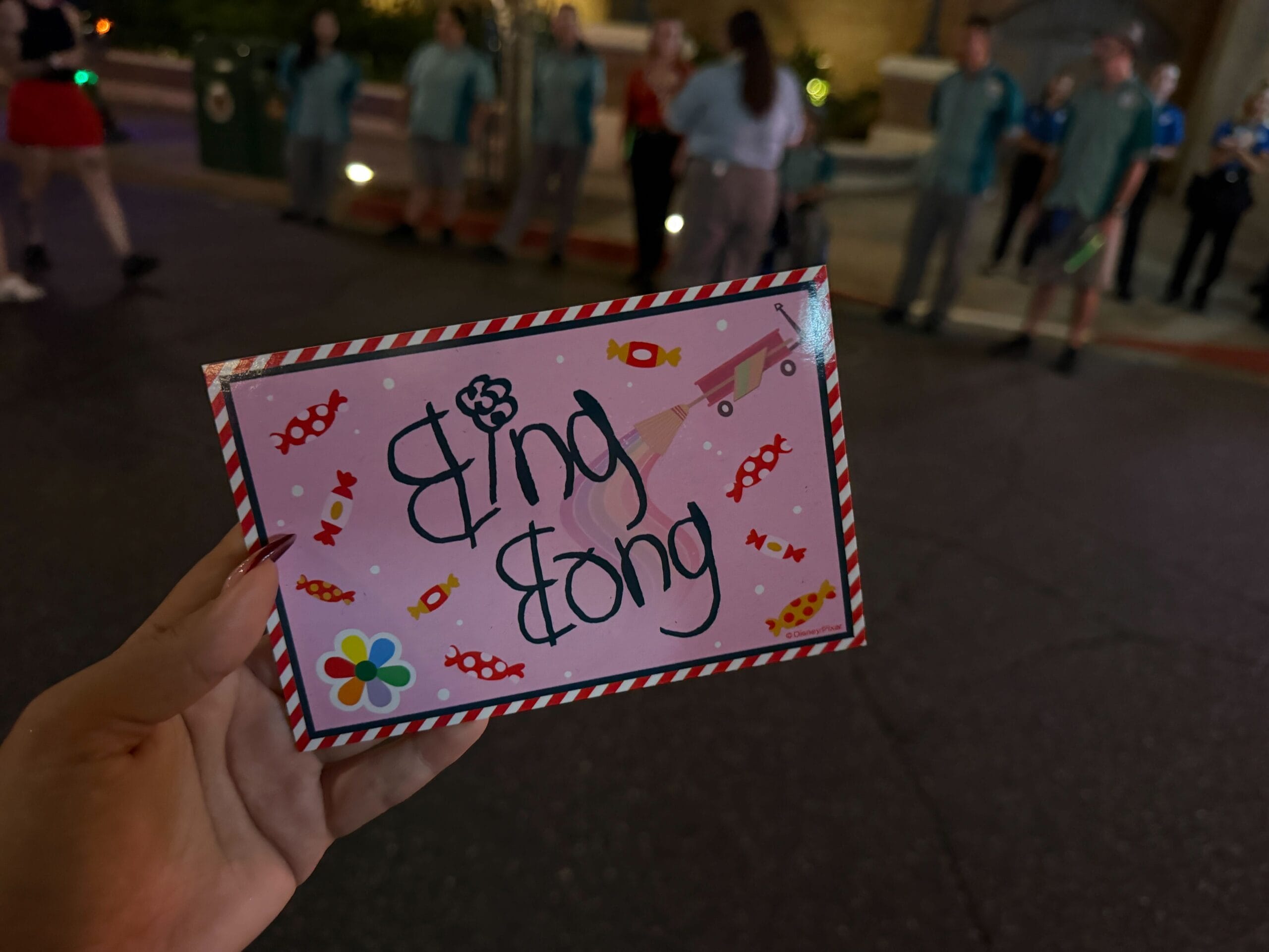 While Bing Bong is not signing autographs, you do receive a special Jollywood Nights autograph card. One side has Bing Bong’s signature printed with candy and his wagon inside a candy cane-striped frame. The flip side is dark blue with the Disney Jollywood Nights and Disney’s Hollywood Studios logos in yellow.