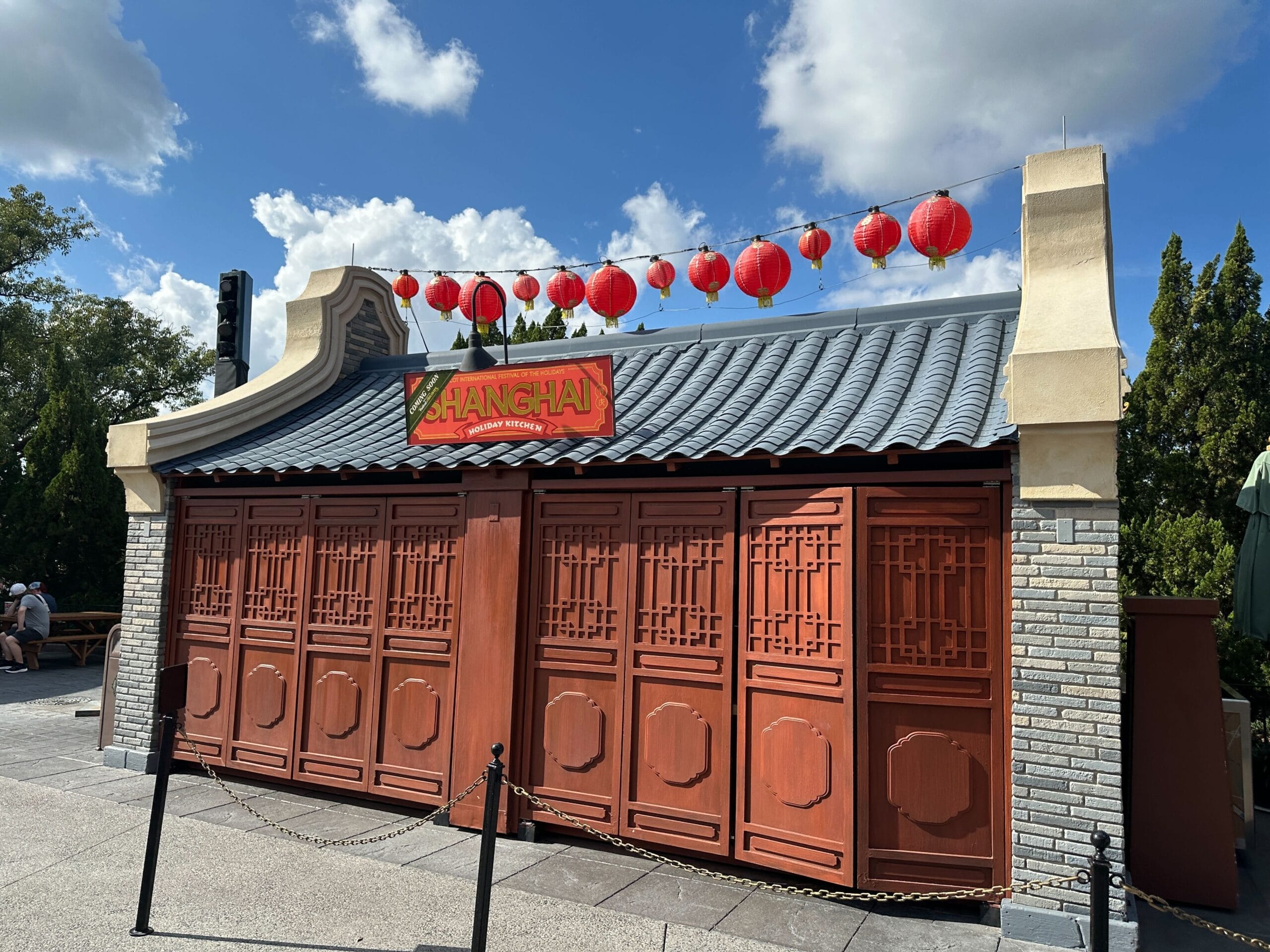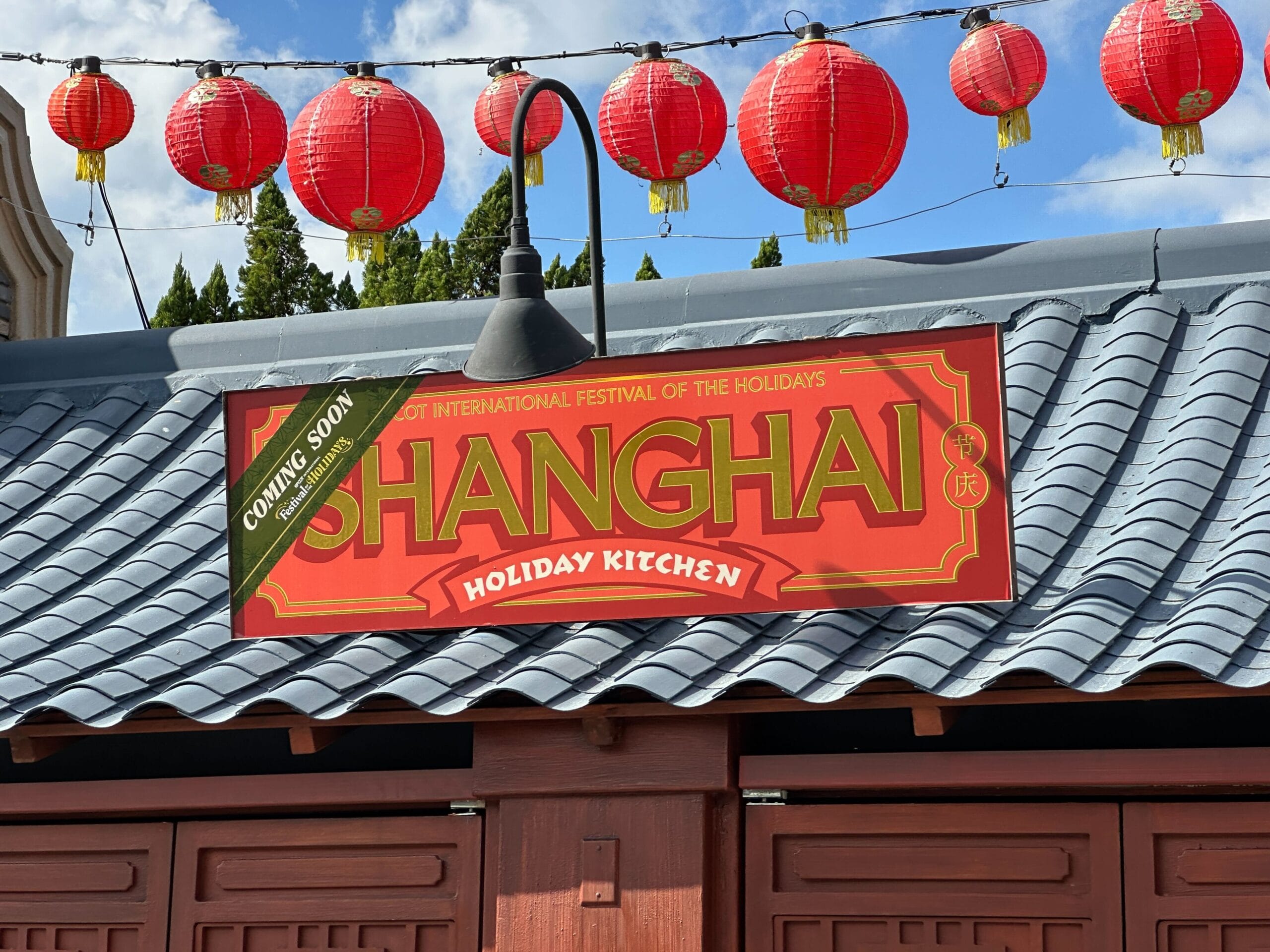 The Shanghai Holiday Kitchen is at the China Pavilion. All the signs have “Coming Soon” banners.