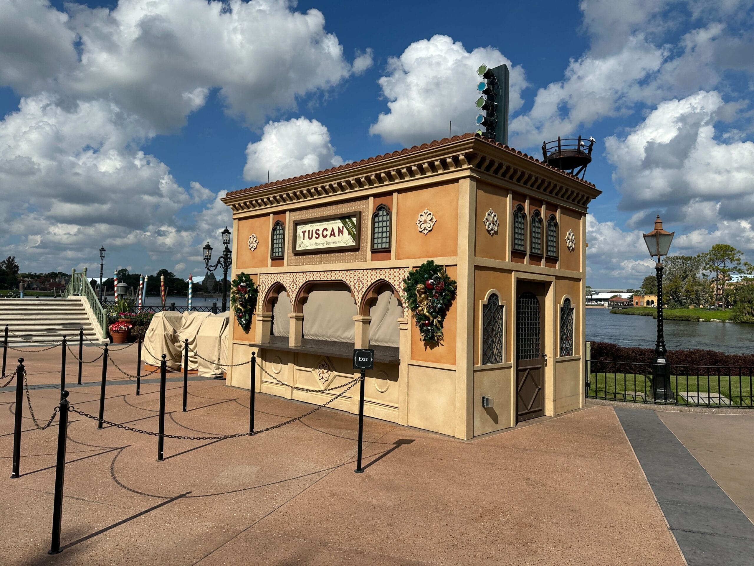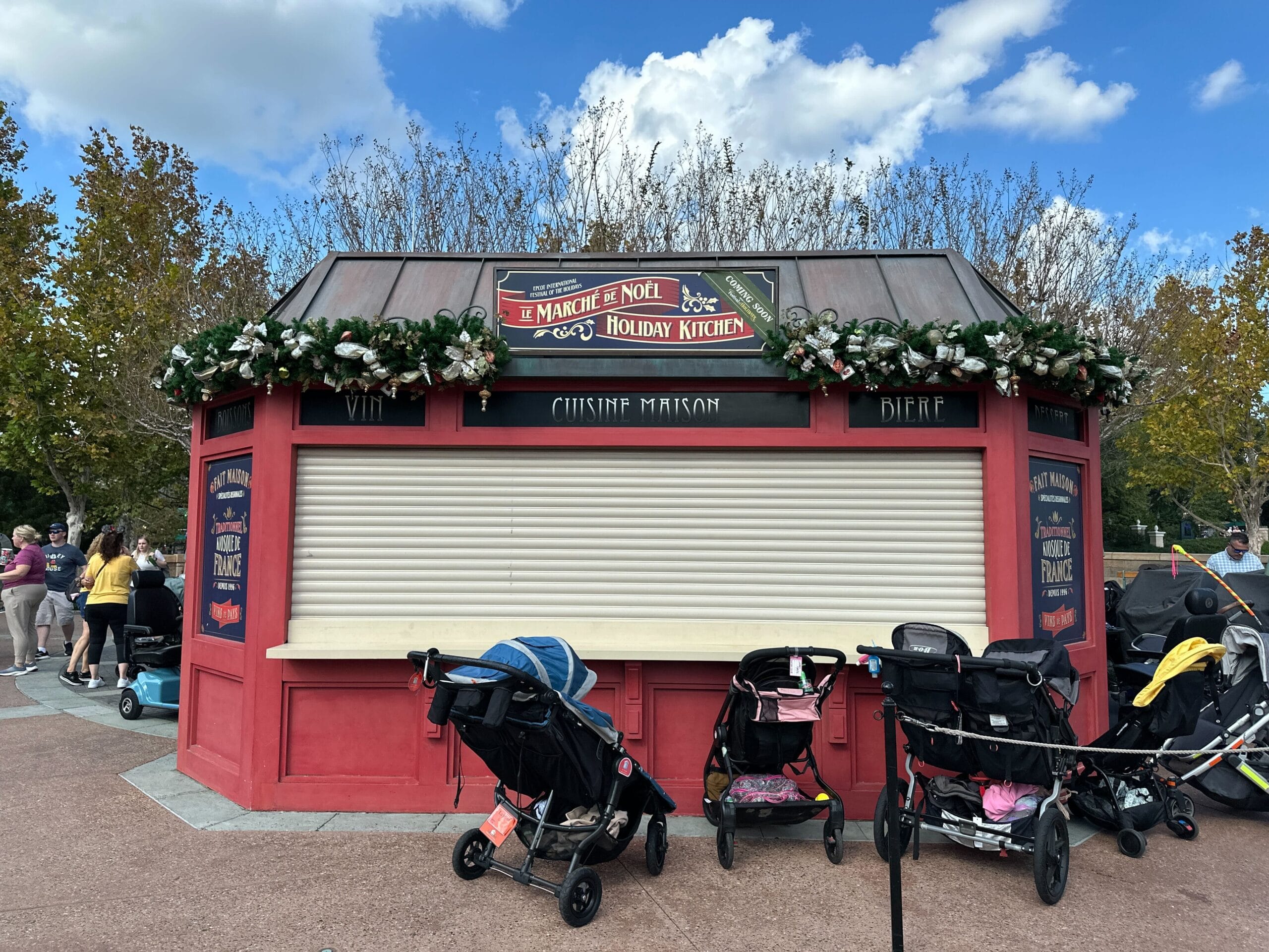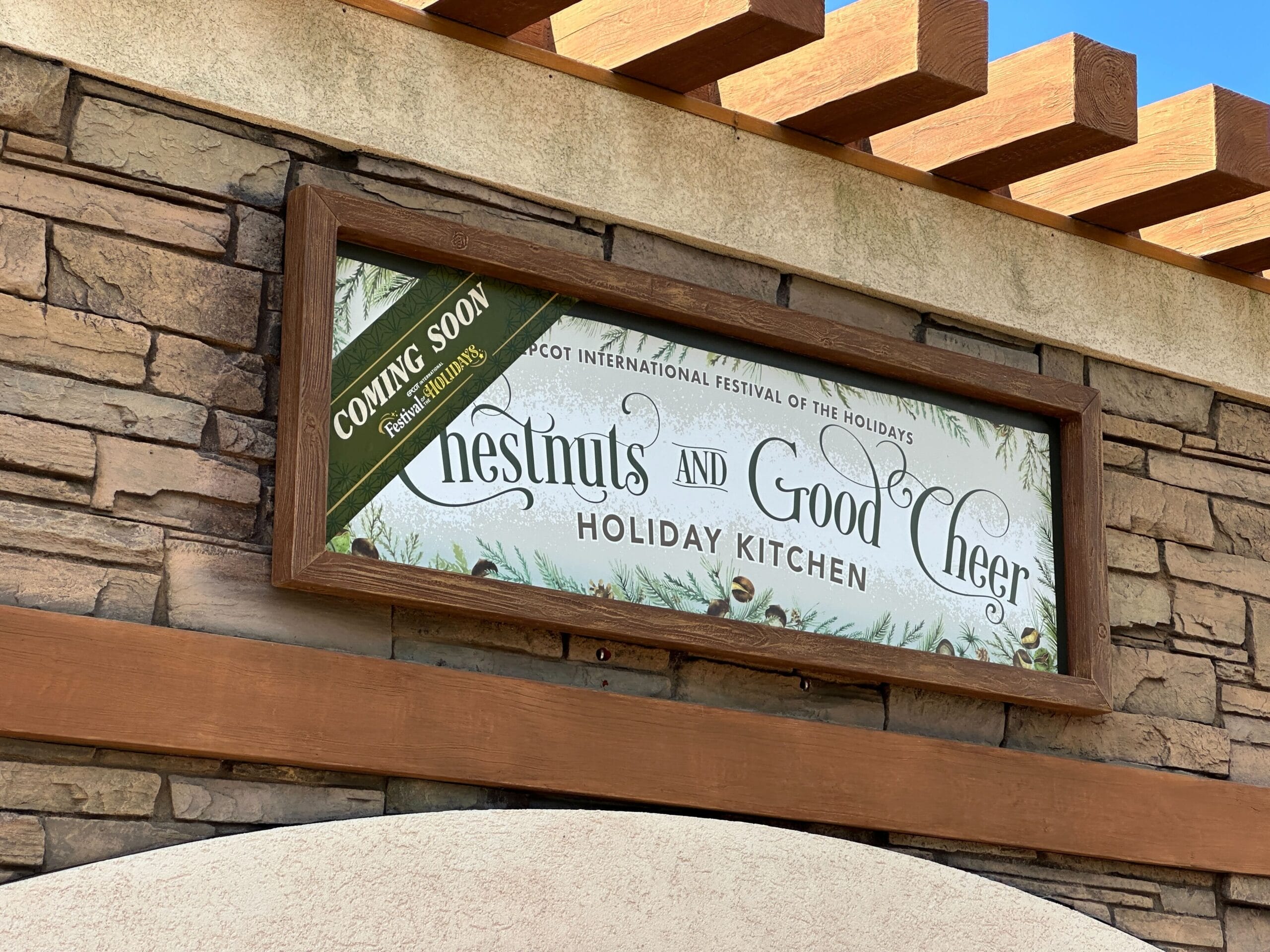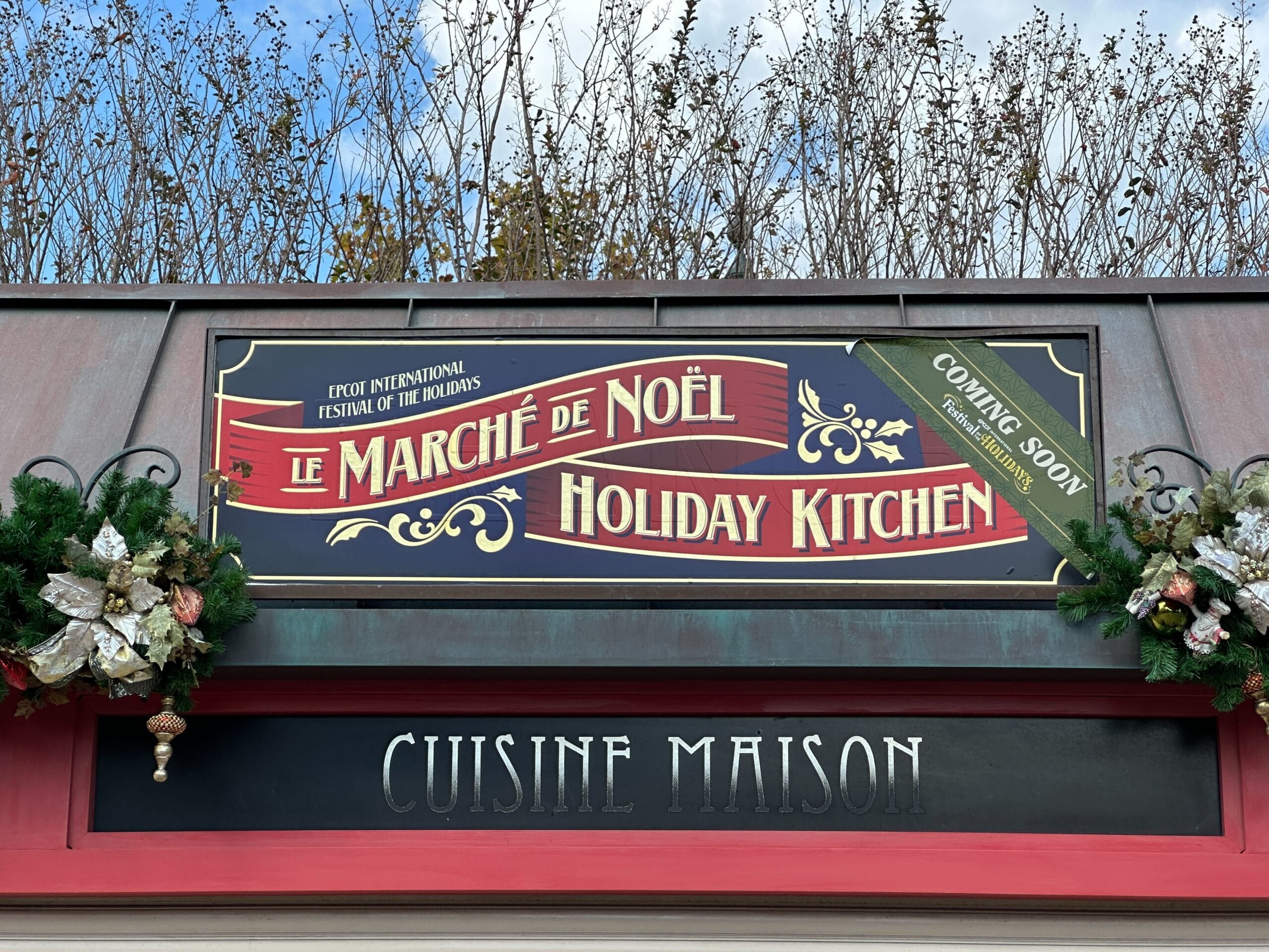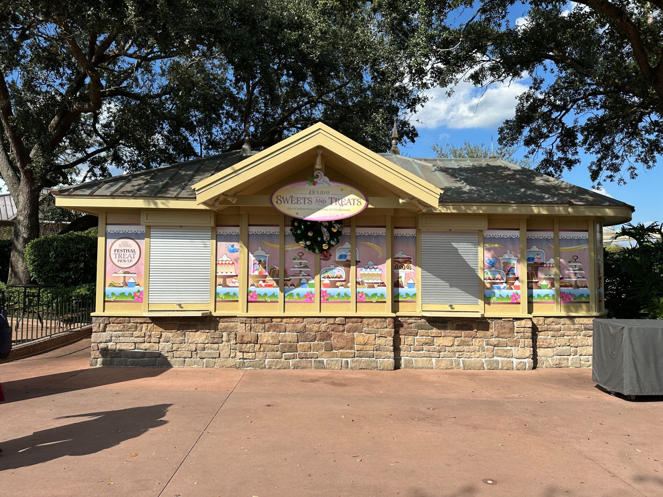 The 2025 EPCOT International Food & Wine Festival has wrapped and the EPCOT International Festival of the Holidays is just a few days away. Food & Wine signs have been removed and holiday signage is starting to go up on booths throughout the park. The booths are mostly reused from one festival to the next, they just get new names and menus.