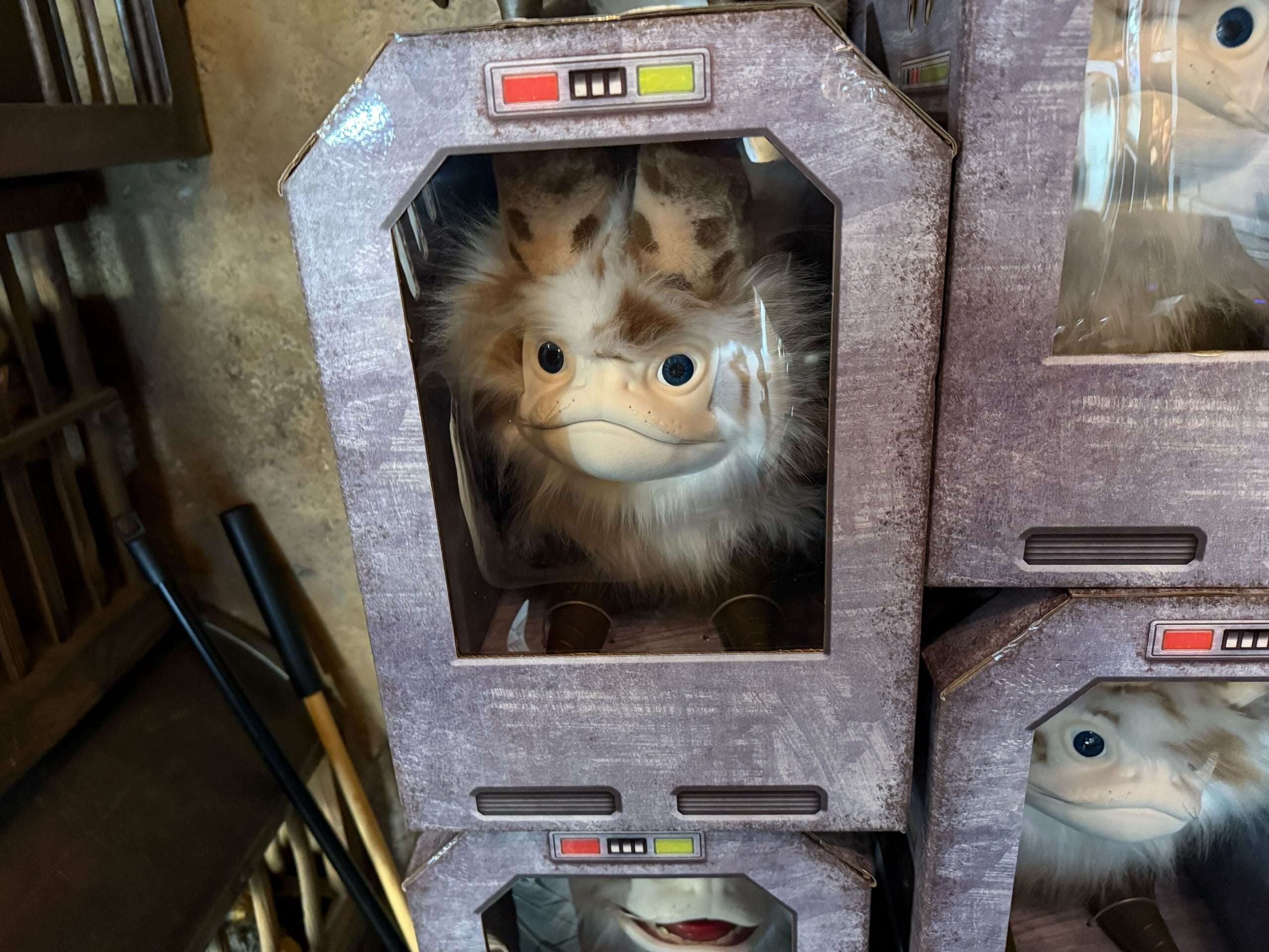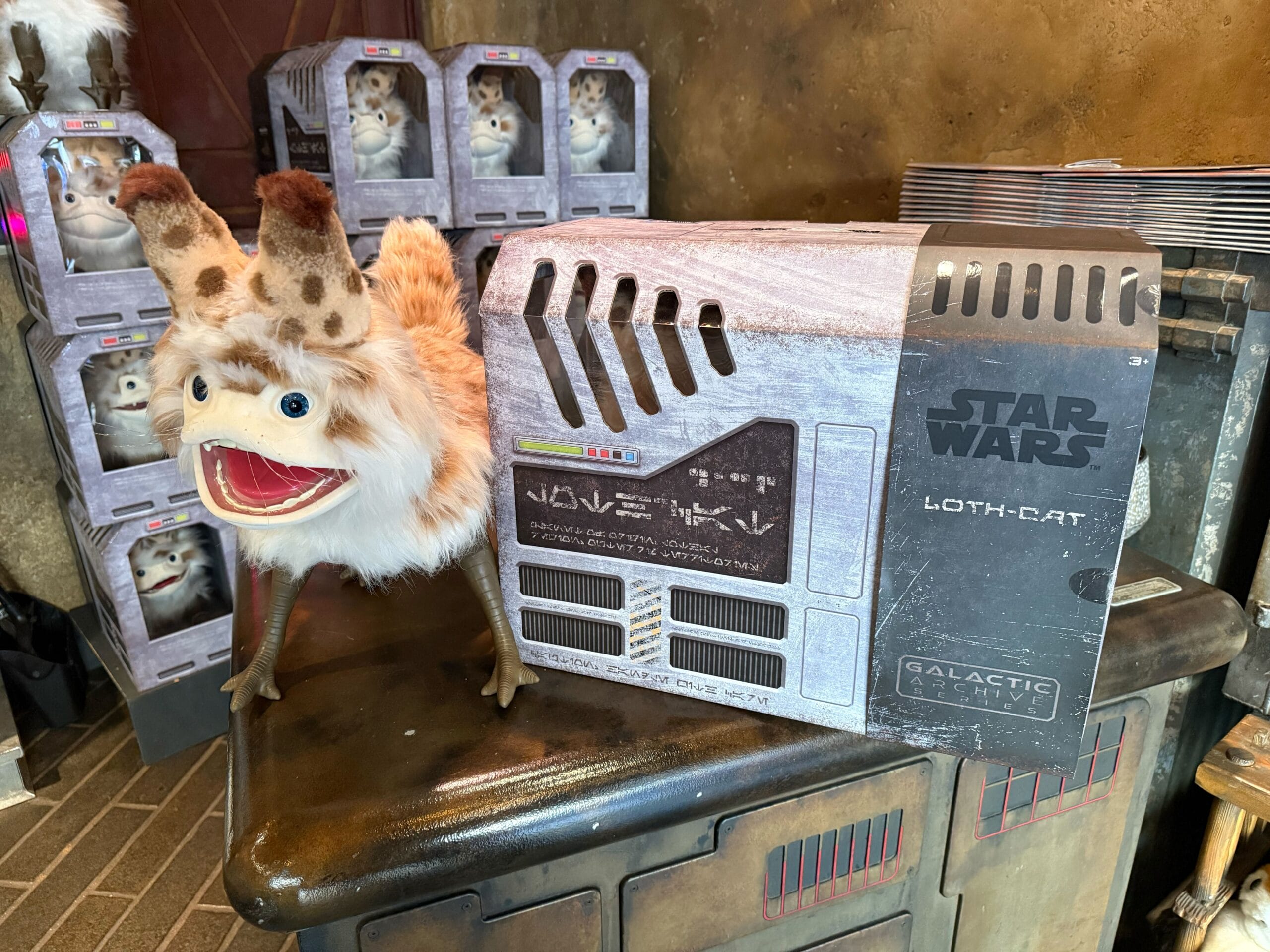 The Black Spire Outpost Market in Star Wars: Galaxy’s Edge in Disneyland has some new wares. A new Loth Cat figure is available from Creature Stall, while Toydarian Toymaker has Hera and Sabine plush, and bounty hunter nesting dolls.