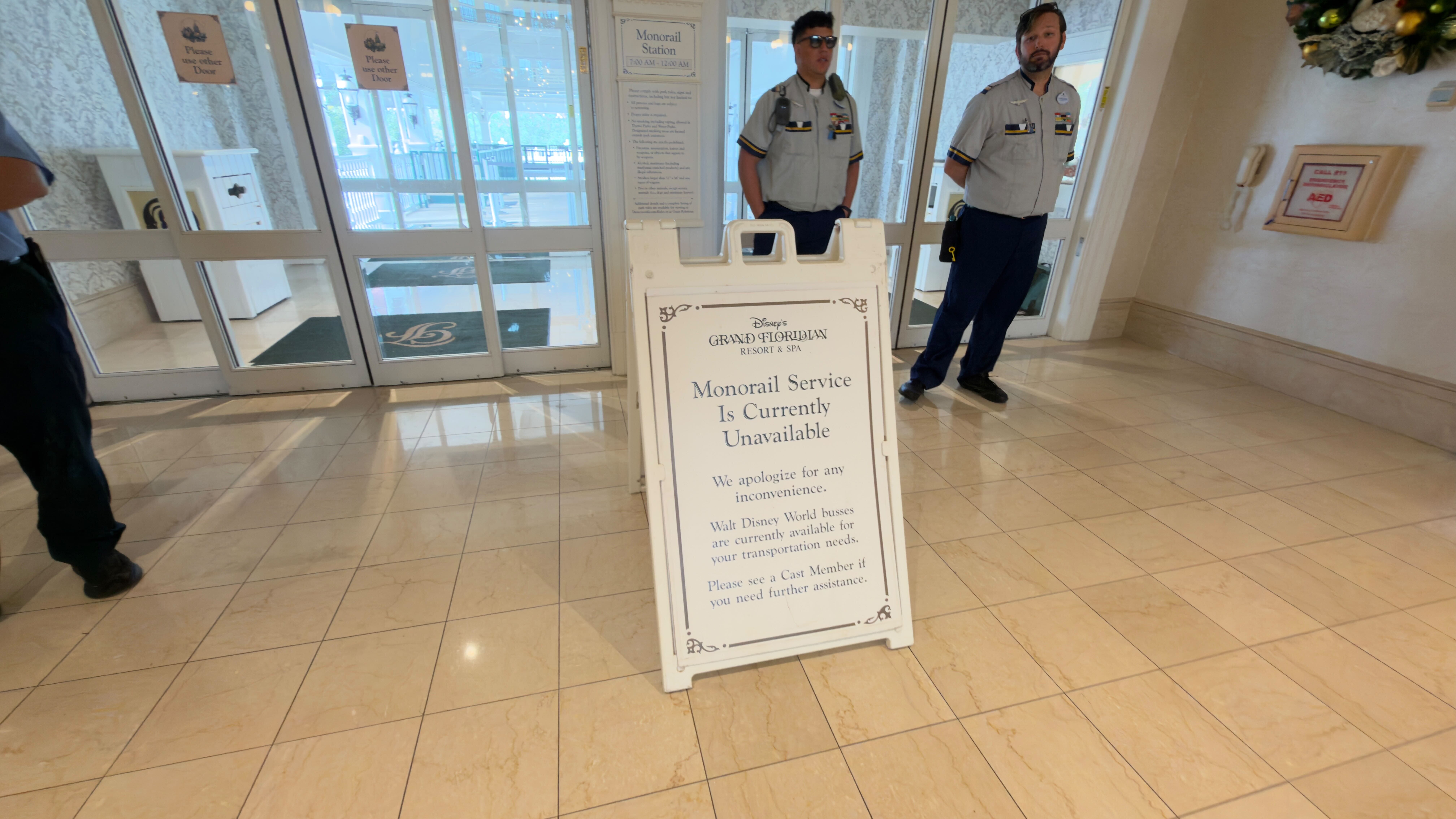As of 11:45am ET, the Walt Disney World monorail service remained unavailable. Cast Members and signs were posted at the entrance to the monorail station at the Grand Floridian Resort.