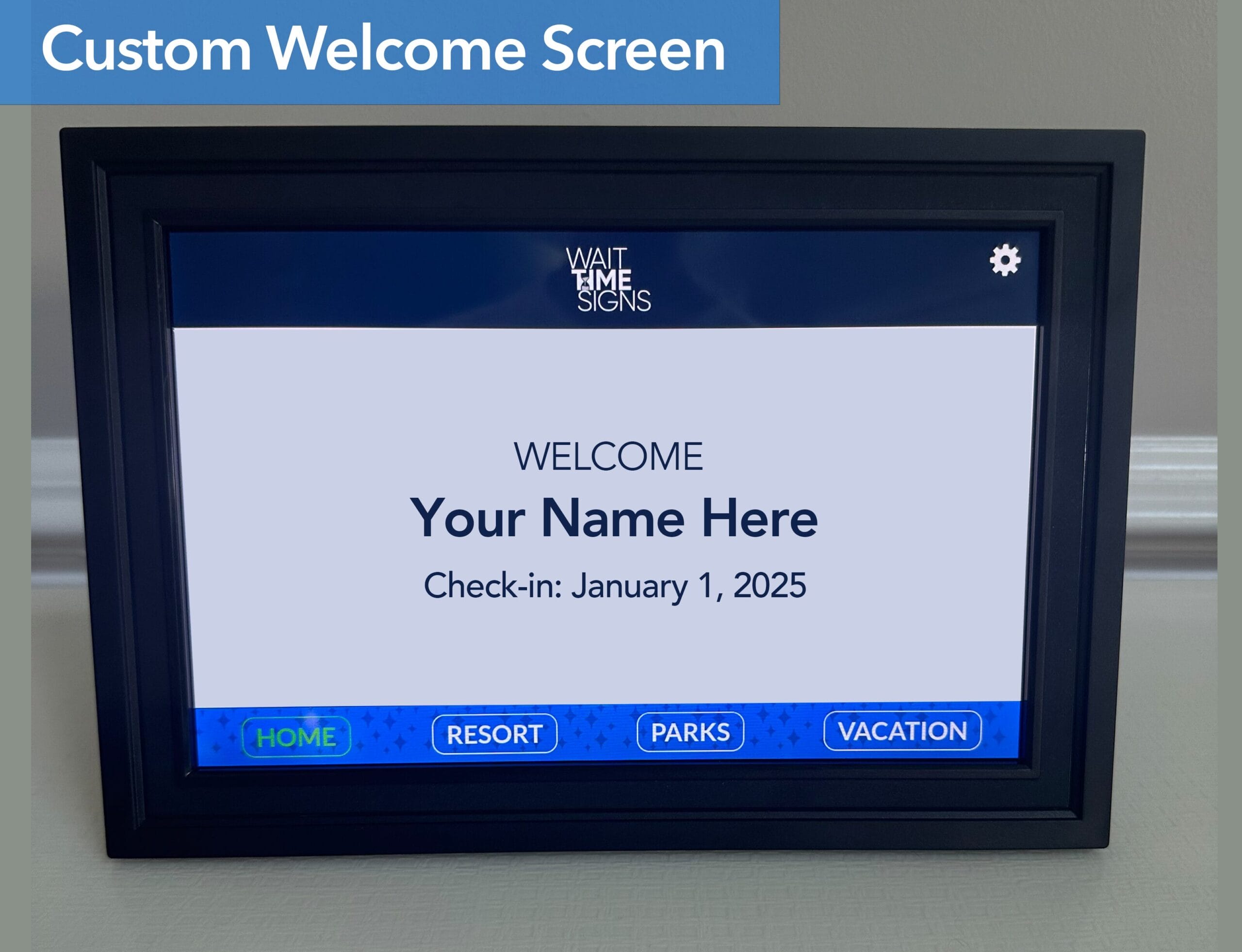 Thanks to the folks behind Wait Time Signs, you can bring the enchantment of your last Disney trip right into your home! The touchscreen interactive Wait Time Display is perfect for your desk, countertop, or anywhere you need a sprinkle of Disney magic. This 11-inch display will transport you back to the comforting feeling of seeing park hours on your resort TV.