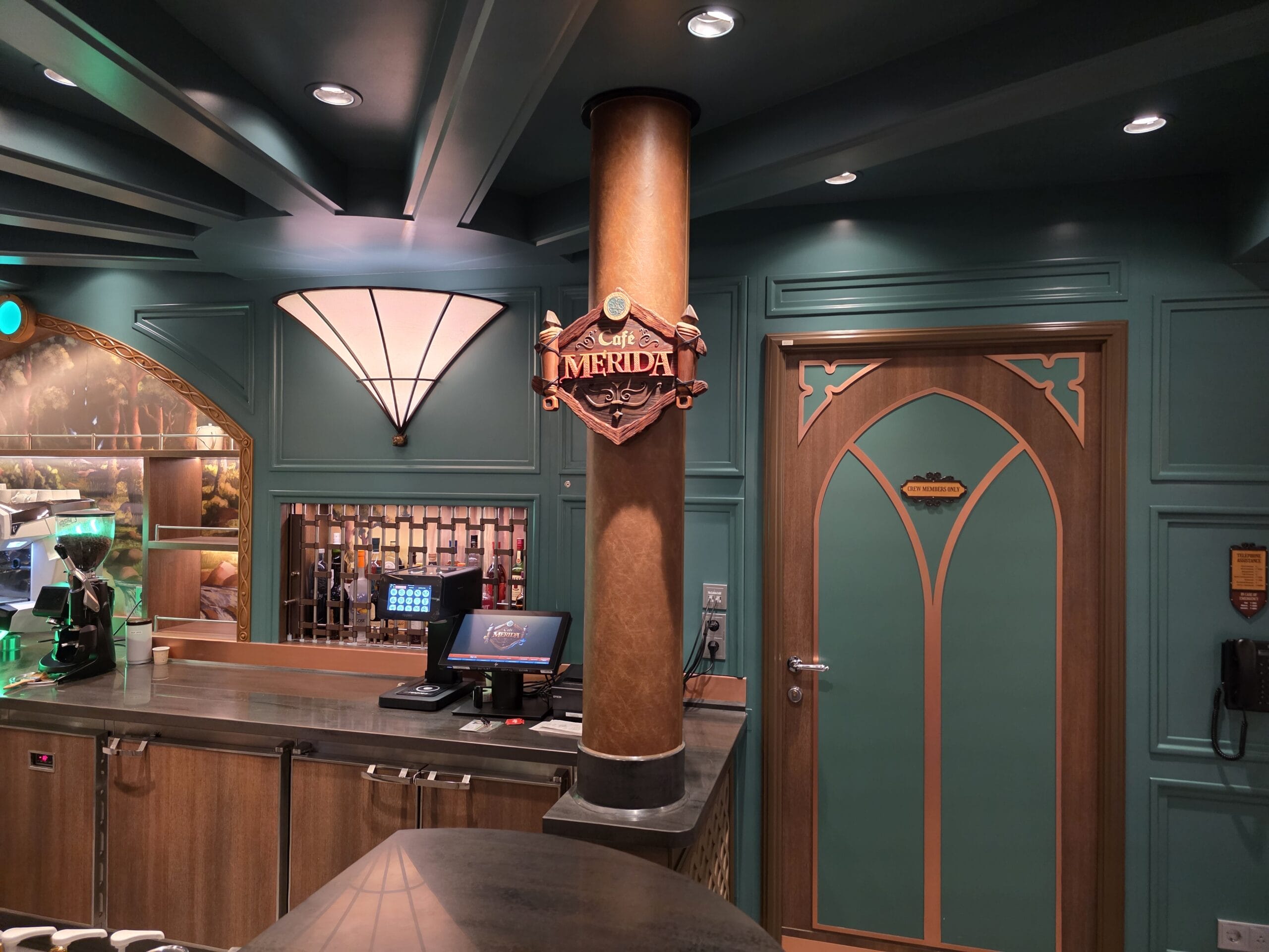 The Disney Destiny has two specialty walkup coffee shops onboard themed to leading ladies, one of which features Merida from Brave. Café Merida serves coffee, tea, specialty beverages and snacks.