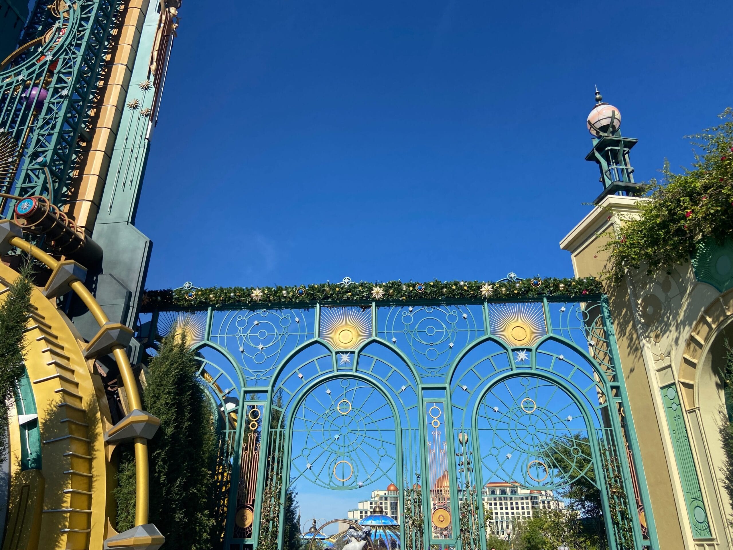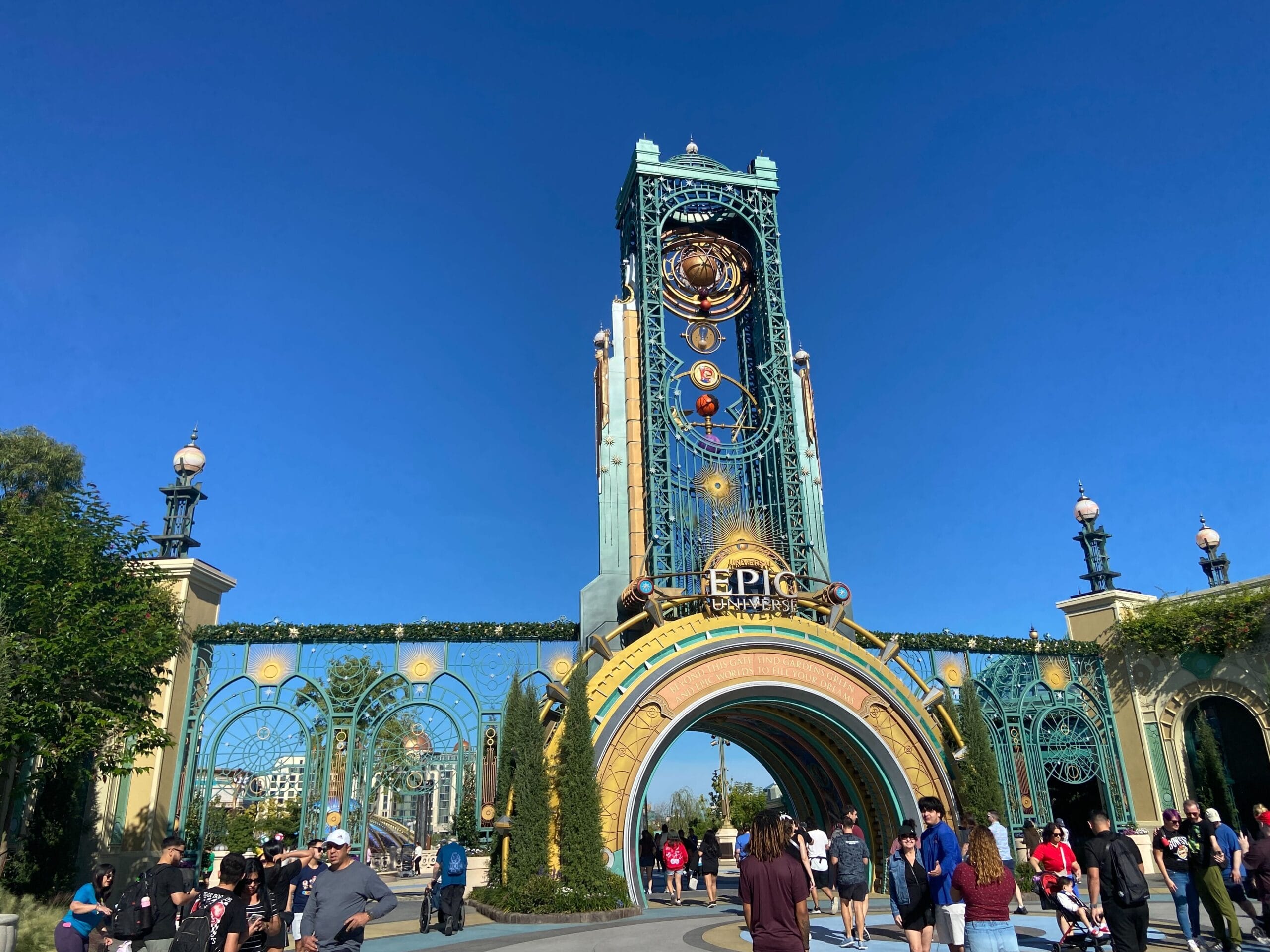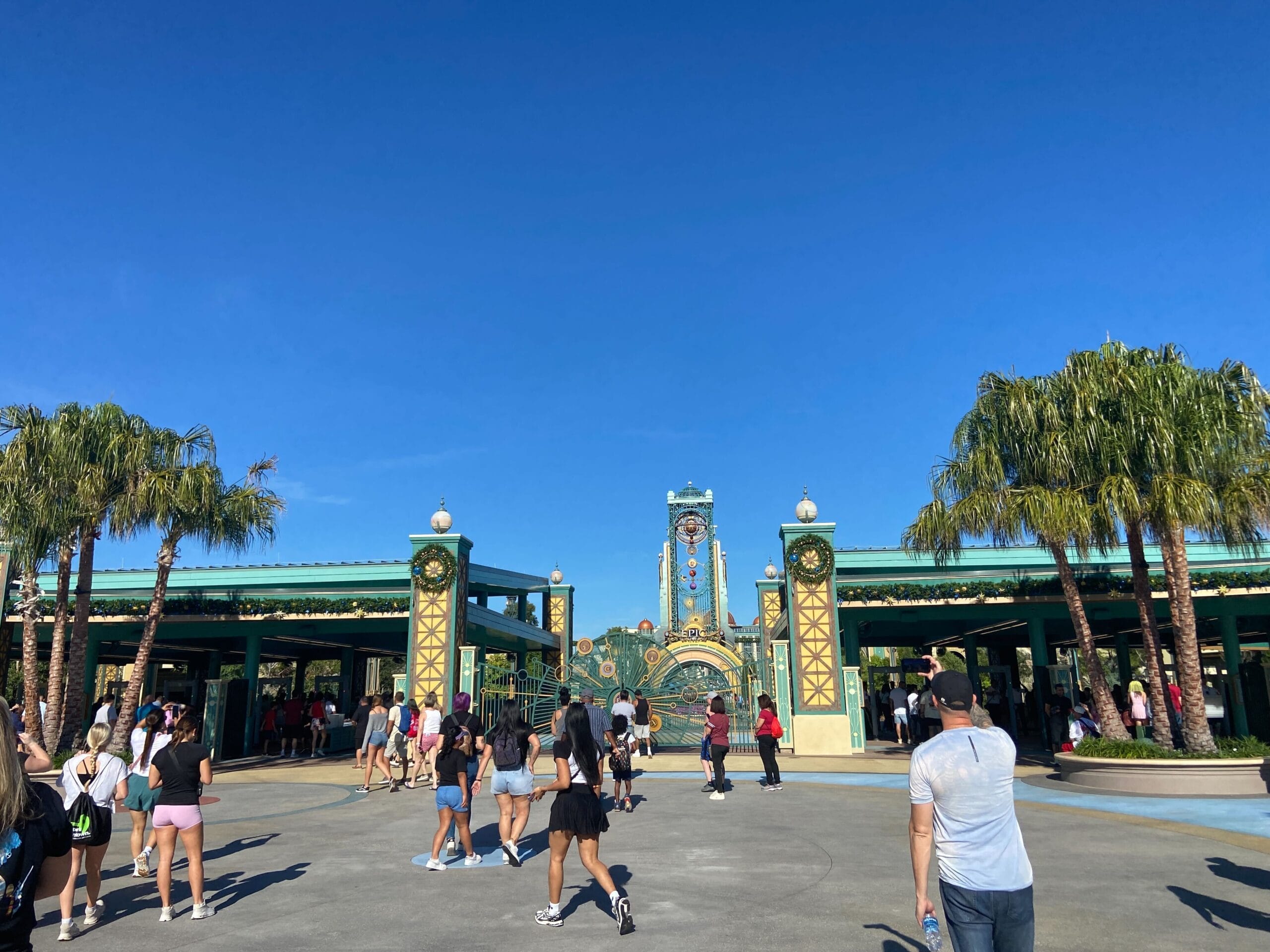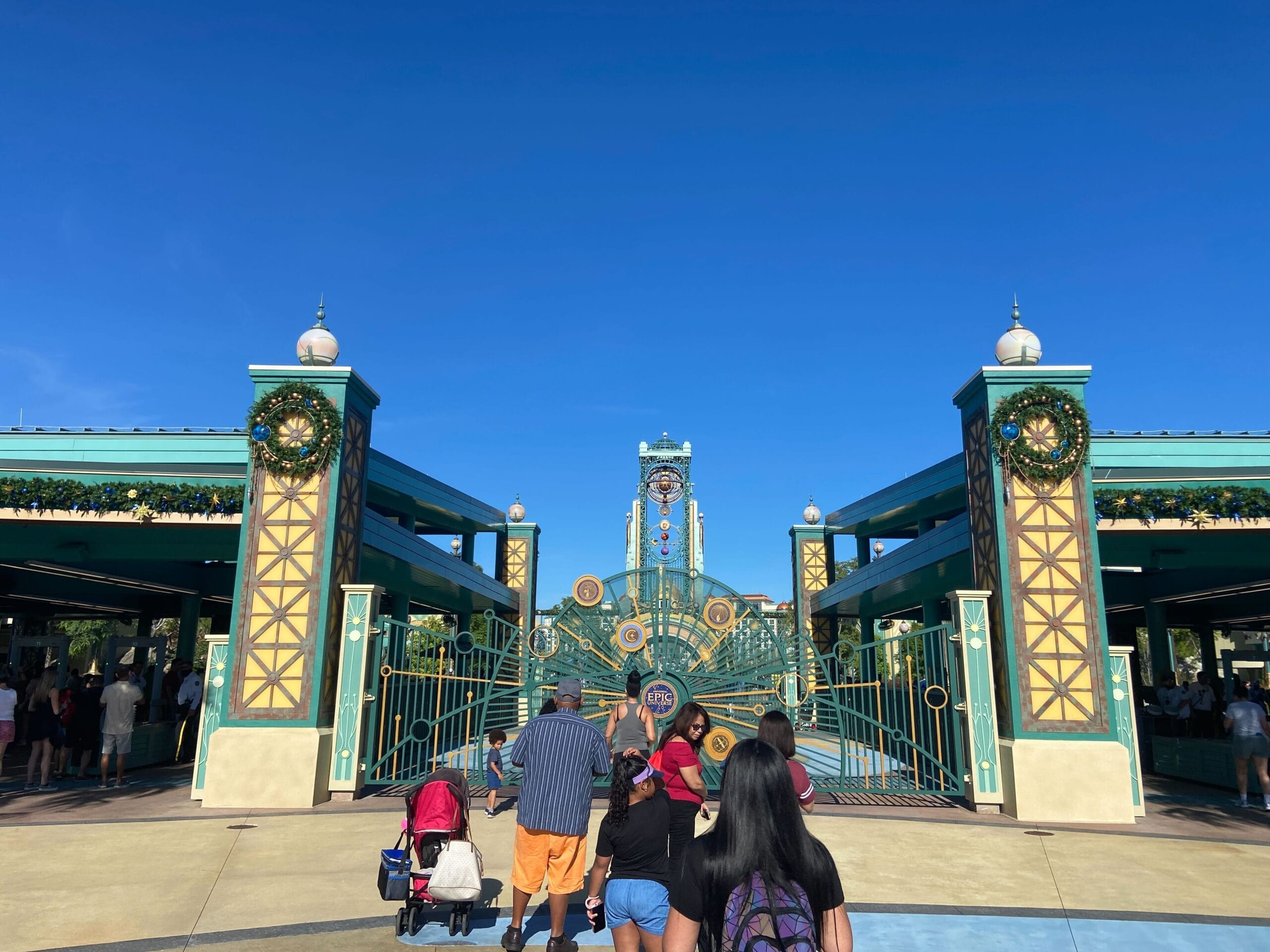 The decorations begin before ever stepping foot into Celestial Park proper, at the entrance to Epic Universe.