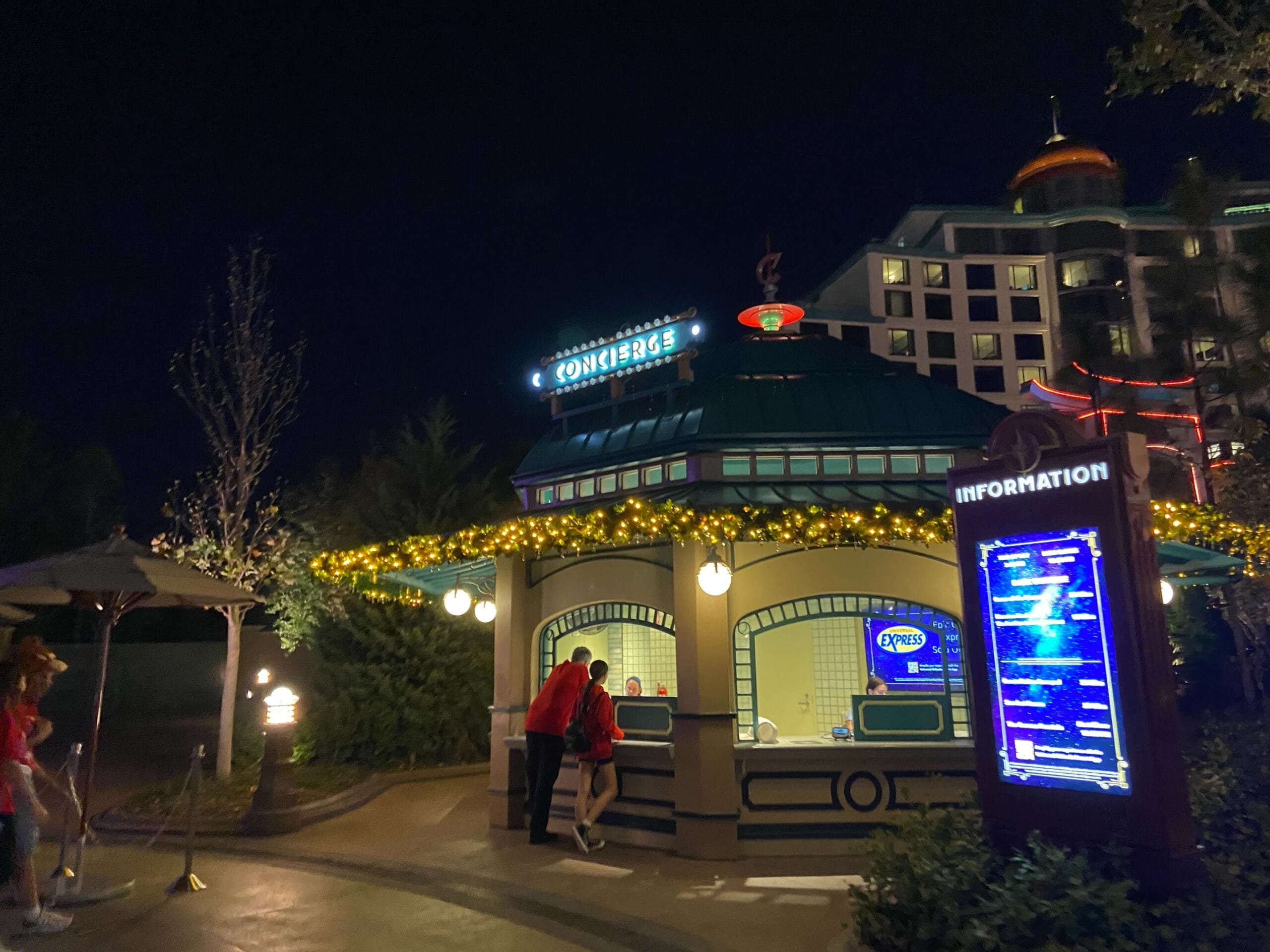 Frosty Moon, CelesTiki, and the concierge kiosks also have lighted garland.