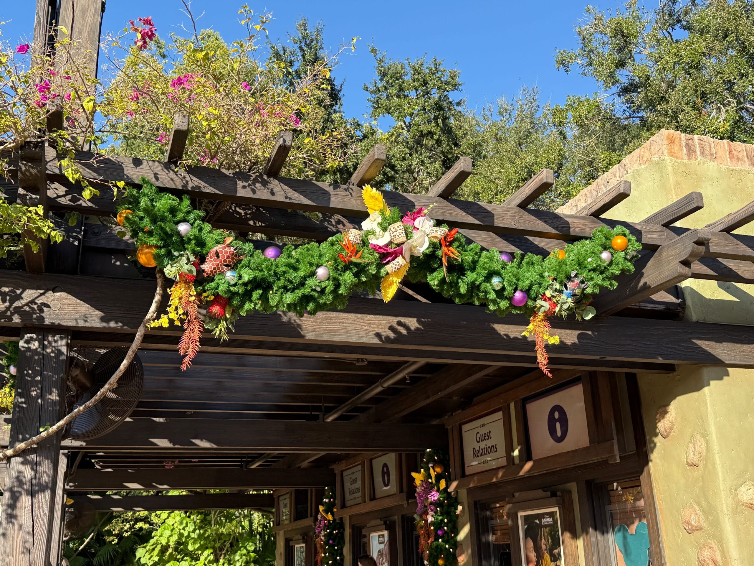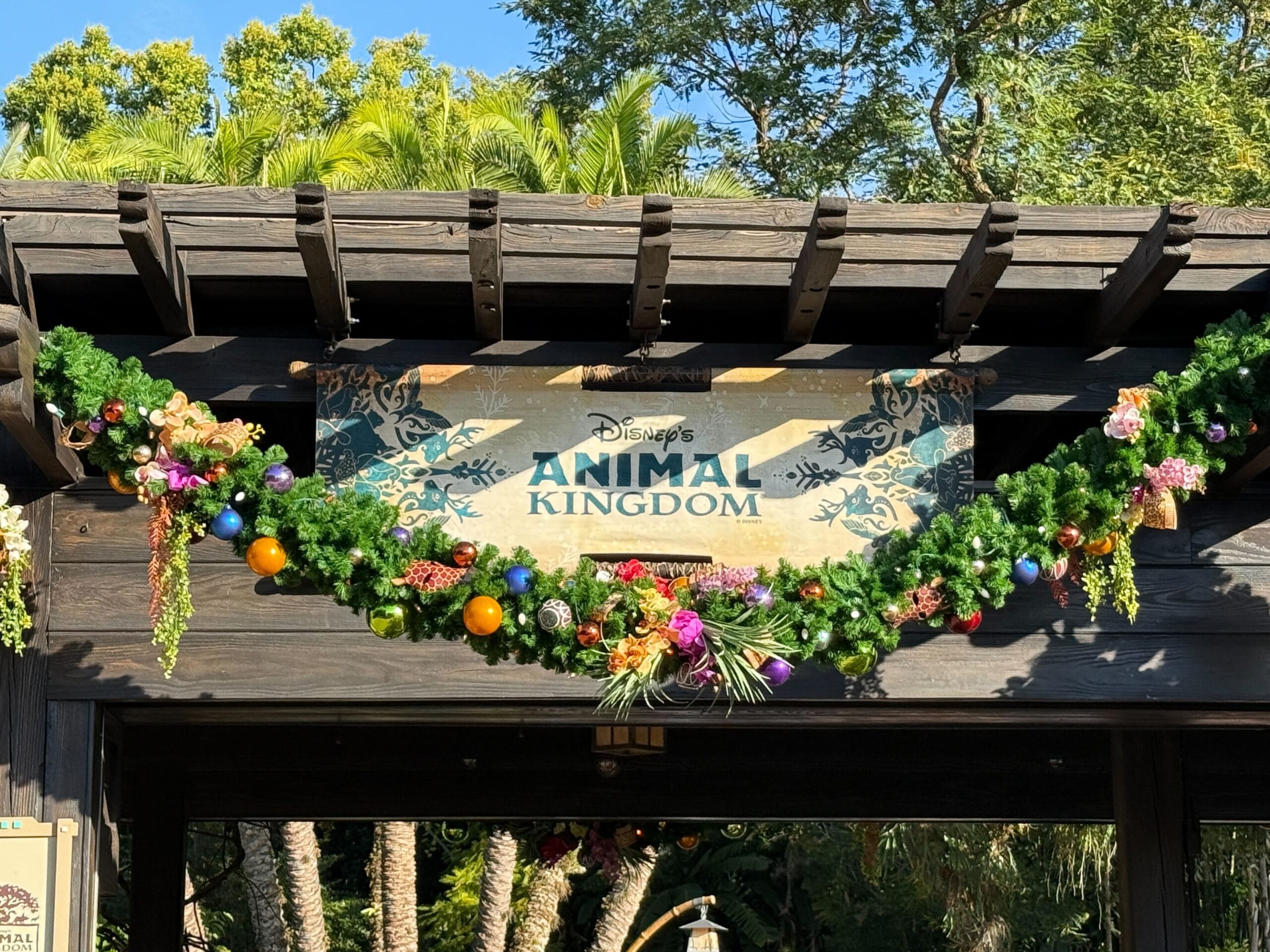 Disney’s Animal Kingdom is ready for the holiday season with garlands, wreaths, and more Christmas decorations.
