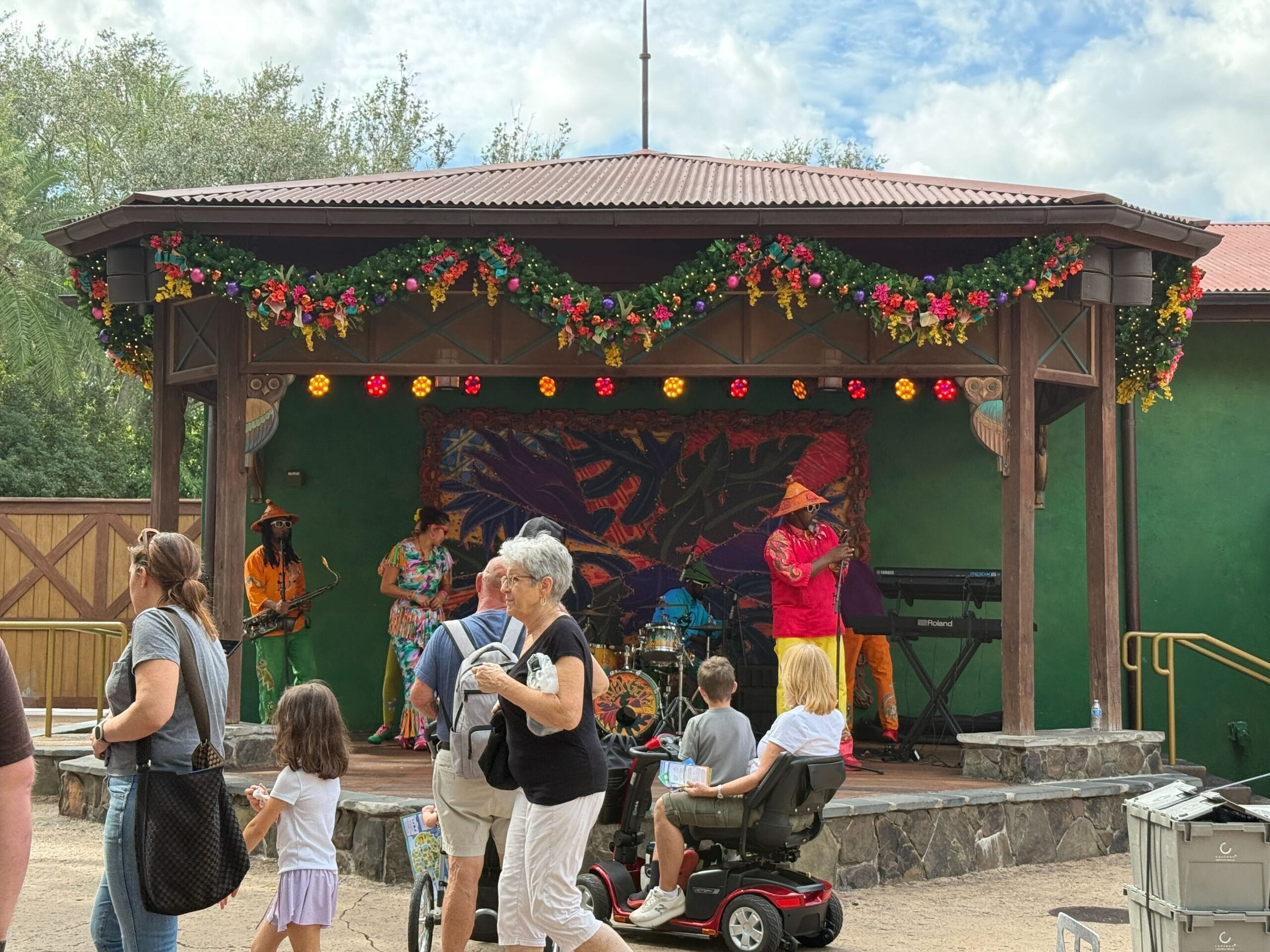 The Discovery Island stage now has garland trim around its roof, adding extra festive energy to the musical performances.