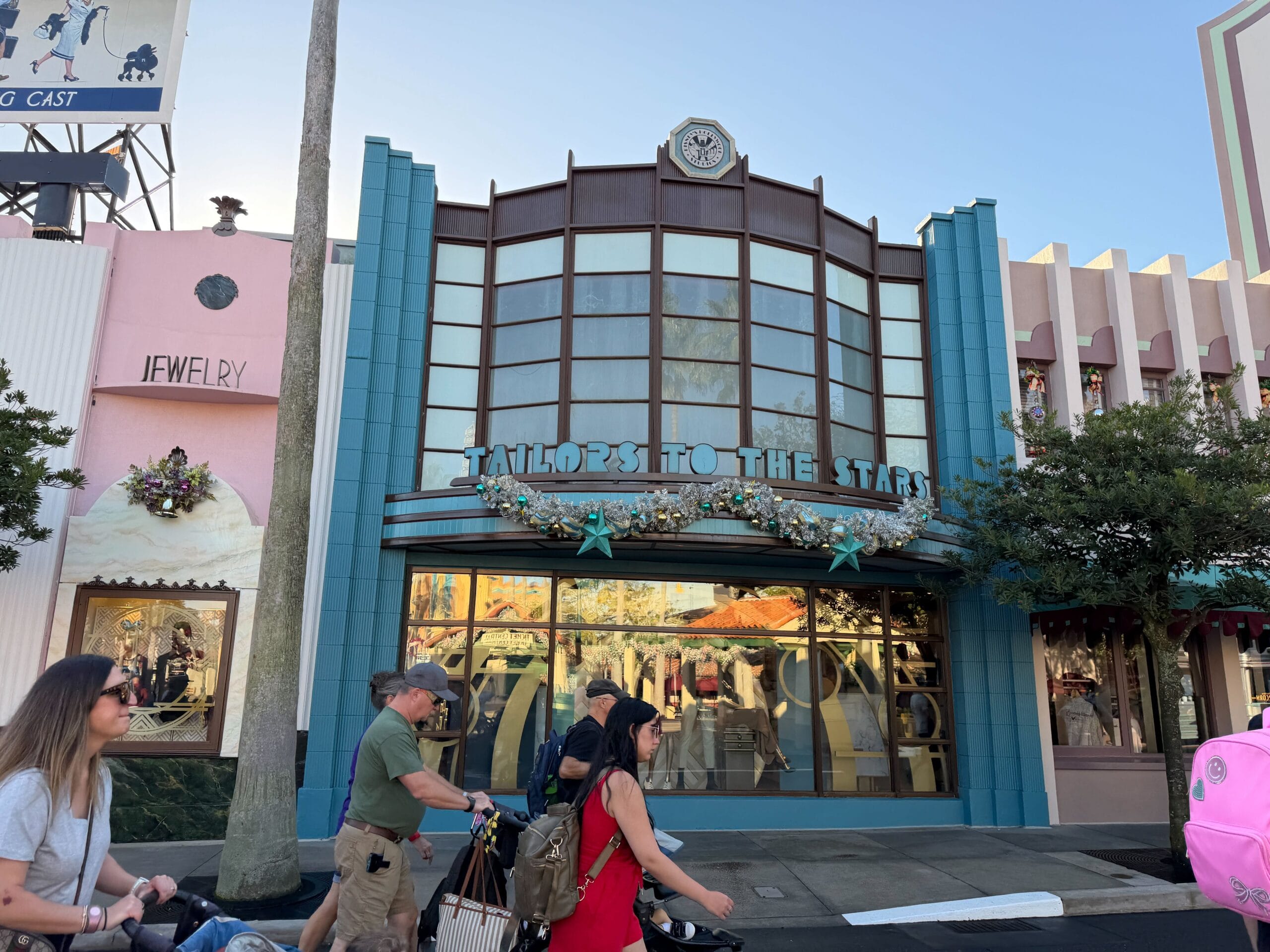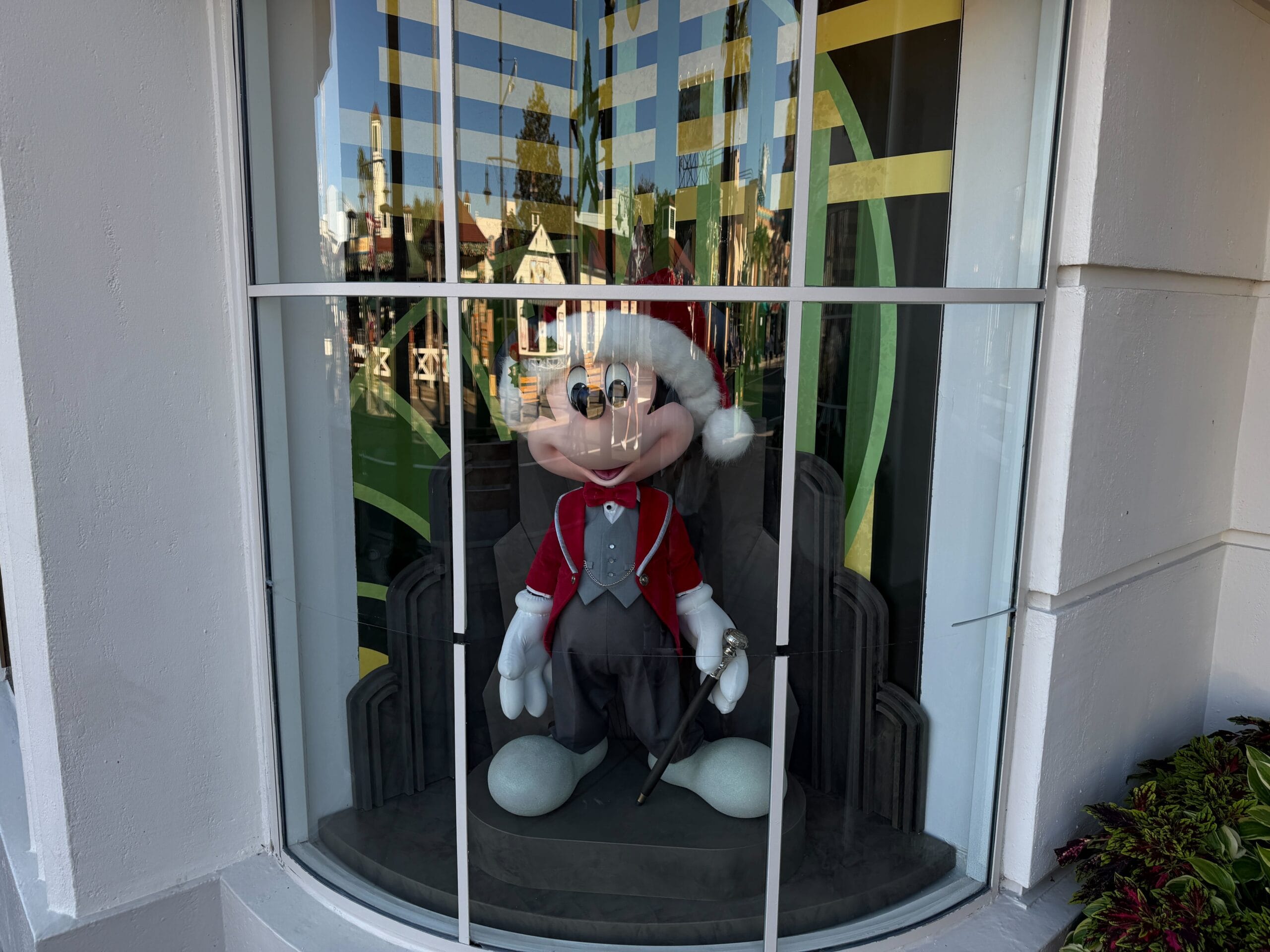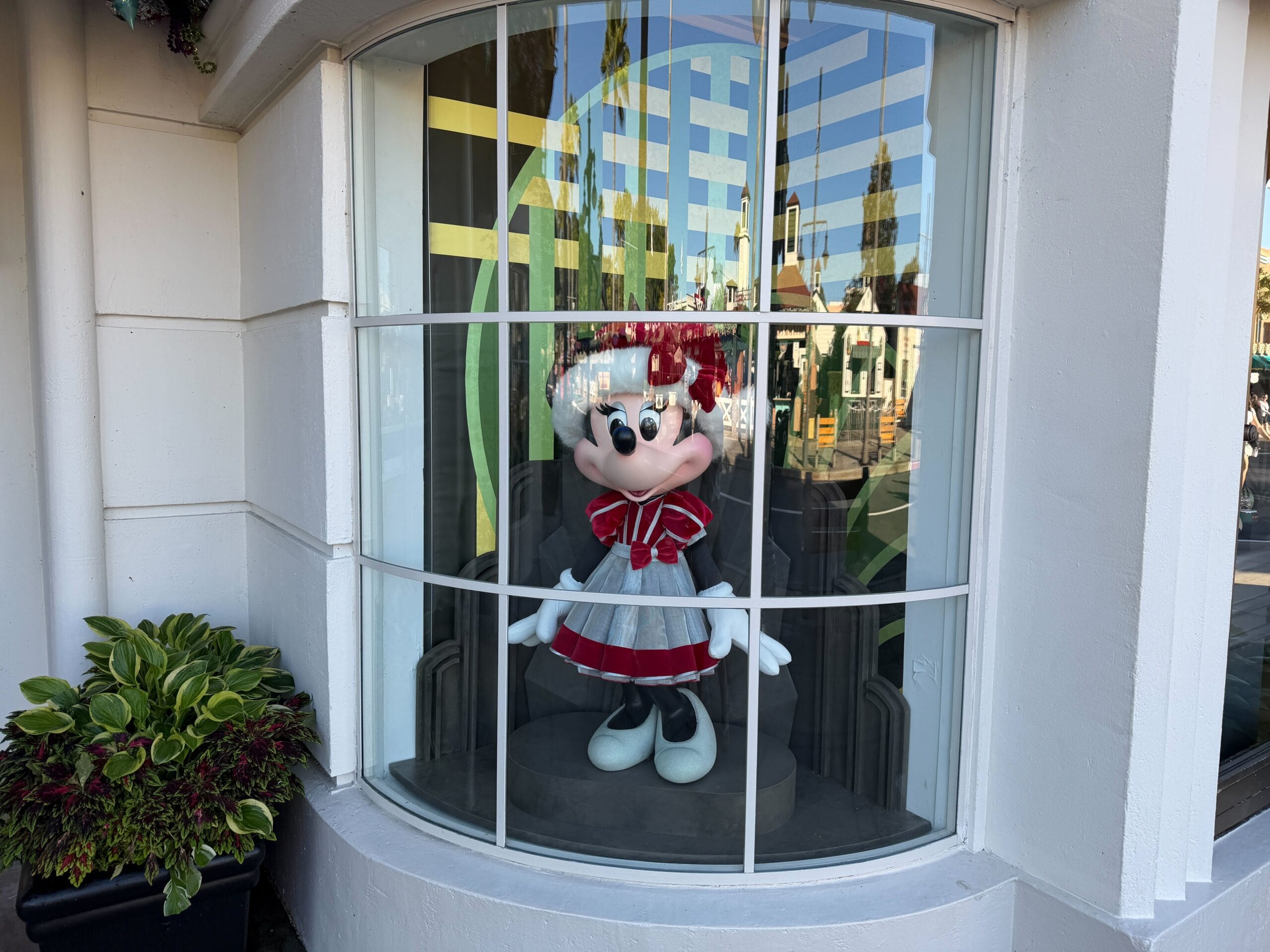 Each shop façade has its own unique decorations. Yet to arrive are the giant dancing Minnie Mouse ornaments in the Celebrity 5 & 10 window.