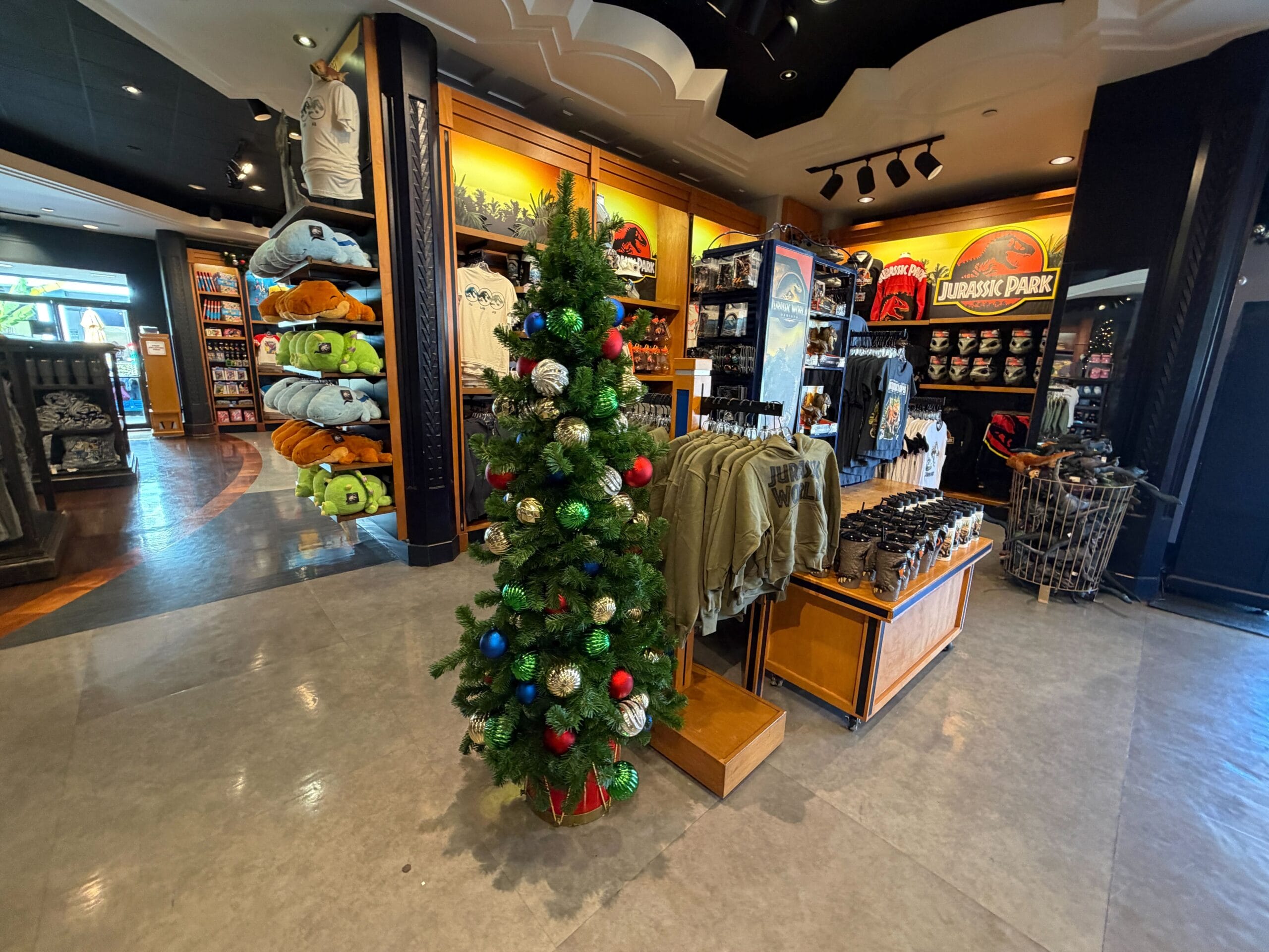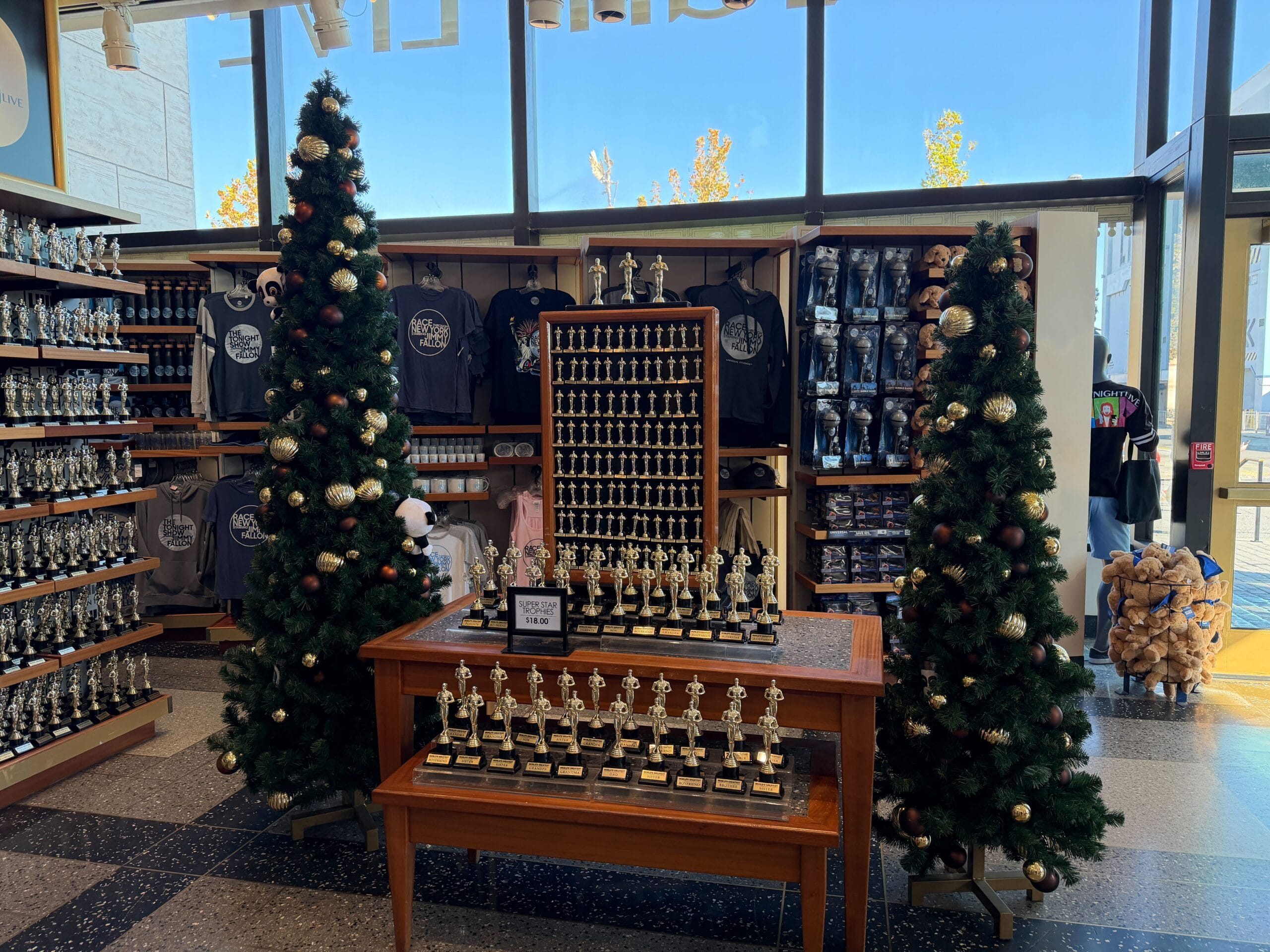 Decorations continue inside The Tonight Shop. There are a few Christmas trees on display.