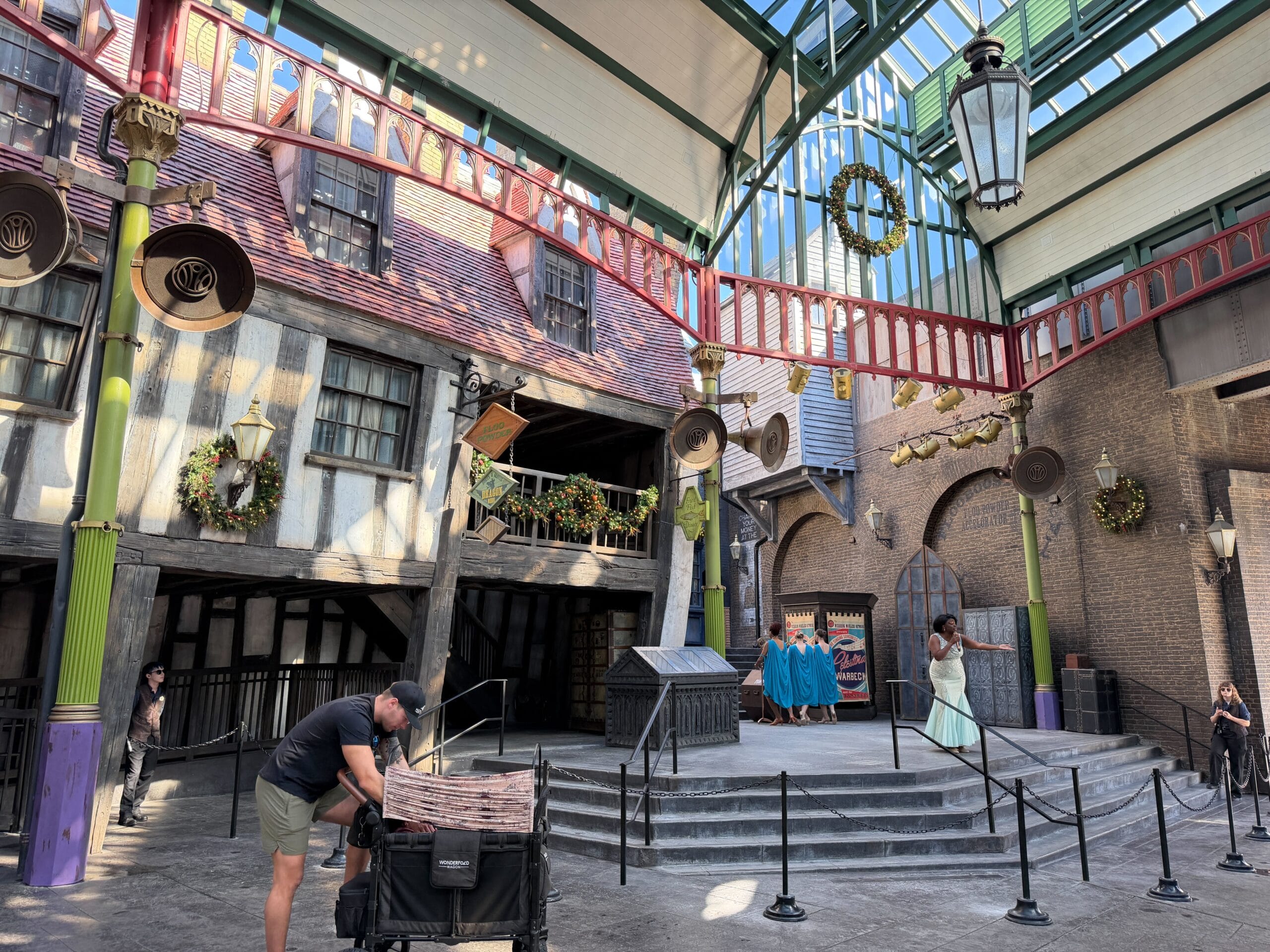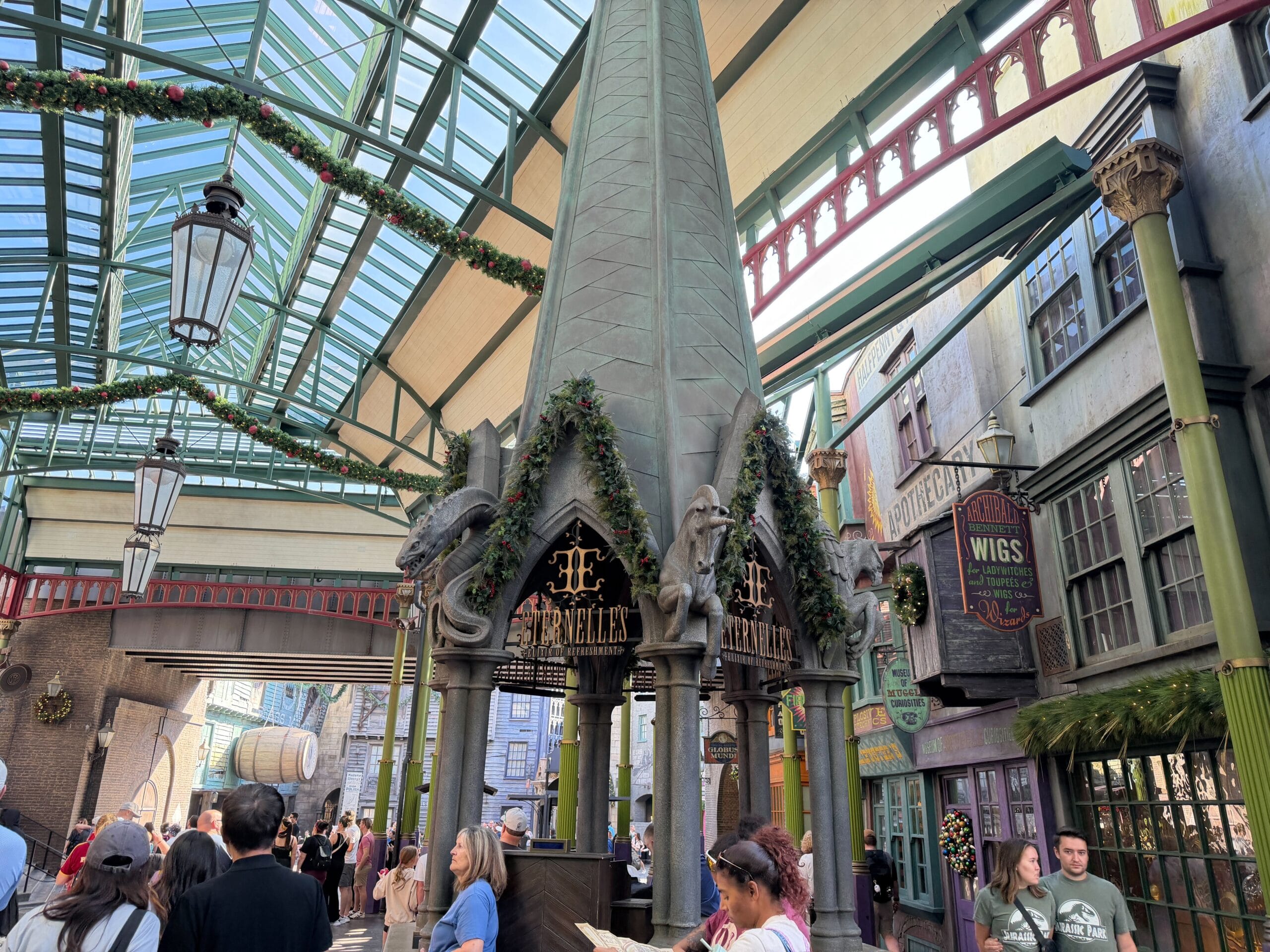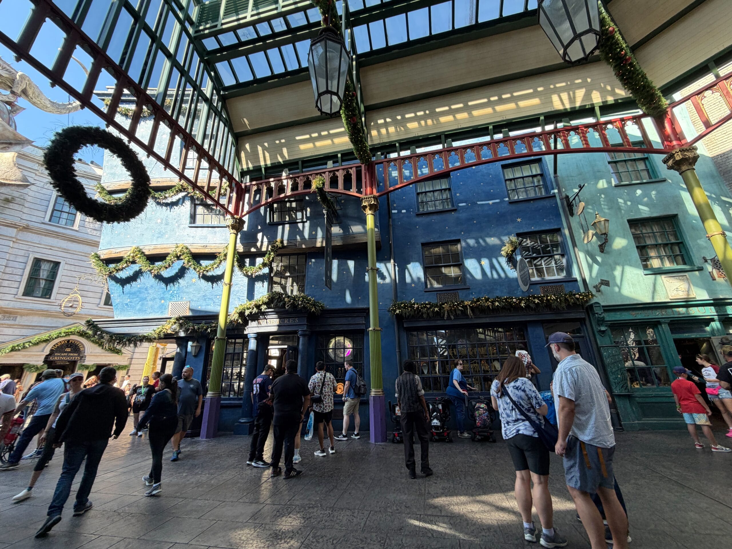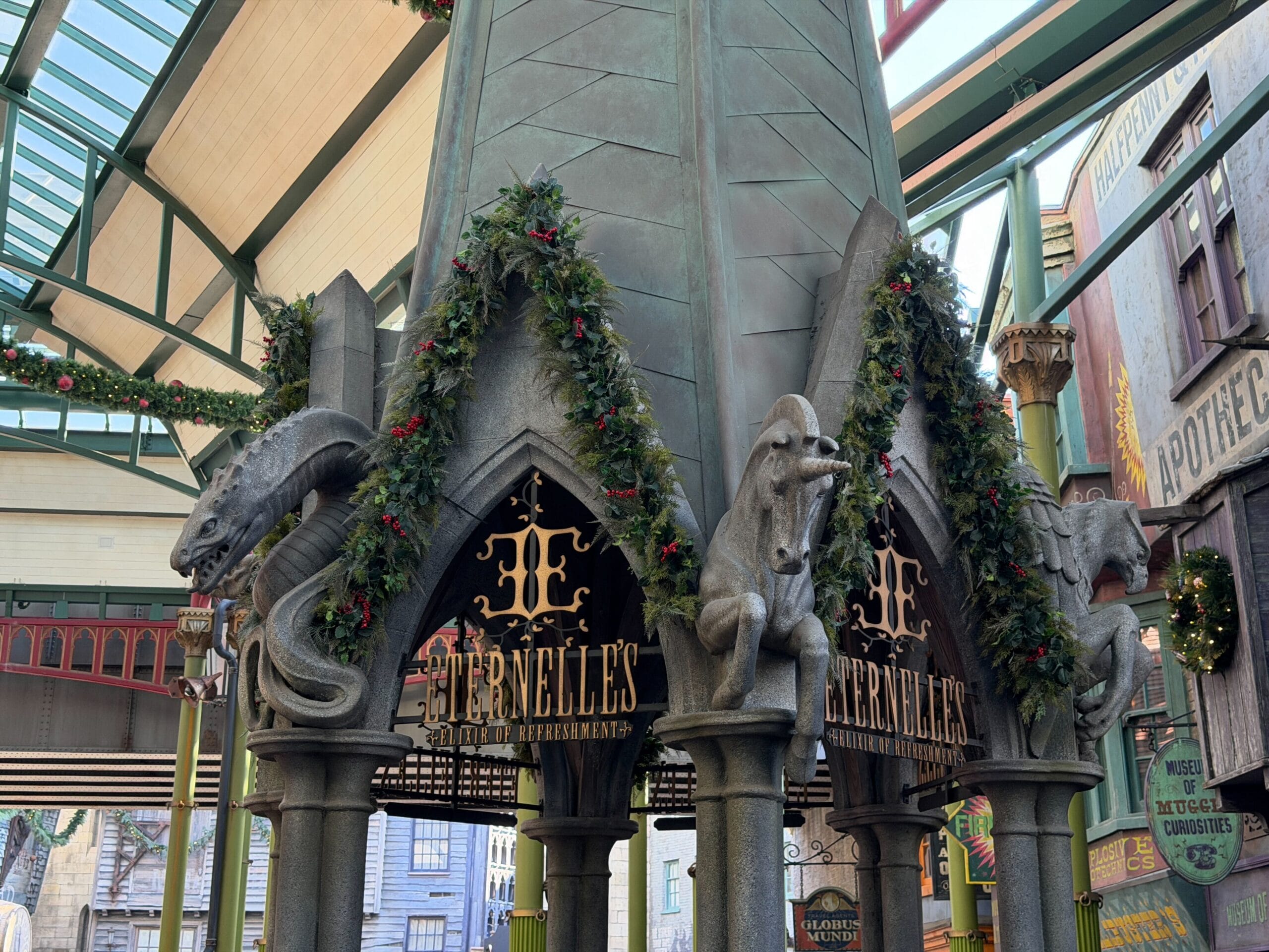 Guests visiting Diagon Alley will also find it’s decorated for the holidays.