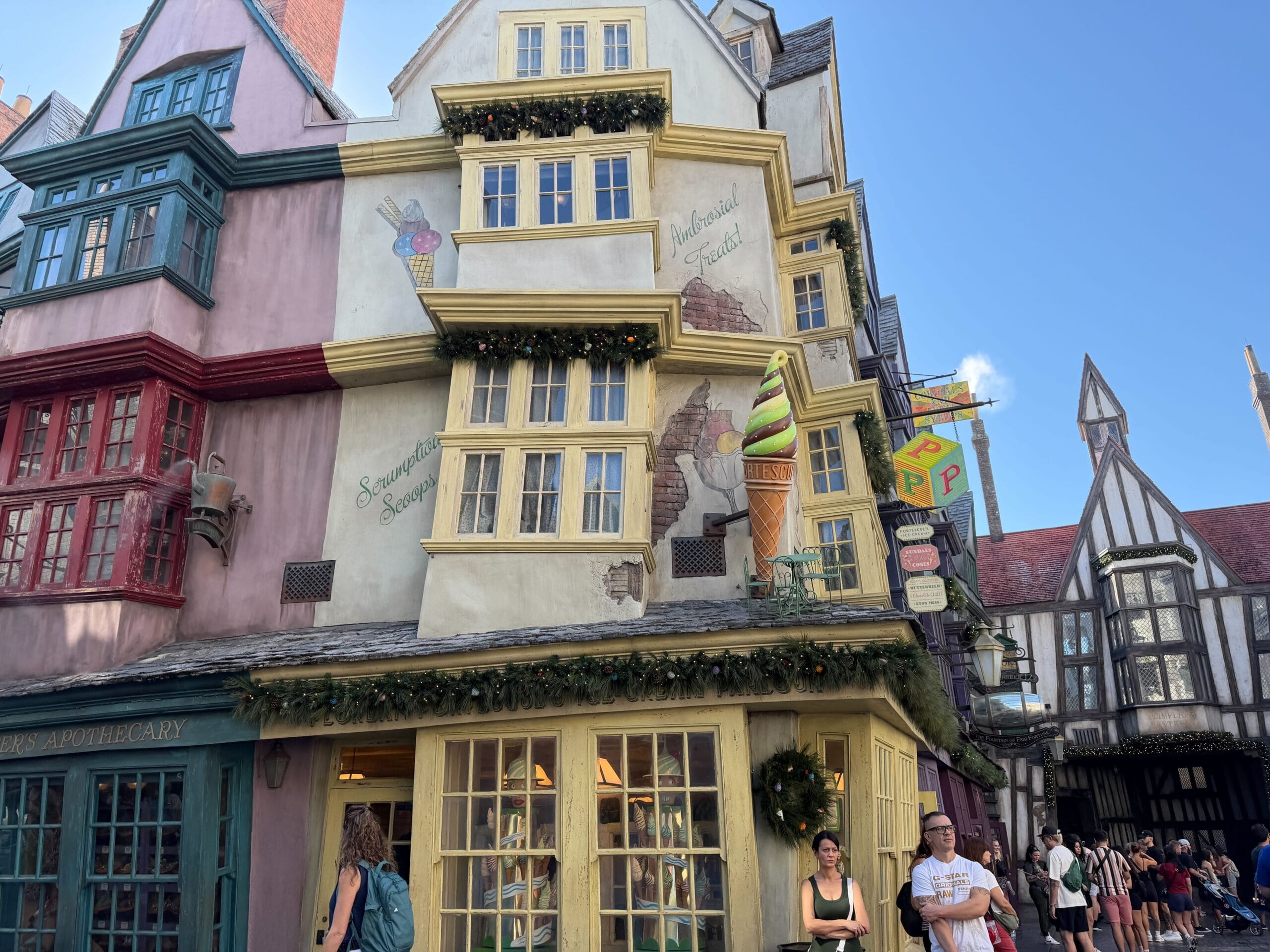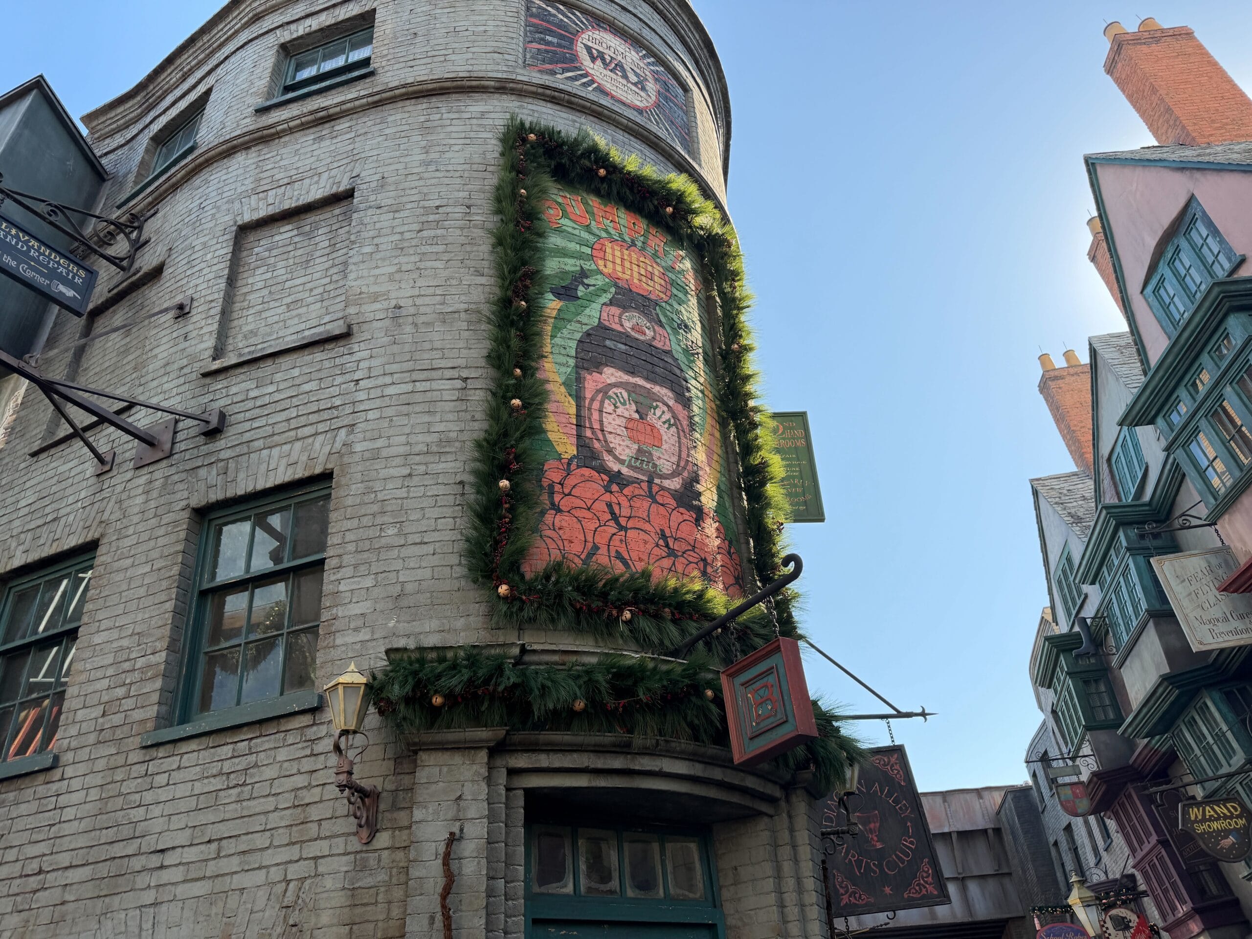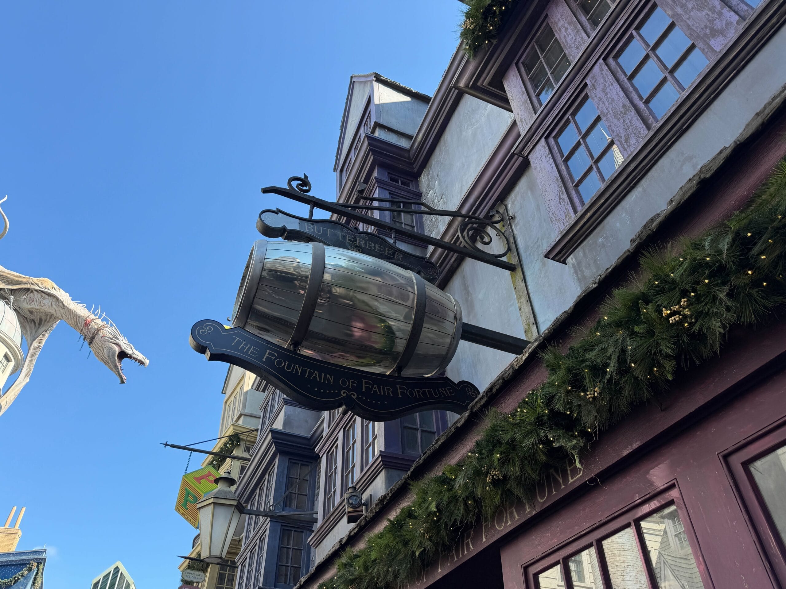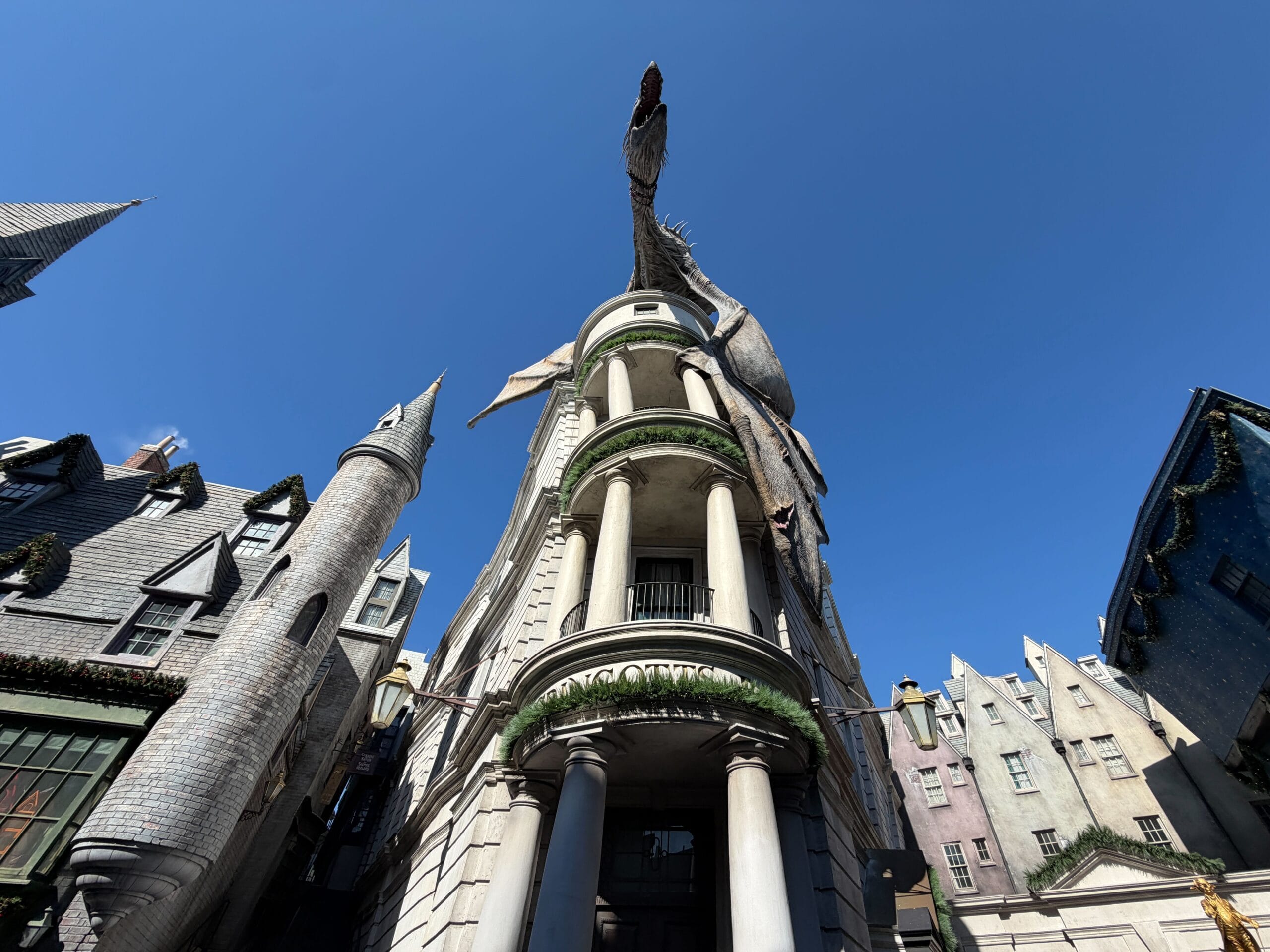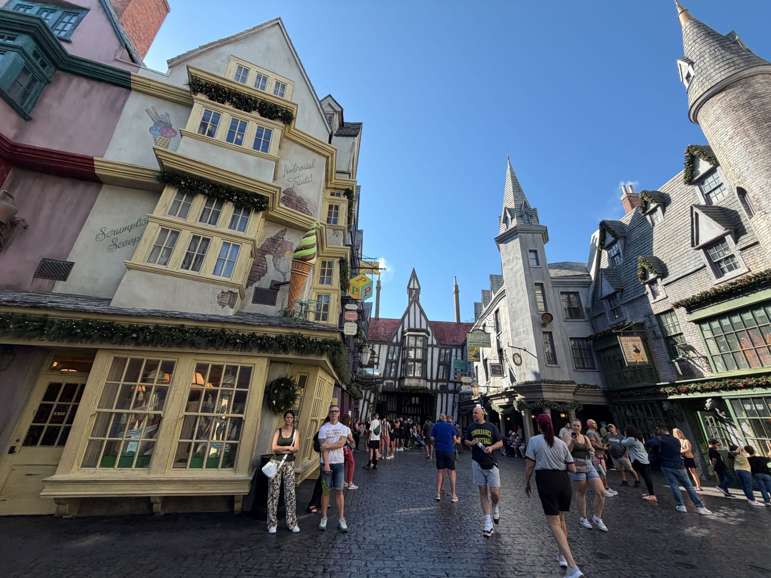 Guests visiting Diagon Alley will also find it’s decorated for the holidays.