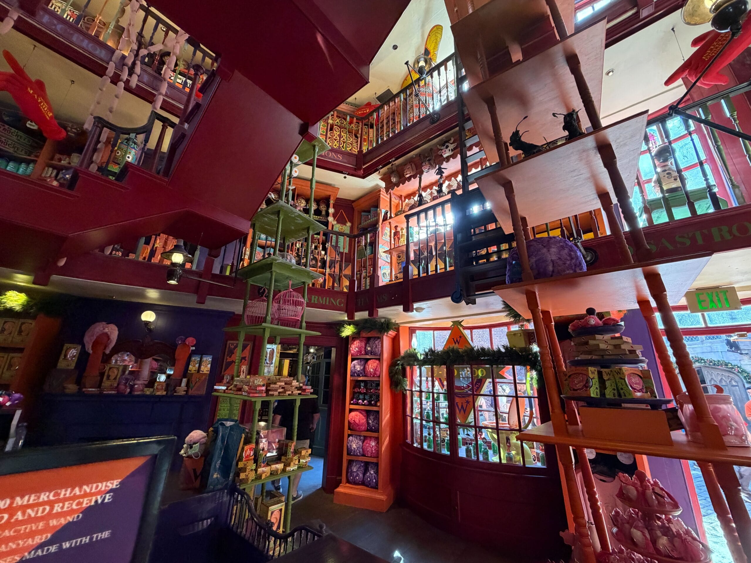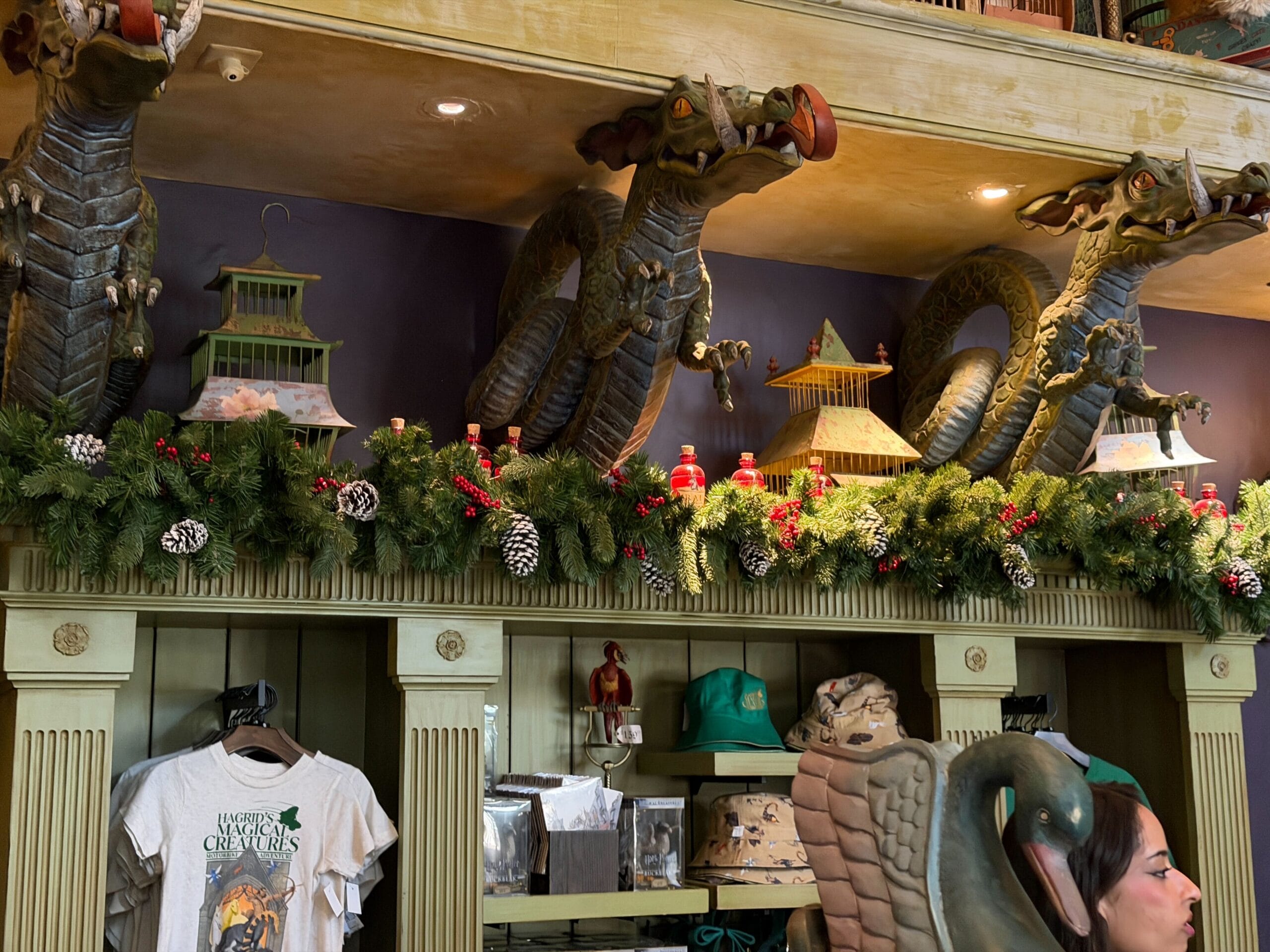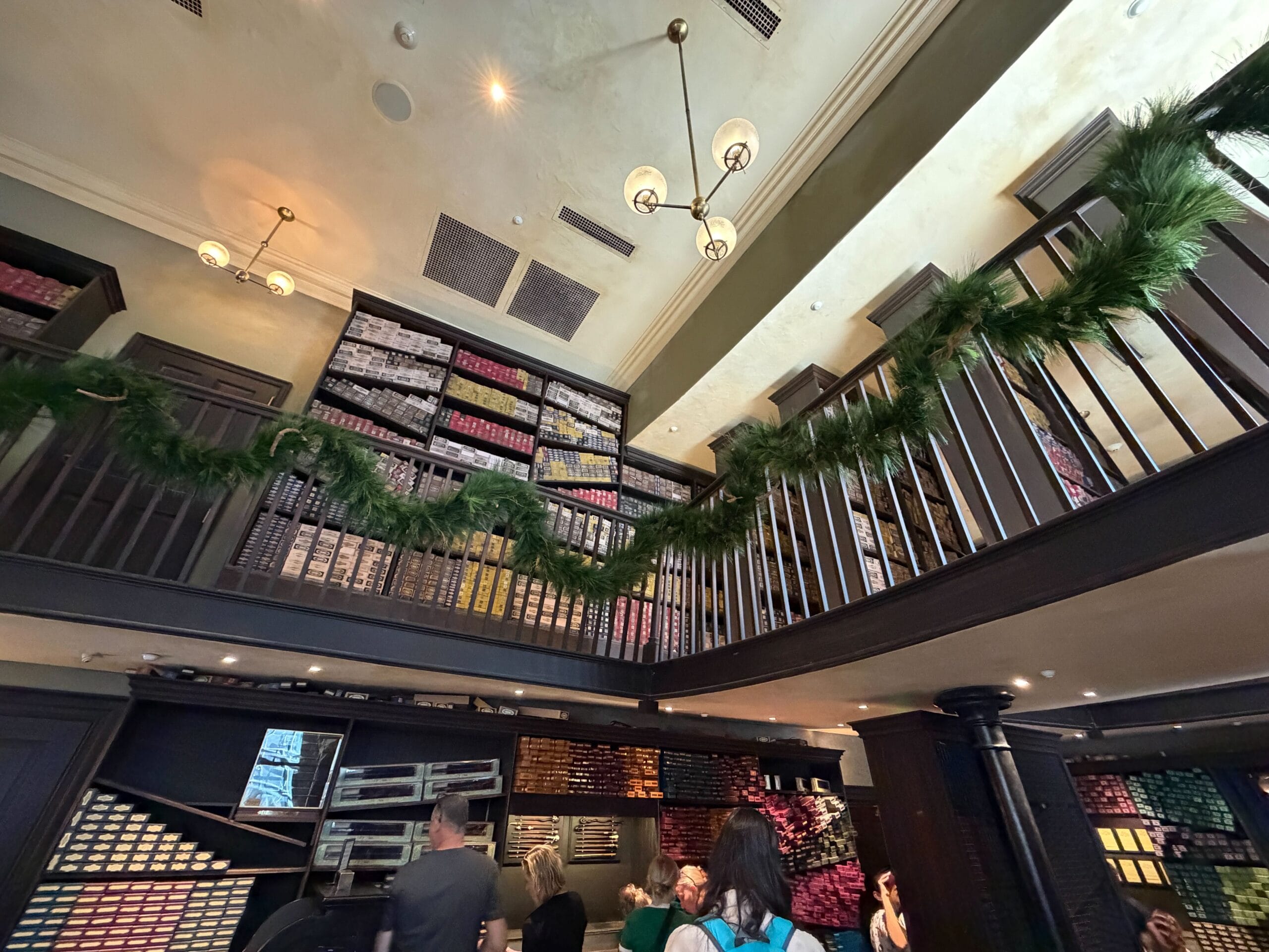 Inside, guests will see more green garland from the second story banister as they peruse the collection of wands.
