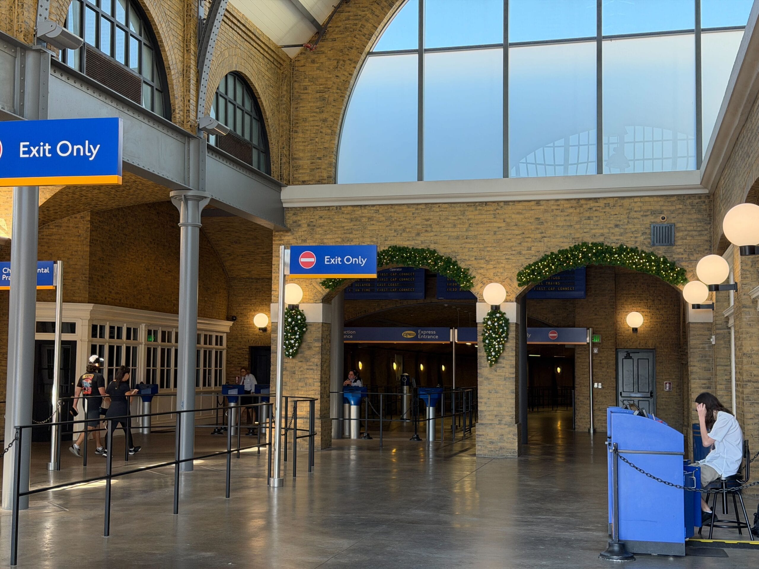King’s Cross Station has garland and wreaths with classic soft lights.