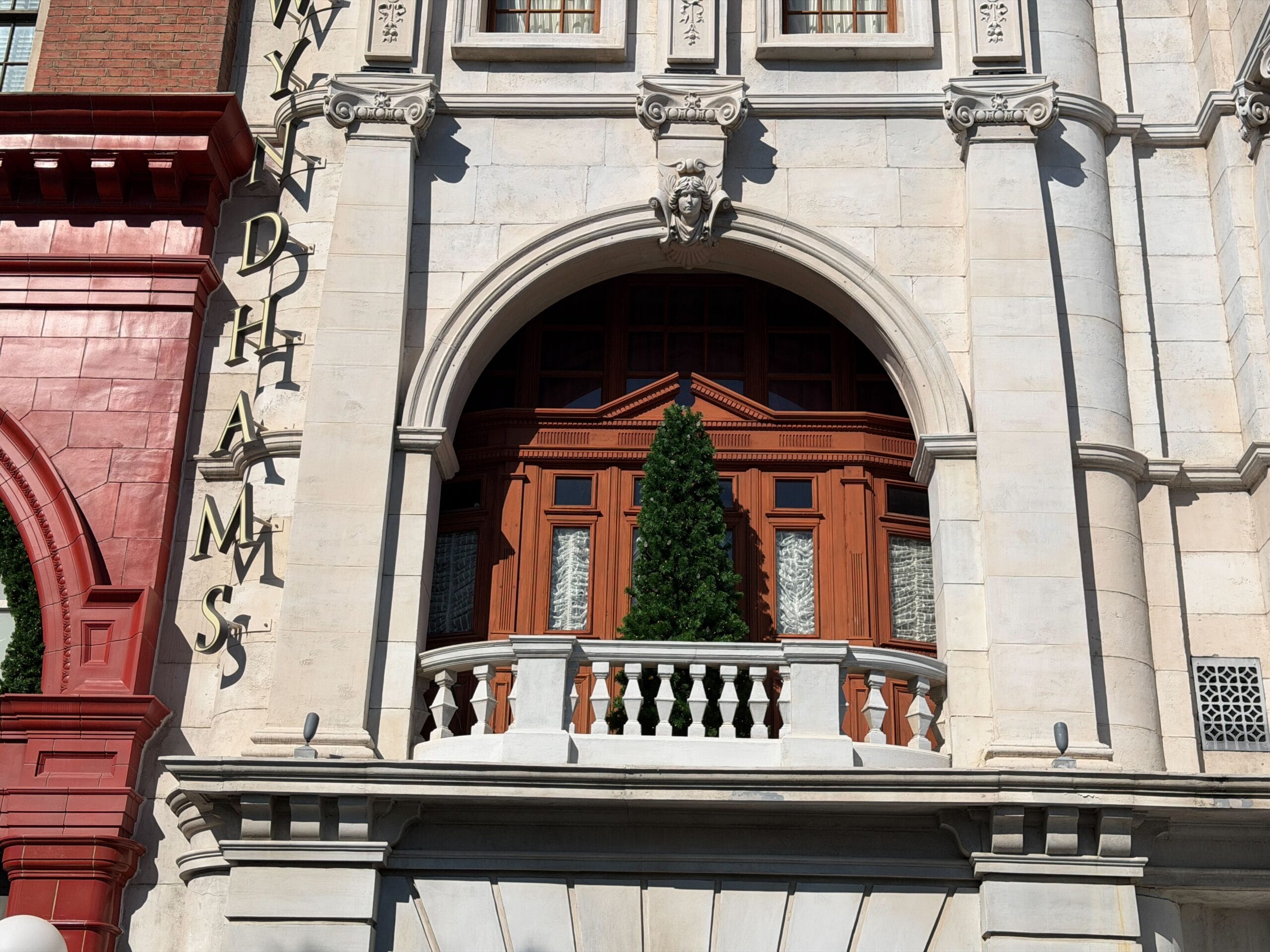 Branches run through the garland and wreath across the façade to Ollivanders.