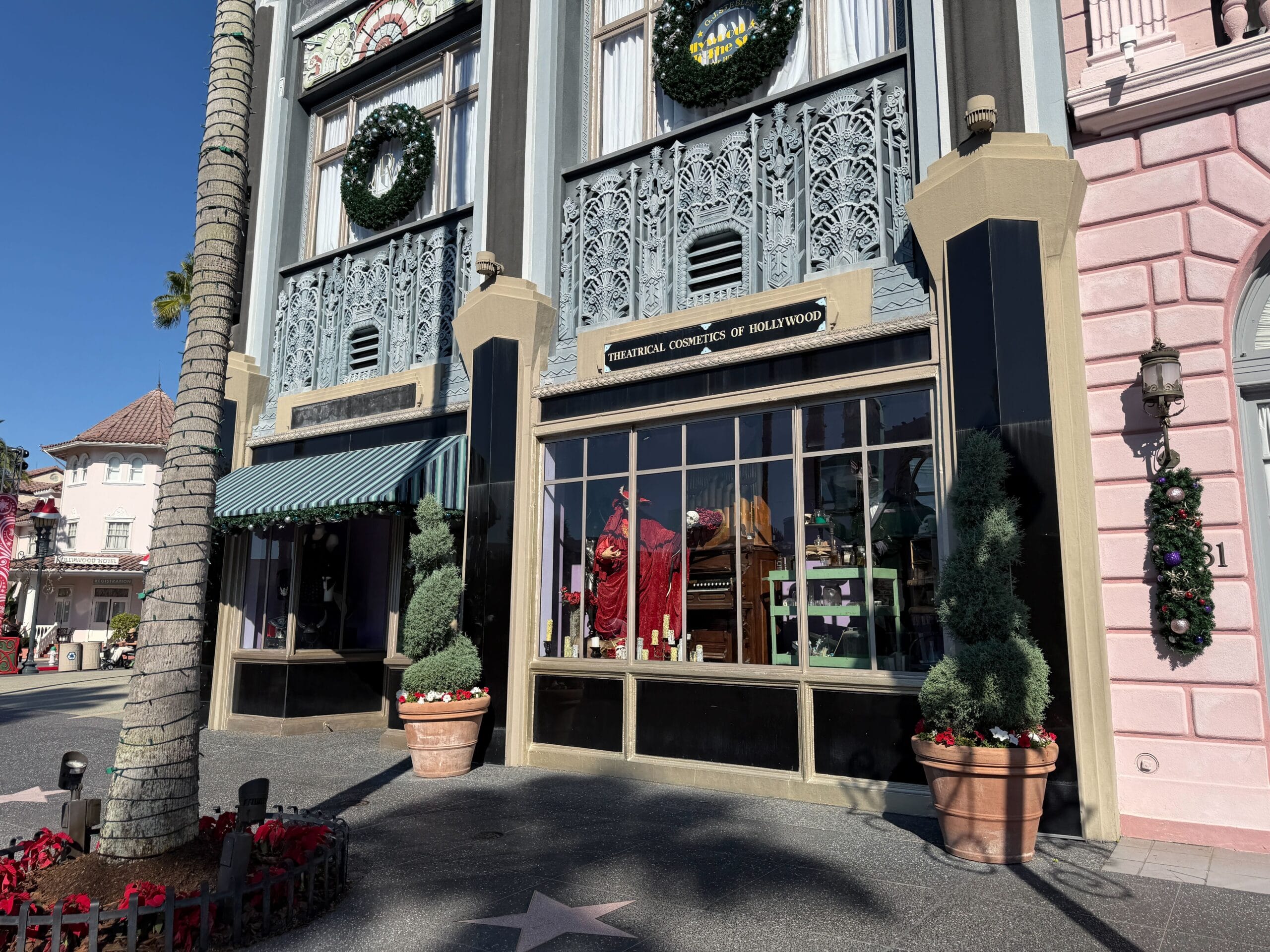 Similar garland runs down the columns of Max Factor Make-Up Studio.