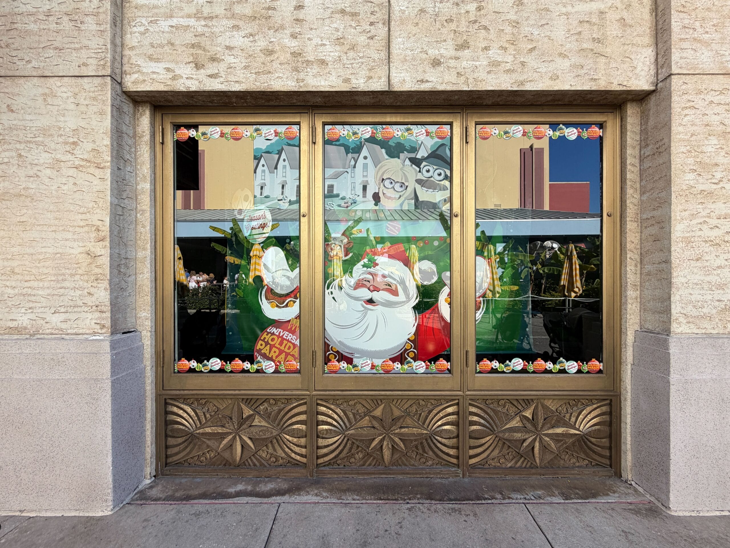 Another window features the Universal Holiday Parade. Santa is front and center with his hands outstretched.
